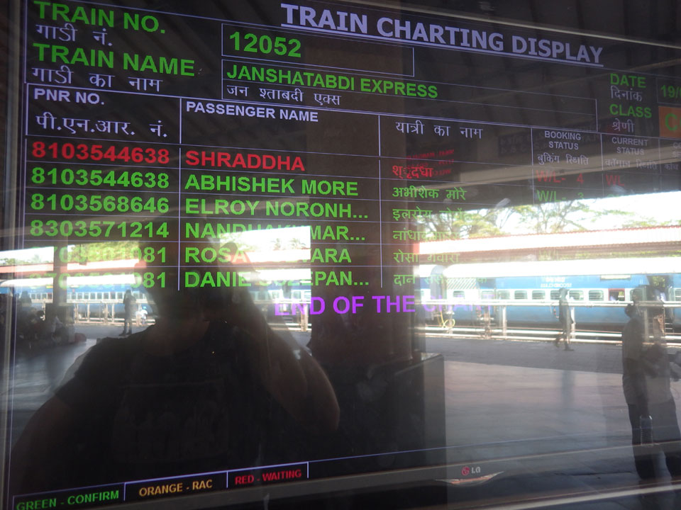 Mit viel Zeit waren wir auf dem Bahnhof und warteten herum. AC Sitze dann auf dem Weg nach Mumbai Dadar. Auf den weiteren Stationen in Goa füllte sich der Wagon stetig. Die Fahrt in den Norden dauerte am Ende aber heftige 9 Stunden.