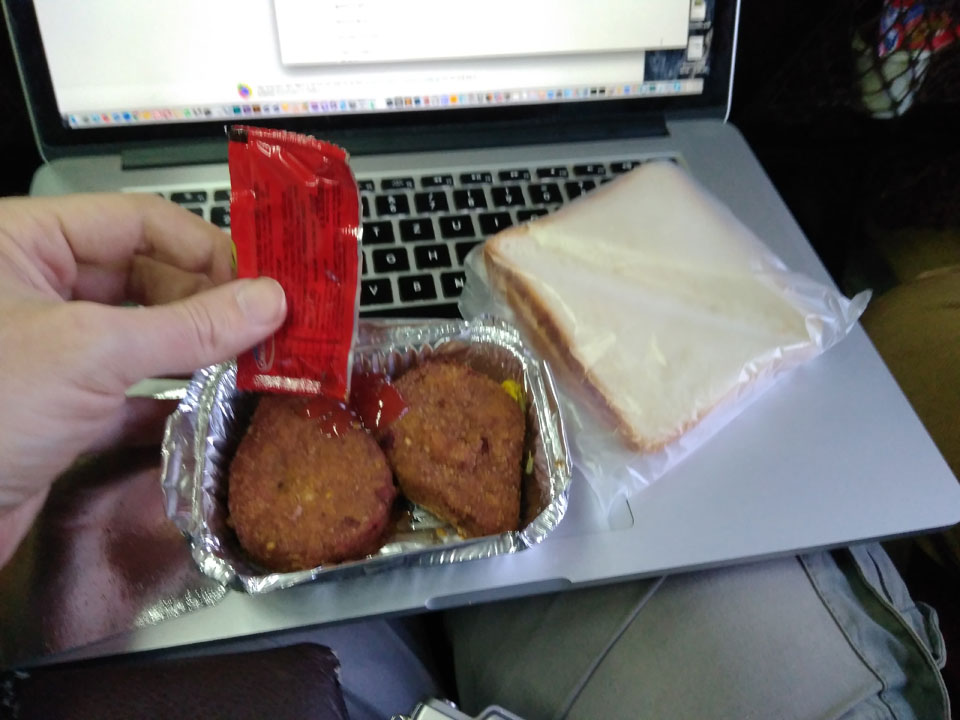 Zum Glück gab’s etwas Essen – geliefert von der indischen Eisenbahn. Ich war recht guter Dinge mit Internet und dem vergleichsweise schnellen Zug.