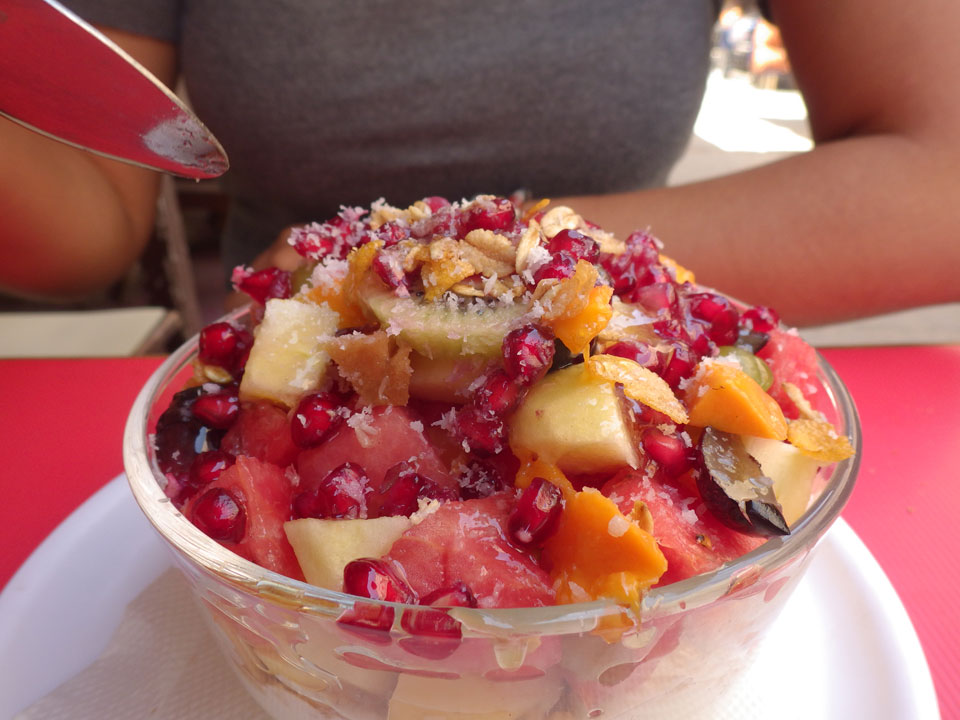 Wider Erwarten genügten die zwei Nächte In Pushkar. Wir konnten das Gepäck im Zimmer lassen und gingen im Funky Monkey Frühstücken. Alles gut, besonders der Obstsalat da.