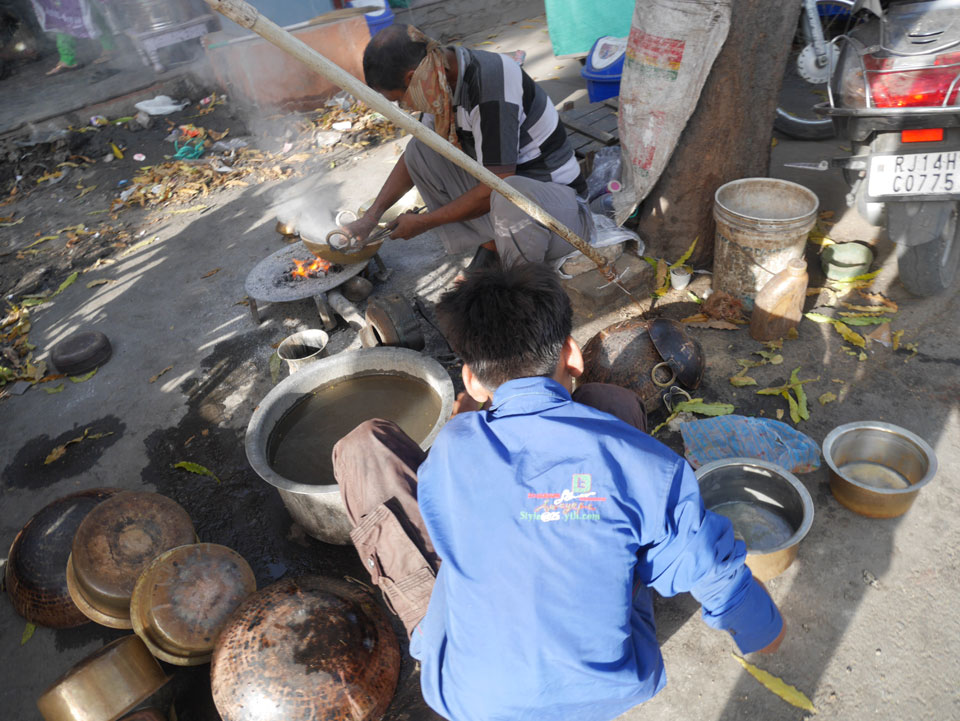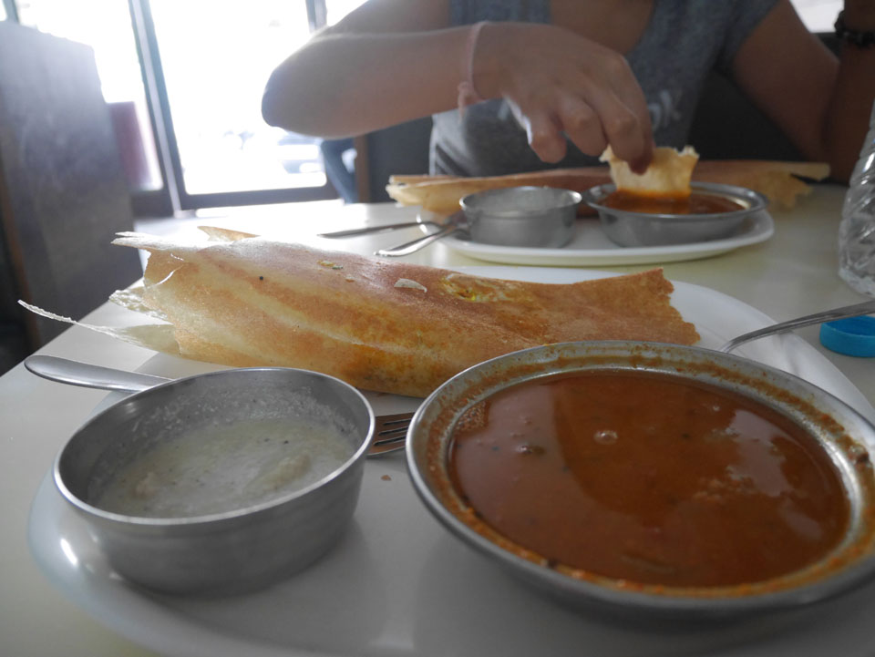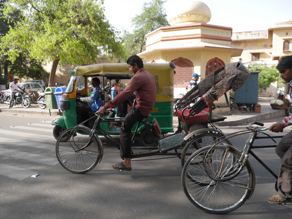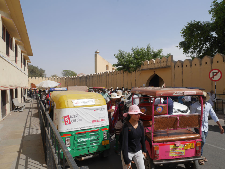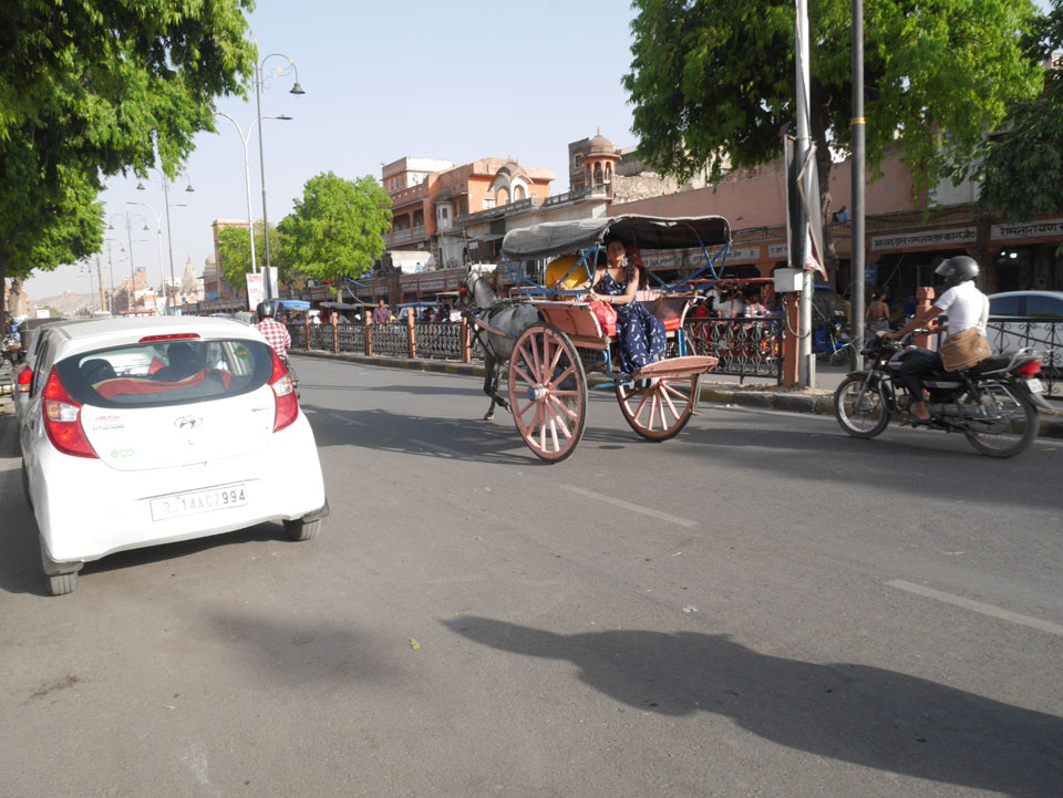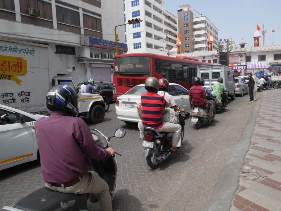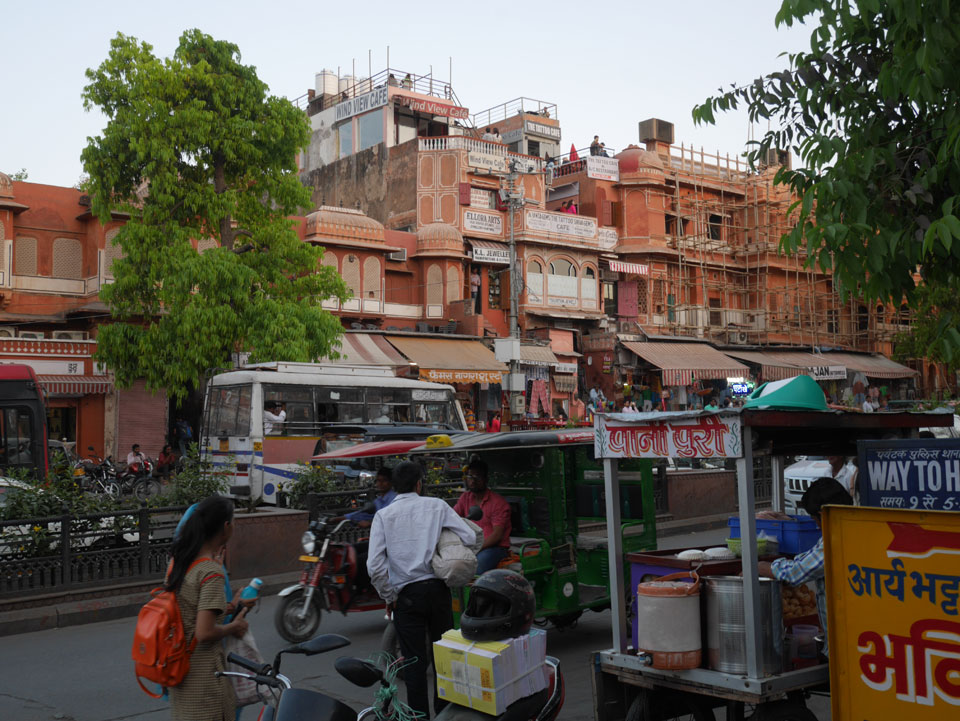 Im irren Verkehr Jaipurs kamen wir in die Nähe meines alten Moustache Hostels. Ein langer Weg durch Abgase und Hupen – Luft- und Lärmverschmutzung. Mein altes Dosa-Restaurant fan dich nicht. War das abgerissen? Ein anders war aber auch OK, hatte zwar auch nur Säfte aus der Dose doch die Dosas waren OK. Es gab insgesamt 3 Stück für uns, dann waren wir satt und bereit für das Touristenprogramm.