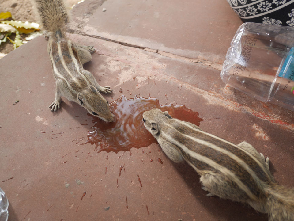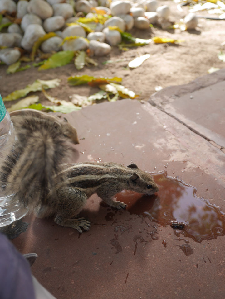 Der City Palace war schnell abgehakt. Es hat sich wenig getan, bekannter Ort mit wenig WOW-Effekten. Ich war nur fertig mit einer Erkältung, die ich mir durch die AC zuzog. Dann Abend schafften wir noch das Jantar Mantar, die astrologischen Bauten, die ich mir vor einem Jahr wegen 300 Eintritt sparte. Jetzt konnte mal kostenlos rein. Lustig waren die Eichhörnchen, die zutraulich von meinem Wasser tranken.