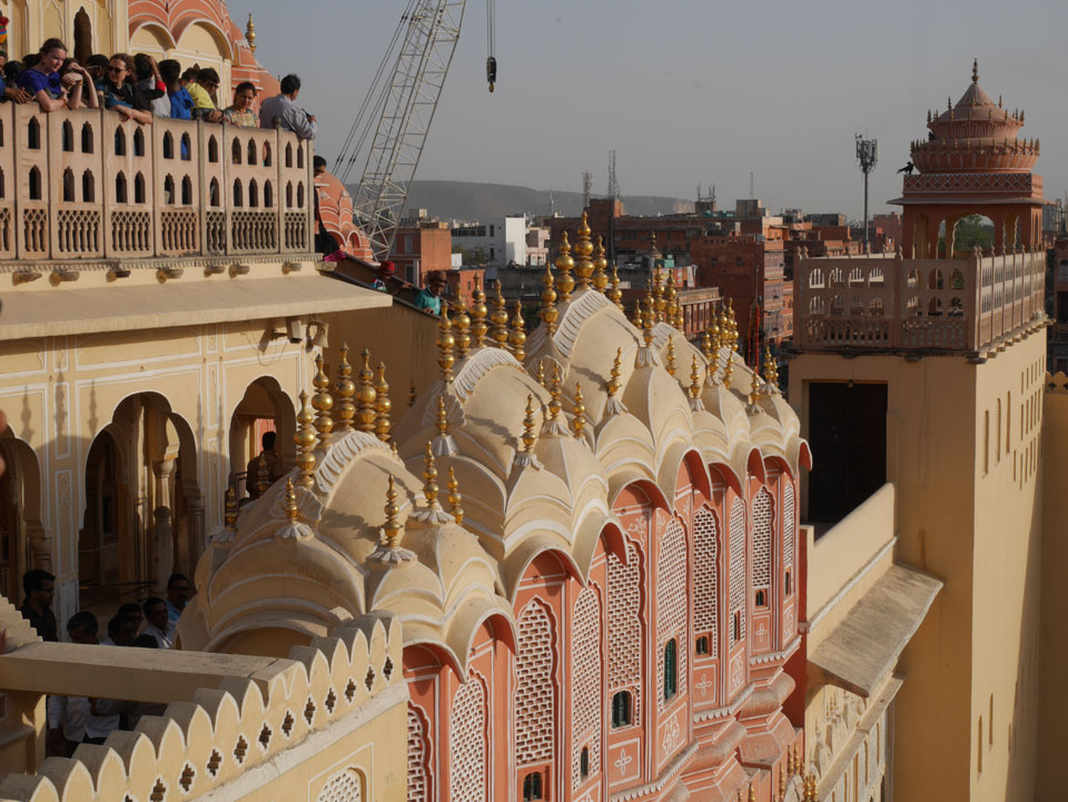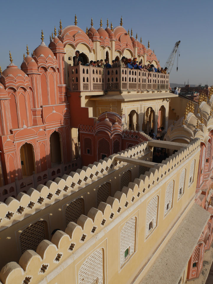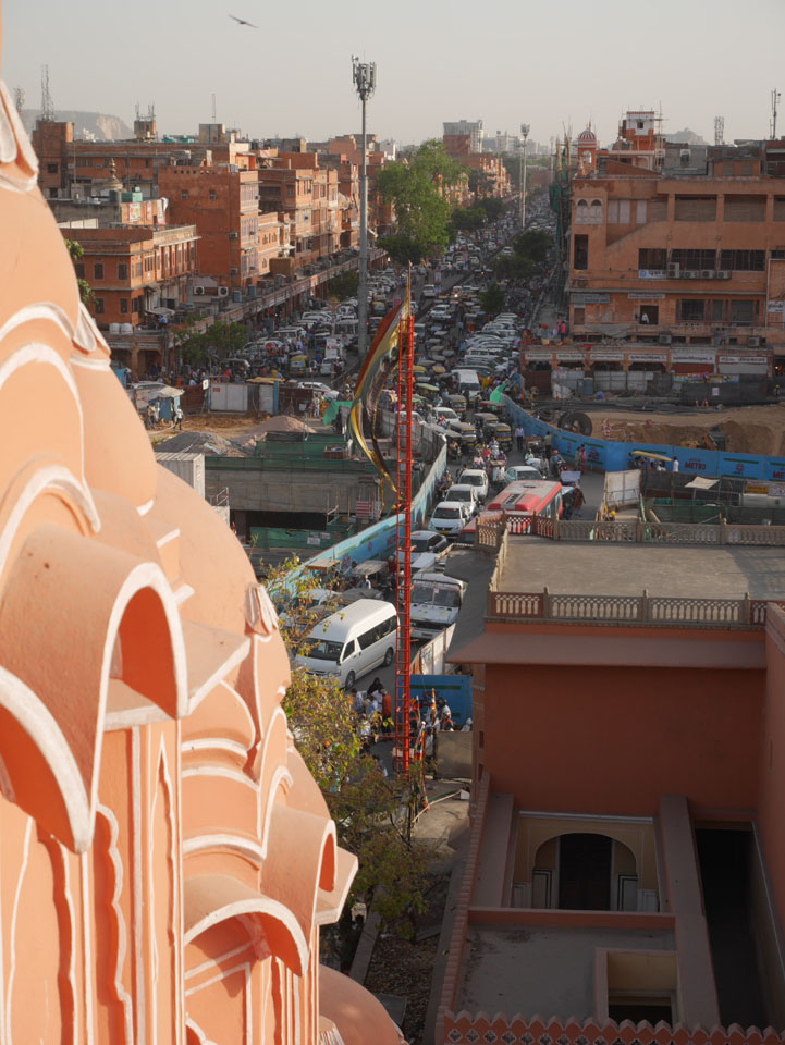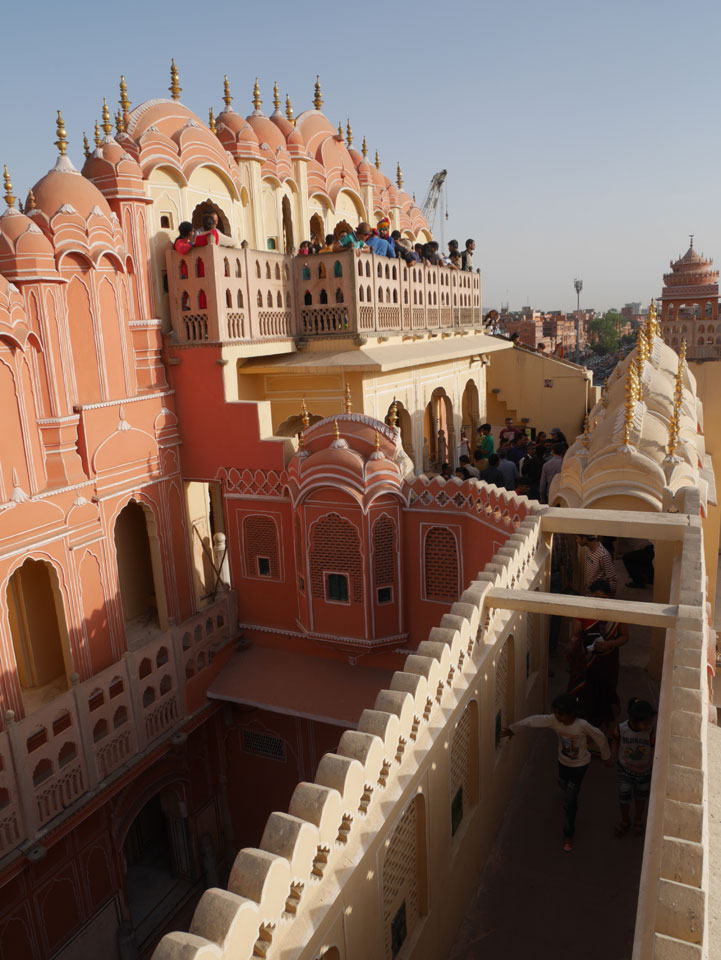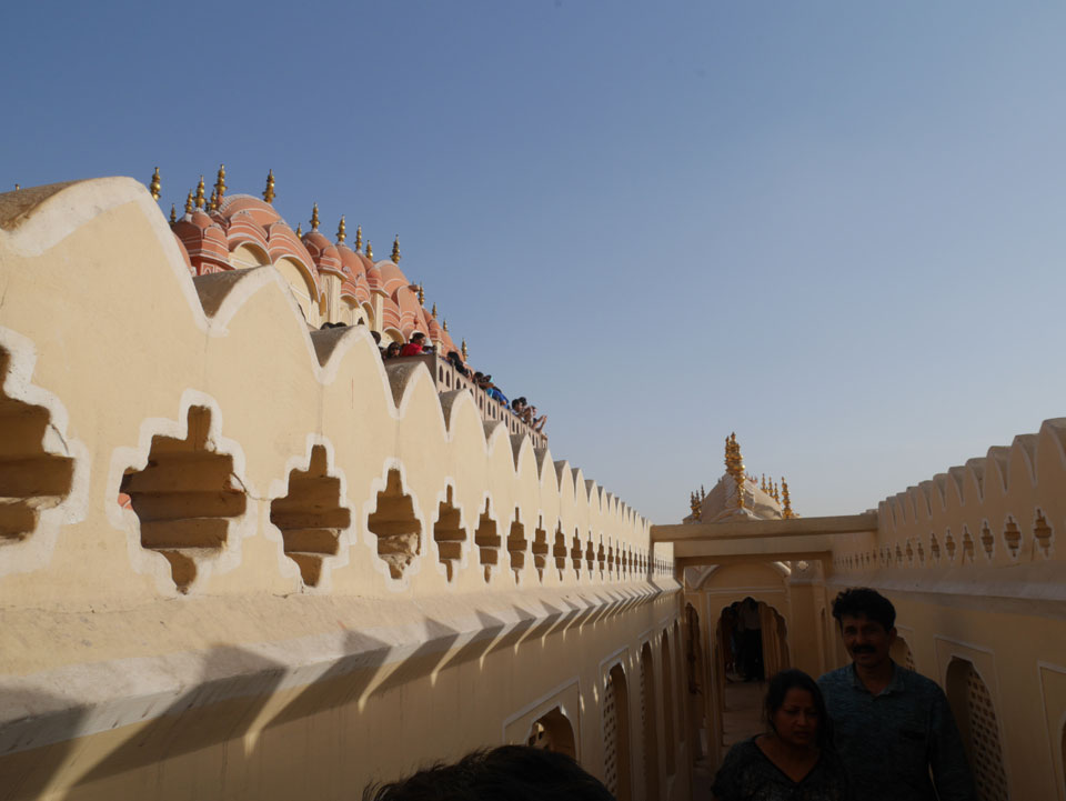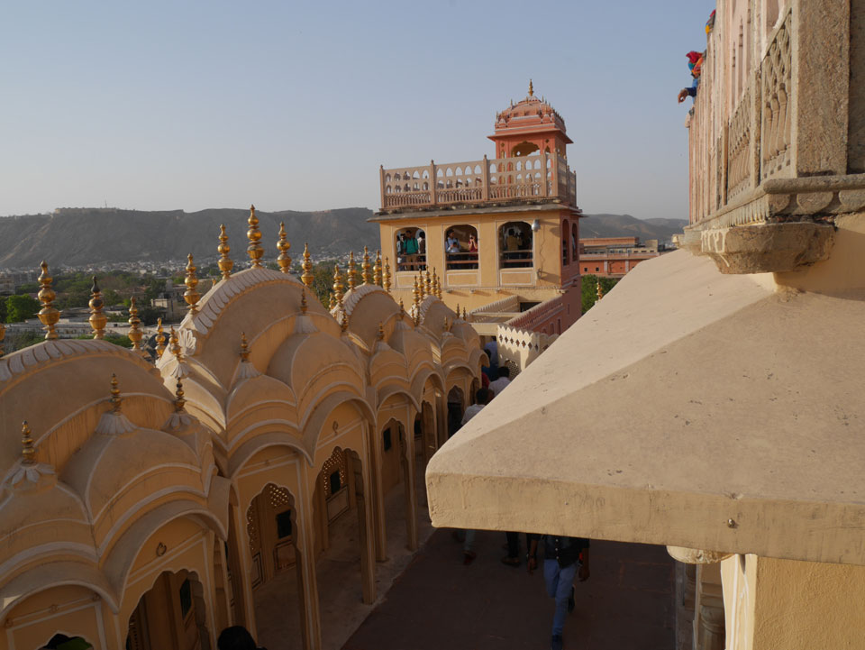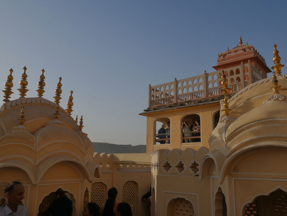 Das Hawa Mahal – der Palast der Winde – ging auch noch knapp vor Sonnenuntergang. Damit hatten wir die Attraktionen der Pink City geschafft und können morgen in den Norden. Fertig war ich heute schon. Die ganzen Sachen zwei Mal zu sehen, hätte ich mir auch gern gespart aber OK. Irgendwie ist alles doch bissel anders, weil unterschiedliche Bereiche renoviert werden.
