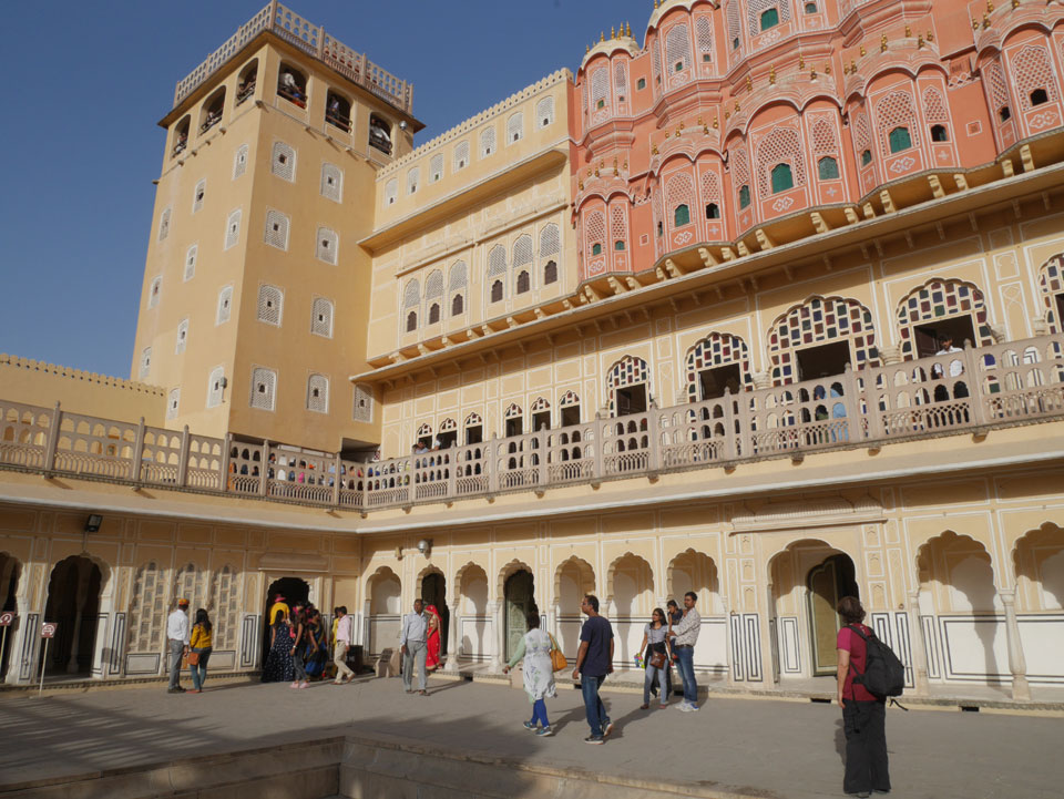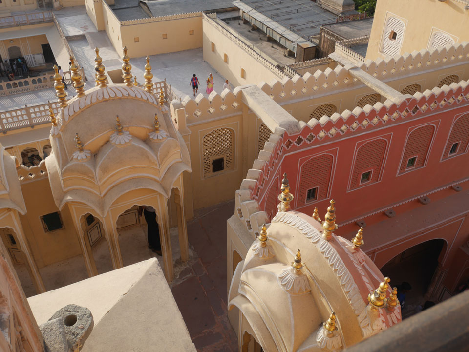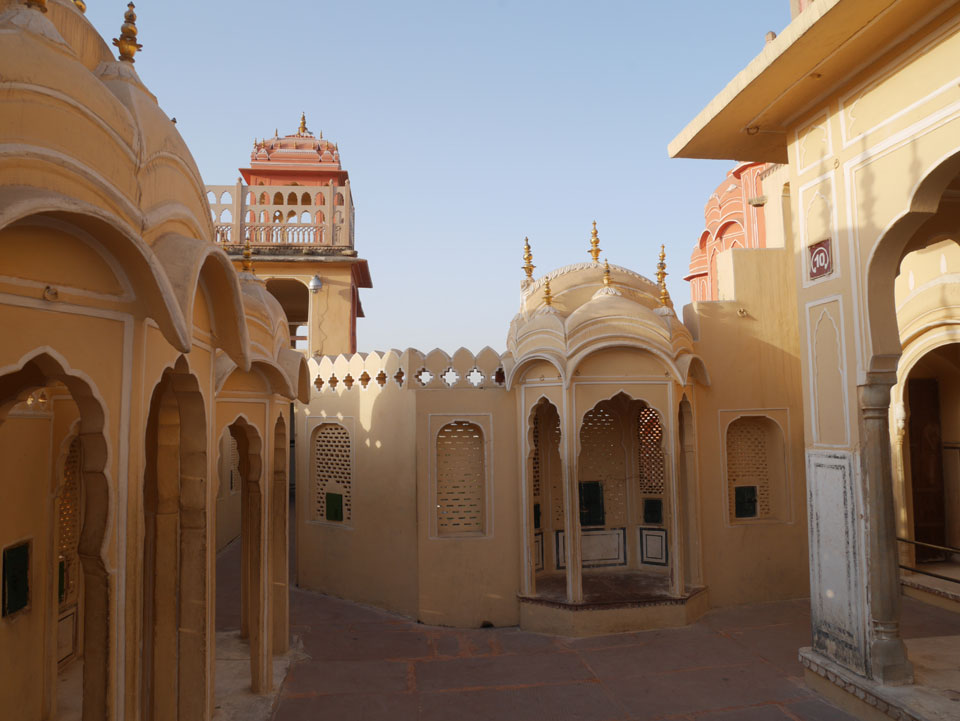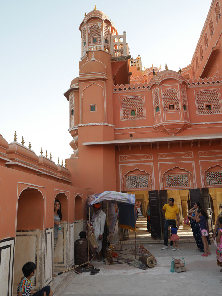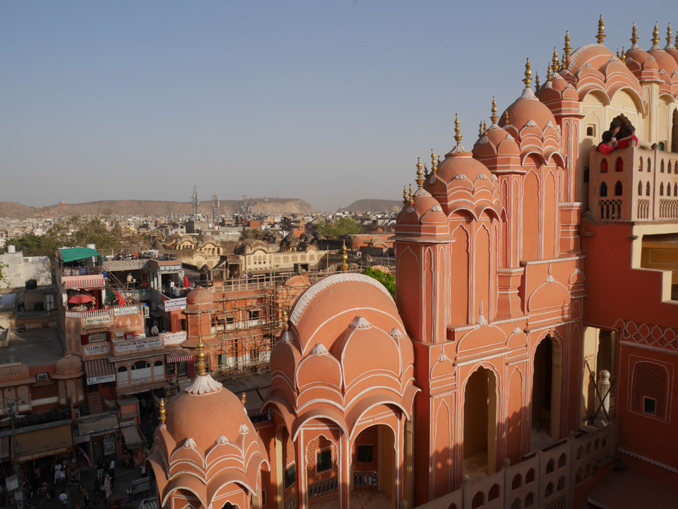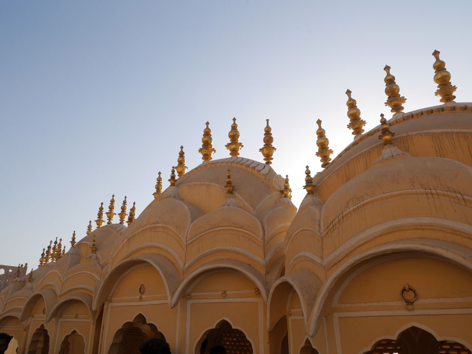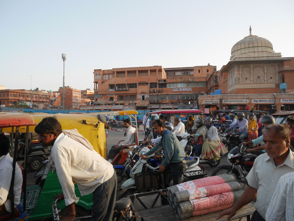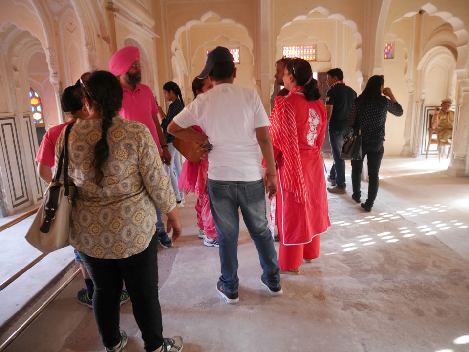 Das Hawa Mahal – der Palast der Winde – ging auch noch knapp vor Sonnenuntergang. Damit hatten wir die Attraktionen der Pink City geschafft und können morgen in den Norden. Fertig war ich heute schon. Die ganzen Sachen zwei Mal zu sehen, hätte ich mir auch gern gespart aber OK. Irgendwie ist alles doch bissel anders, weil unterschiedliche Bereiche renoviert werden.
