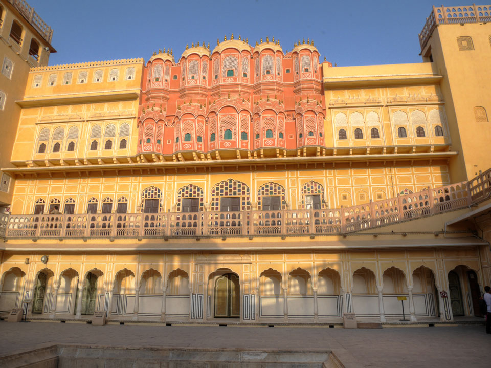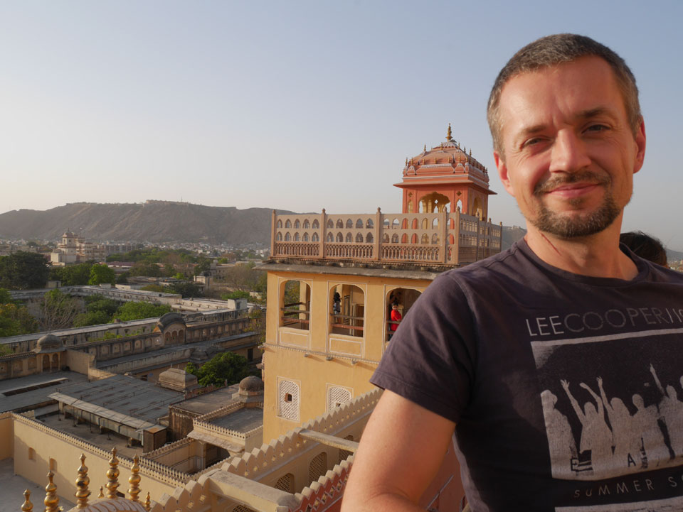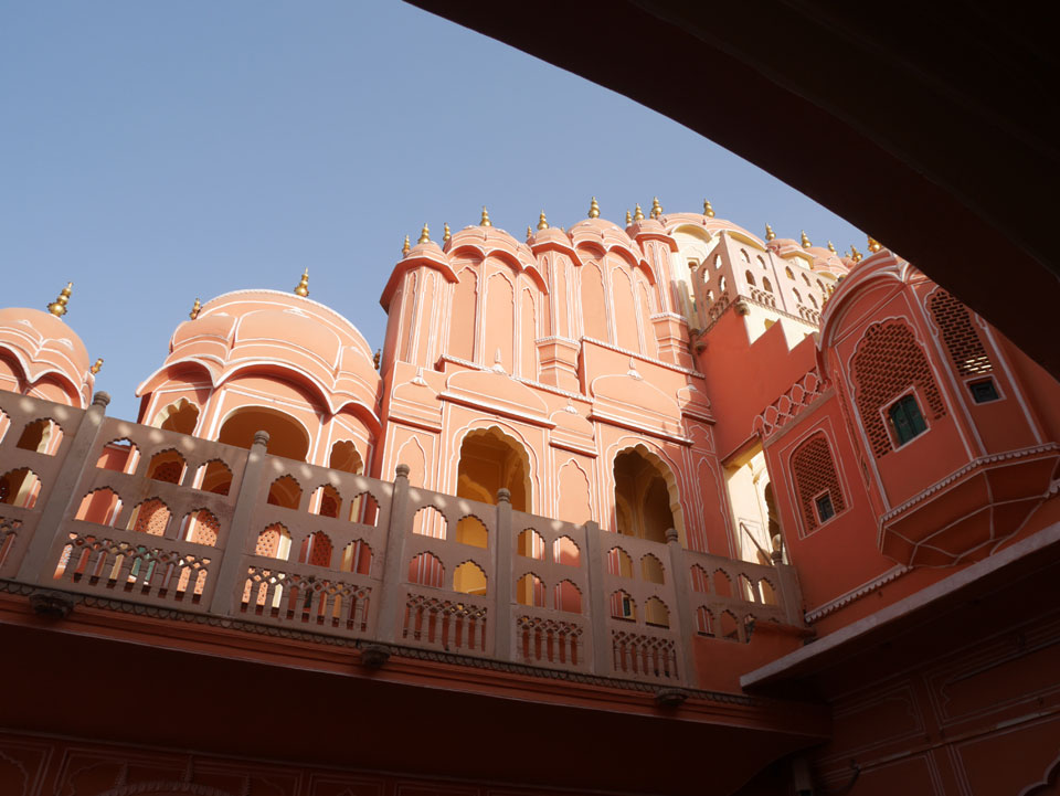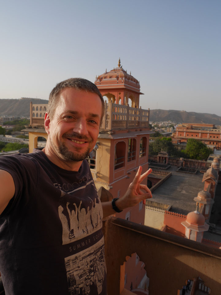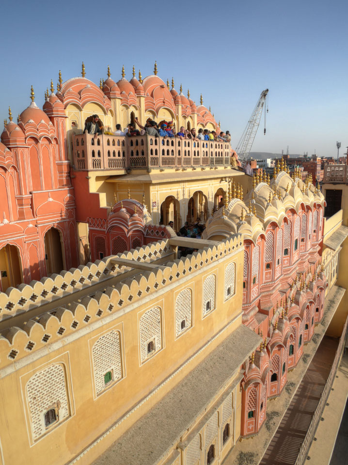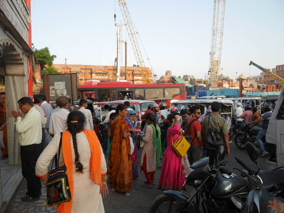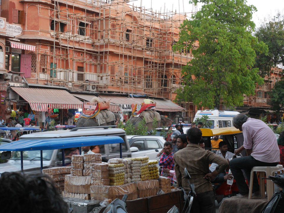 Das Hawa Mahal – der Palast der Winde – ging auch noch knapp vor Sonnenuntergang. Damit hatten wir die Attraktionen der Pink City geschafft und können morgen in den Norden. Fertig war ich heute schon. Die ganzen Sachen zwei Mal zu sehen, hätte ich mir auch gern gespart aber OK. Irgendwie ist alles doch bissel anders, weil unterschiedliche Bereiche renoviert werden.