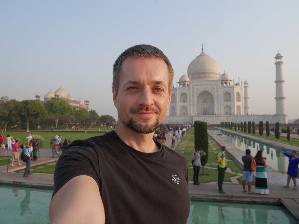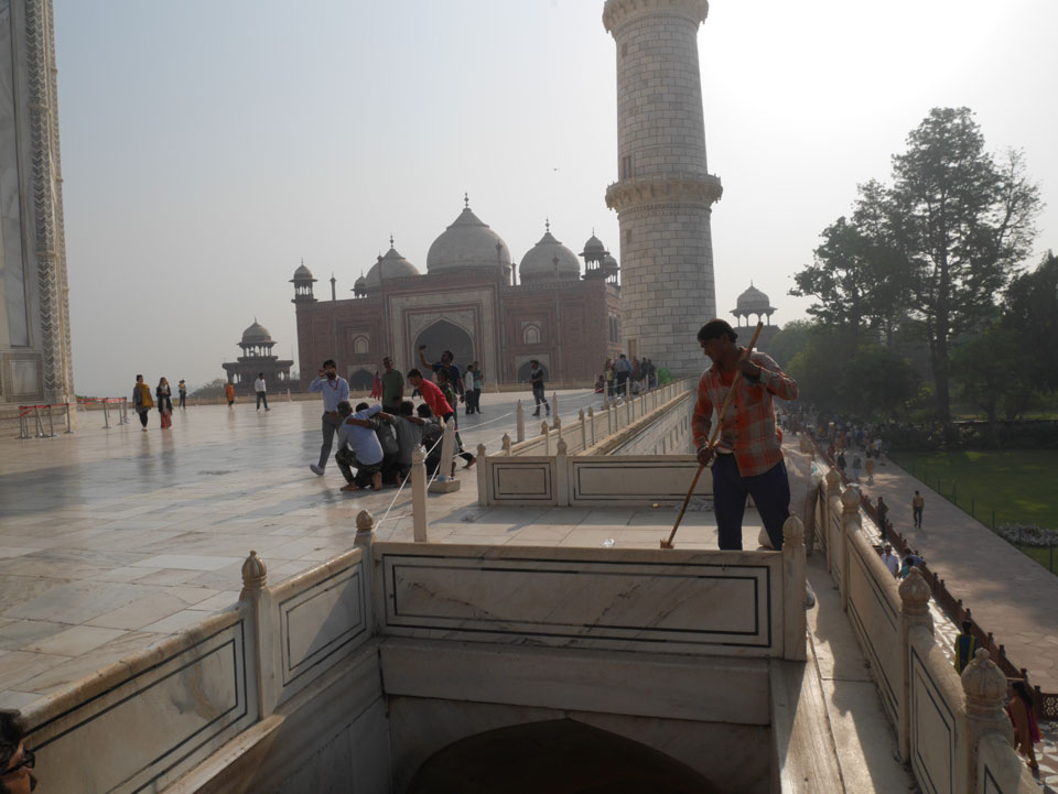 Noch vor 5:30 war ich wach und machte mich bereit. Das Taj Mahal zum Sonnenaufgang hatte ich letztes Jahr nicht geschafft. Es dauerte, bis jemand aus dem Knick kam und ich wurde leicht gestresst.