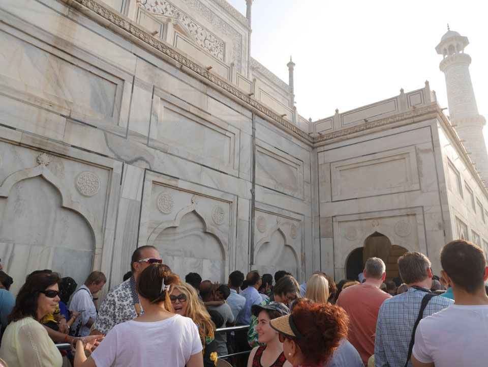 Der Ticketschalter war jetzt weiter in Tor-Nähe. Das Ost-Tor hatte geöffnet und eine doch beachtliche Anzahl von Leuten ging schon rein. Der Preis war mit 1000 INR genauso, wie im letzten Jahr. Die Preiserhöhung, von der ich im Internet las, wurde wohl doch ausgesetzt.