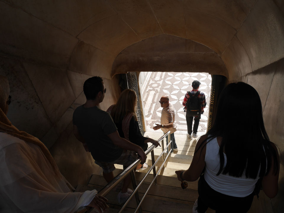 Wir kamen rein, ich hatte meine Müsliriegel noch schnell gemampft. Jemand musste Kekse abgeben. Gut, drin und so früh mal ein etwas anders Licht. Ich wunderte mich immer noch, wie viele Leute doch zu den Frühaufstehern gehörten. Alle schossen natürlich ihre Bilder und ich war auch gut beschäftigt. Das zweite Mal hier, war eben alles doppelt. Ein Minarett war inzwischen ohne Baugerüst. Müll lag dennoch ab und zu herum, was ich nicht ungewöhnlich fand, jemanden aber schon störte.