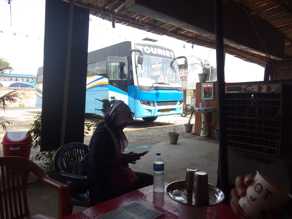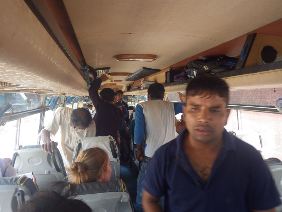 Ich hätte mich danach noch gern hingelegt, doch das war nicht mehr drin. Um 12 waren wir draußen, nahmen ein Tuktuk Richtung Bus. Der Fahrer heute war mir sympathischer, hatte auch einen Bruder der mitfahren wollte aber das war alles netter als gestern. Der Tuktuk-Fahrer machte den Bus klar, wohl auch wegen etwas Provision. Ich zahlte 1000 (2 x 500) für die Tickets. Auf der letzten Sitzreihe hatten wir Plätze. Der Bus wurde wieder voll mit einer Person zu viel neben mir.
