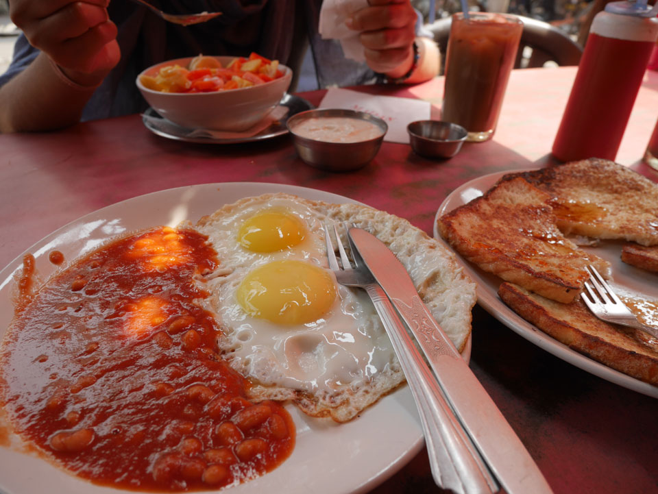 Die Eier sehen in Indien eher gelb, statt orange aus und waren nicht durch. Ich ließ es drauf ankommen. Falsche Entscheidung, vielleicht.