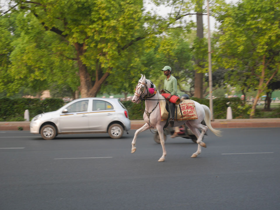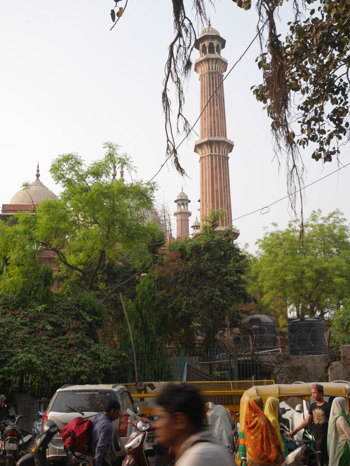Wir sahen das Fort, zahlten aber keine 500 INR Eintritt, spazierten nur eine Runde Richtung Jama Masjid. Daran vorbei ging’s über einen Markt zur Moschee. Ich ging nicht rein, kannte es schon von der Bike-Tour letztes Jahr, hatte wohl etwas zu kurze Hosen an. Am ersten Eingang schaffte es jemand auch nicht als Tourist, sollte 300 INR zahlen. Um die Ecke an einem weiteren Eingang sagte ich, dass man einfach Indien-typisch das Tuch über den Kopf tragen sollte und es klappte für eine kleine Runde.