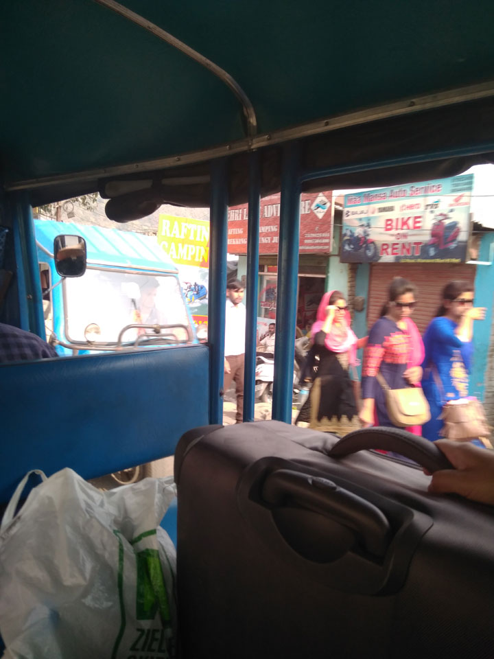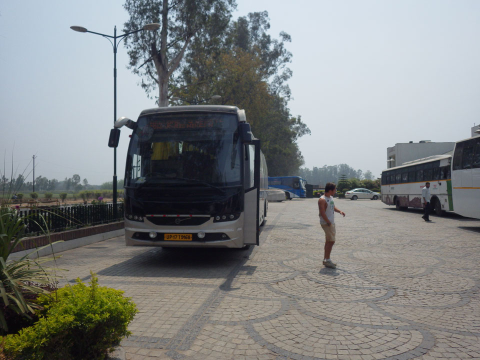 Mir war eigentlich alles egal – kein Stress, obwohl ich mir fast sicher war, dass wir dieses Mal den Bus verpassen. Dann waren wir 8:56 doch schon da. Ich machte Druck und wir hasteten am Busbahnhof herum. Ich fragte mich eilig zum Abfahrtsort des UPSRTC (Uttar Pradesh State Transport) Bus‘ durch, der natürlich weiter weg war. Dann rief noch einer Rishikesh und ja, der Bus hielt nochmal extra für uns und noch einen an. Eine Minute später wäre er weg gewesen. Wieder mal eine extrem knappe Sache aber wir waren drin.
