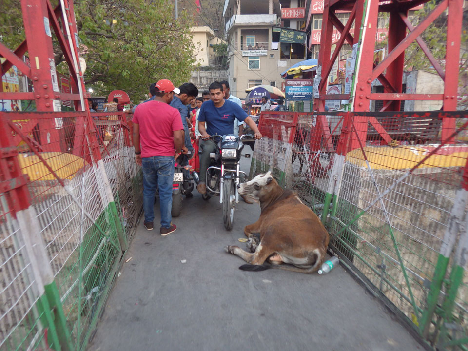 Den letzten Weg und ein paar Etagen musste ich den 25kg Koffer tragen. Blass sah ich wohl aus aber was will man machen. Am Ende war ich geschafft, wir hatten ein Zimmer in Ram Jhula gebucht und mussten dahin.