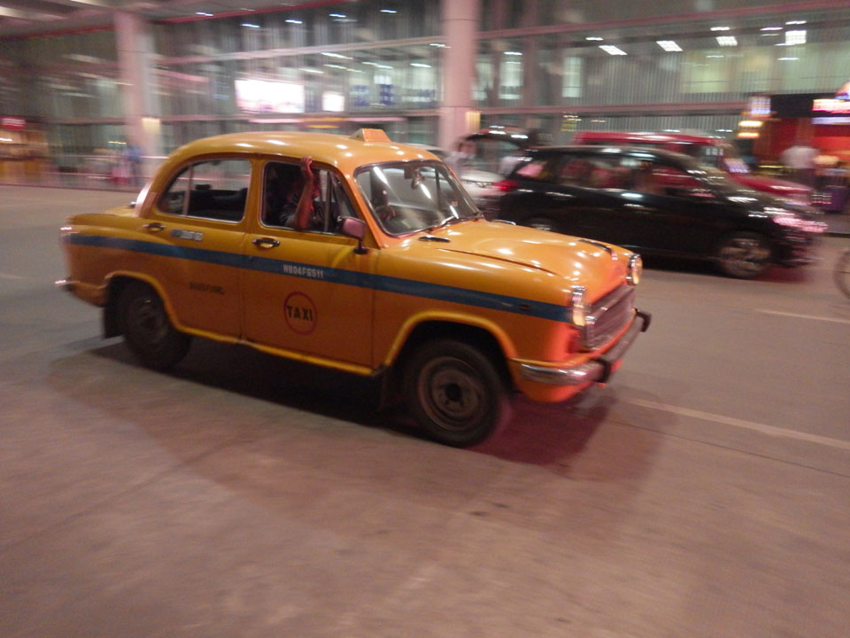 Das zweite Vehikel klappte, obwohl viel zu kalt und mit einem Spuckproblem beim Fahrer. Naja, Kalkutta sah auch sonst nicht viel doller aus. Cool sehen die alten Taxis aus.