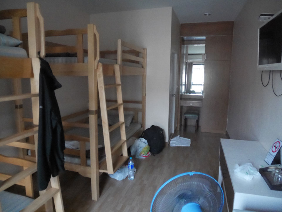 Bissel sparen ist eigentlich Quatsch aber ganz ohne Abstriche kann und will ich auch nicht reisen. Im Zimmer in der 5.(!) Etage war nur ein Malaysier, seit 10 Tagen hier und auf dem Weg nach China. Sehr freundlicher Typ.