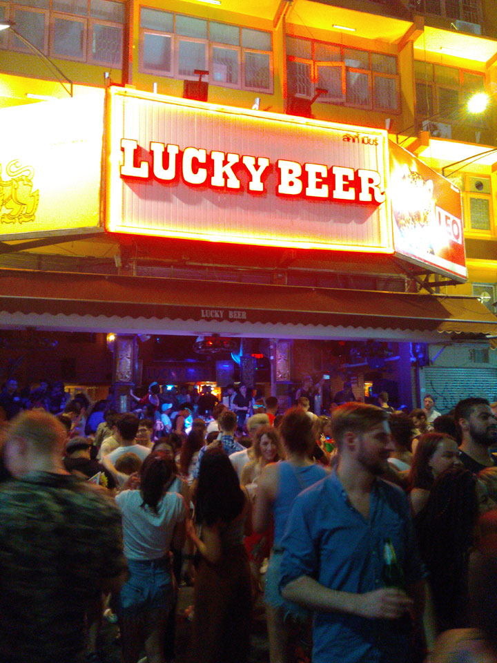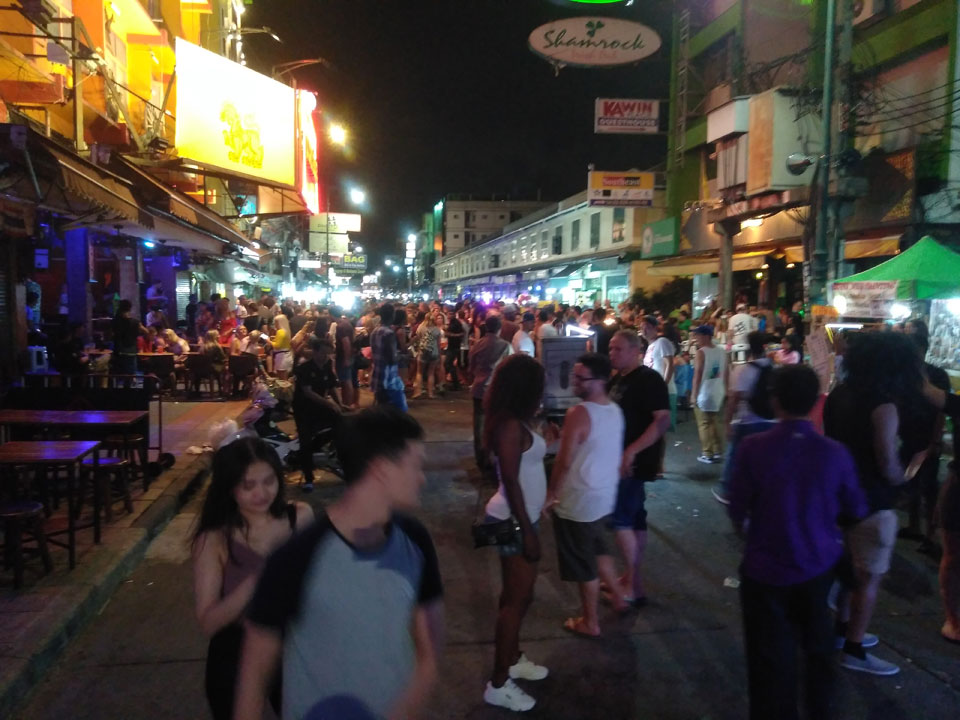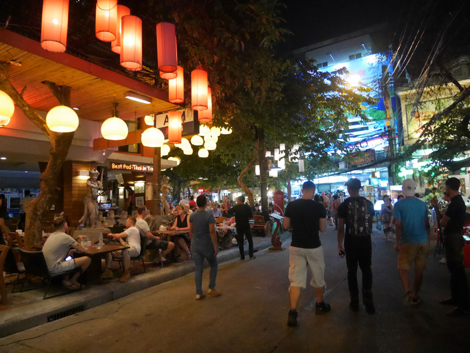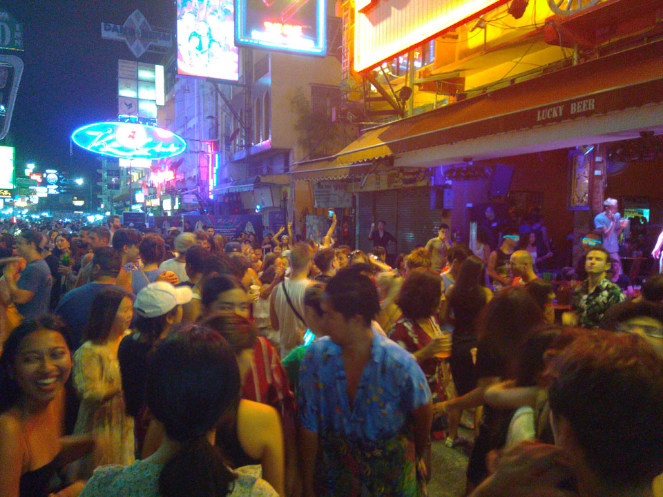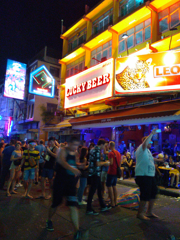 Nachts schaute ich mir das Spektakel auf der K’Road dann an. Die Lautstärke mit der sich Luky Beer und Center Khaosan beschallen, ist einfach irre. Man steht in einer Lärmwolke – von vorn und hinten beschallt. Man kann tanzen und herumzucken wie man will, alle Rythmen vermischen sich einfach zu Lärm. Mit einem Bier in der Hand ist das auszuhalten – einfach nur gucken und wundern.