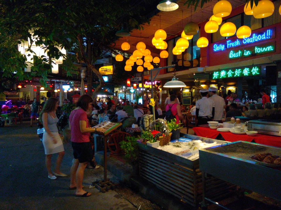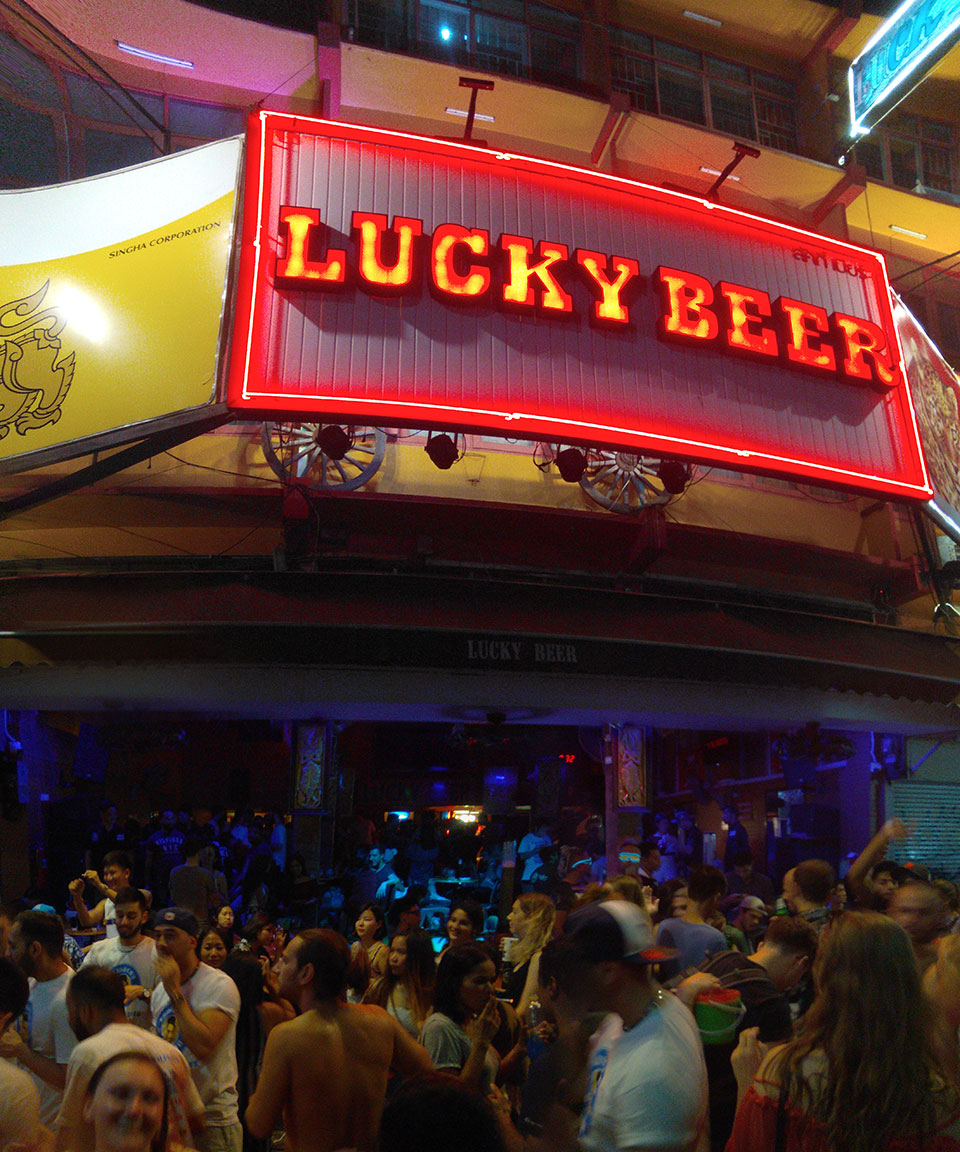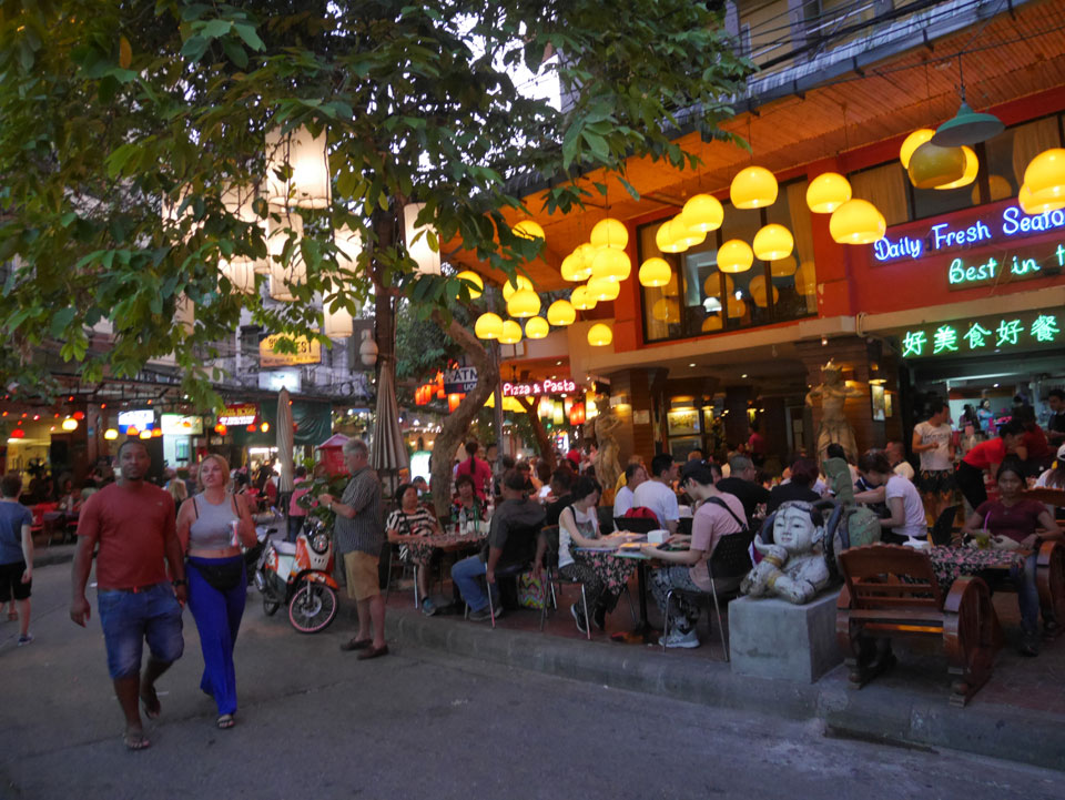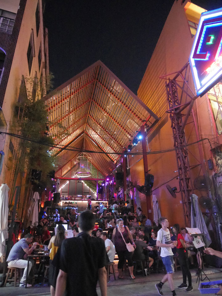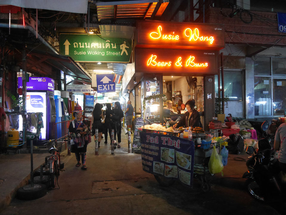 Nachts schaute ich mir das Spektakel auf der K’Road dann an. Die Lautstärke mit der sich Luky Beer und Center Khaosan beschallen, ist einfach irre. Man steht in einer Lärmwolke – von vorn und hinten beschallt. Man kann tanzen und herumzucken wie man will, alle Rythmen vermischen sich einfach zu Lärm. Mit einem Bier in der Hand ist das auszuhalten – einfach nur gucken und wundern.