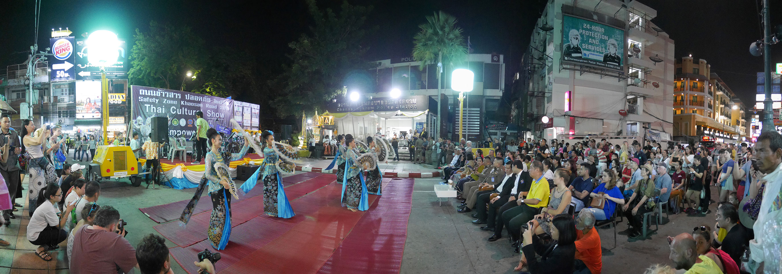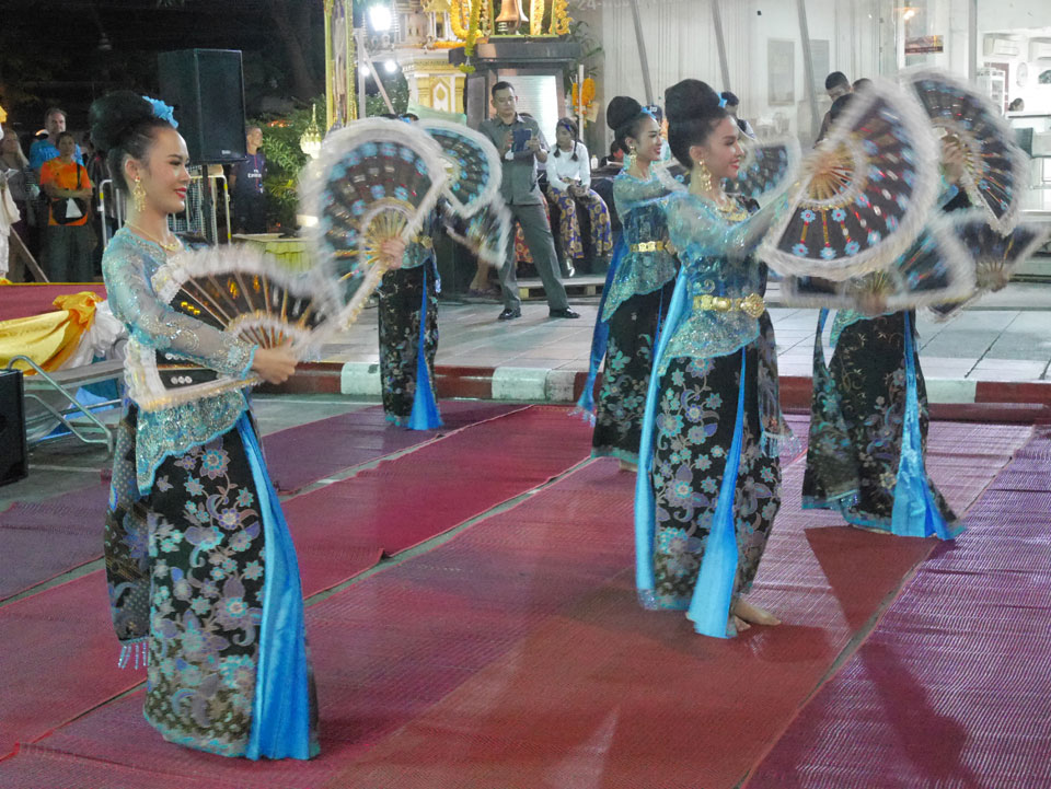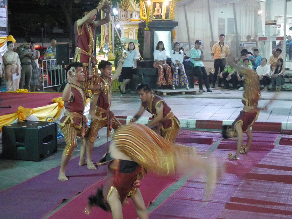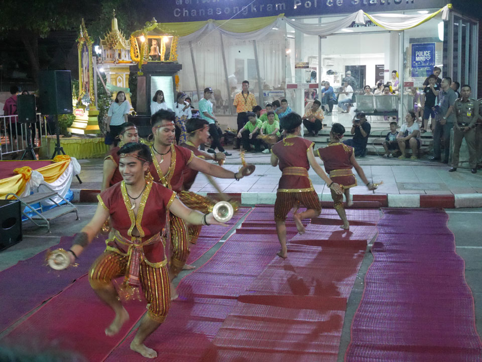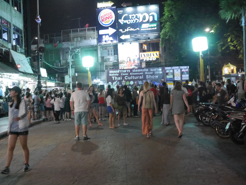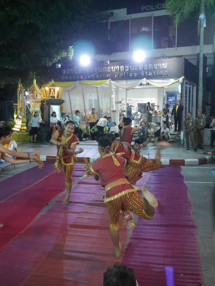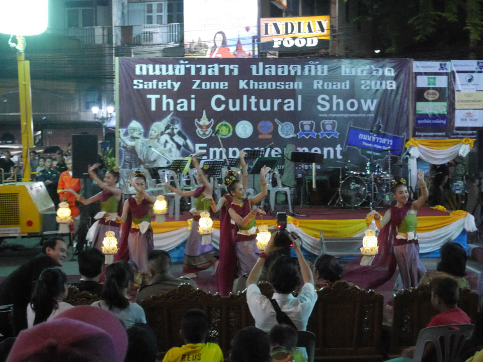 Ich legte mich etwas hin, ging dann in der bekannten Gegend incl. Haarschnitt auf die Khaosan Road. Da war zum frühen Abend noch nicht so viel los. Neu war an diesem recht unkulturellen Ort aber ein Aufbau zu einer Kultur-Show. Ich ging etwas herum, dann nach 19:00 ging der Tanz los.