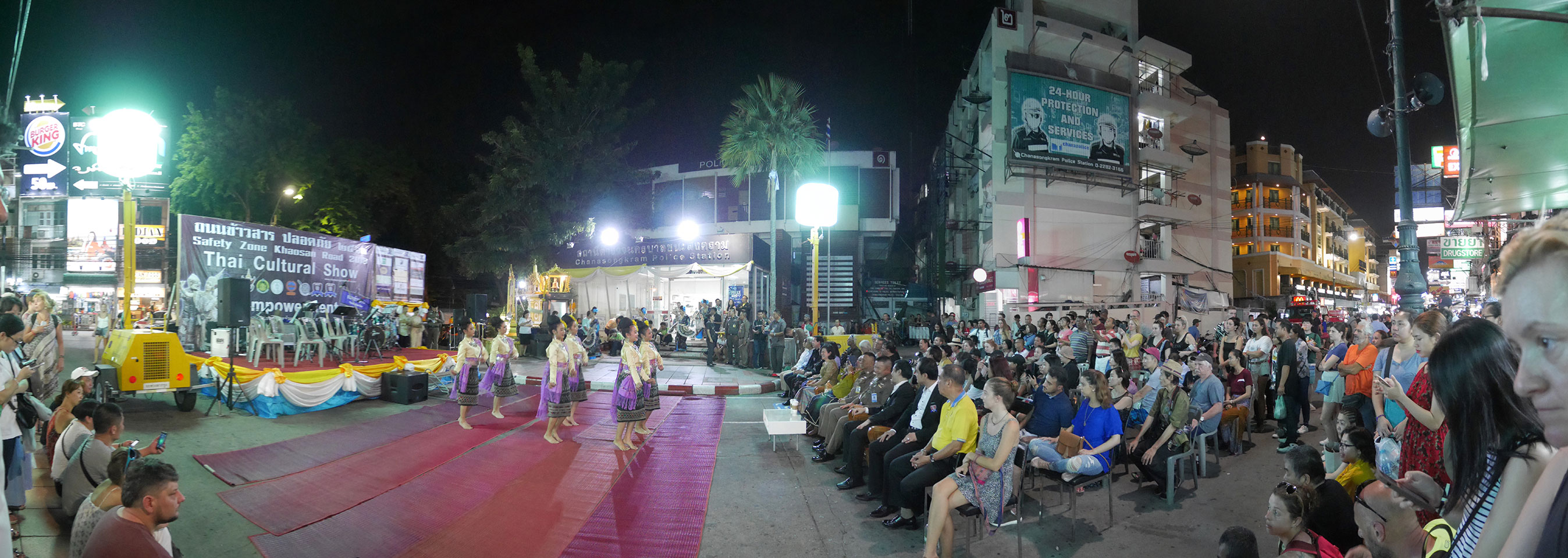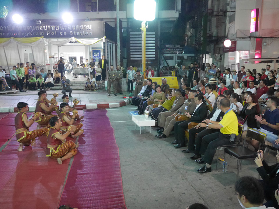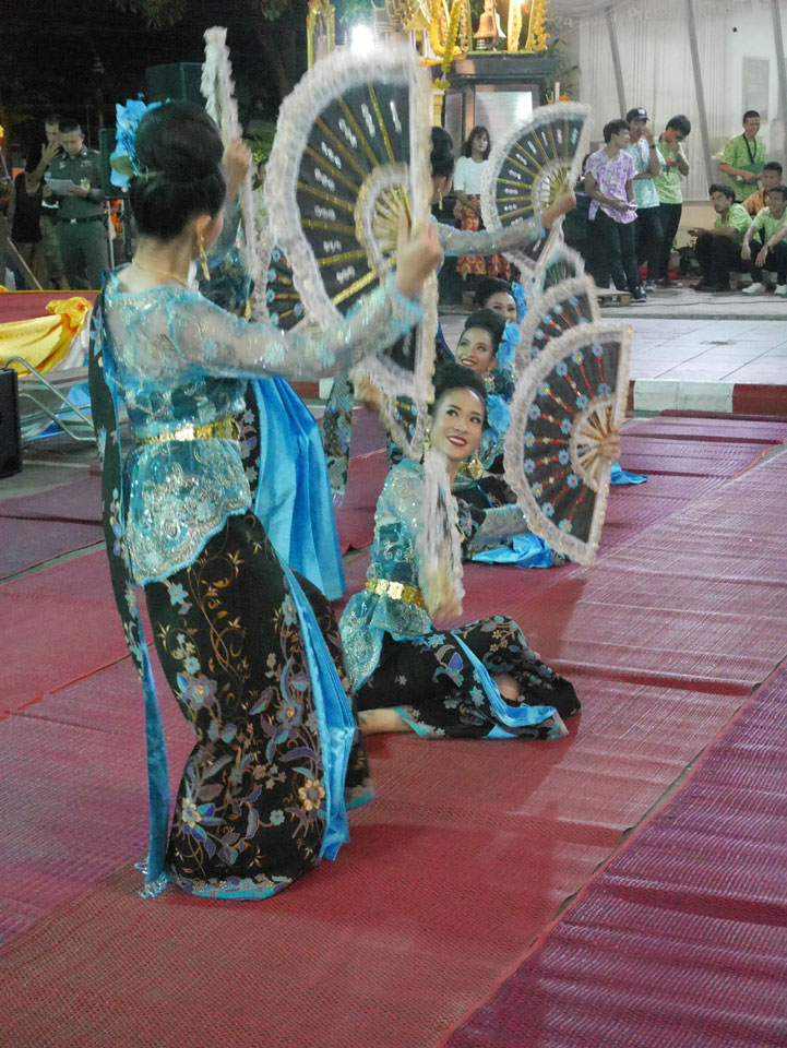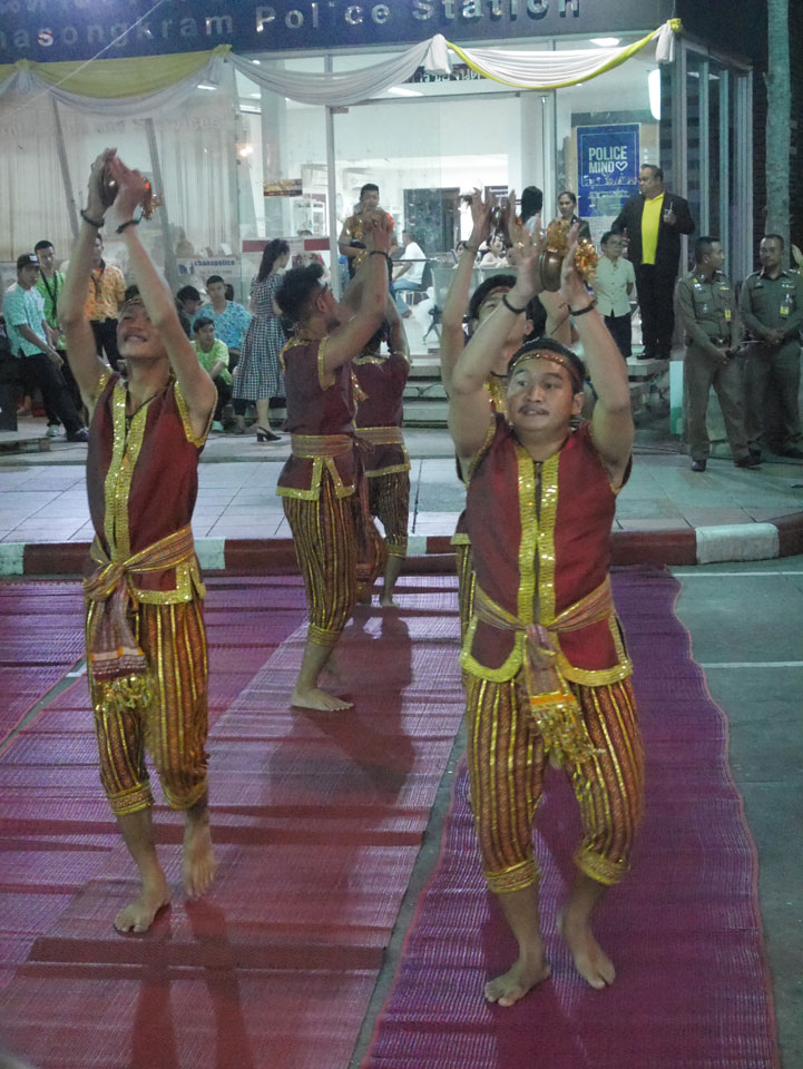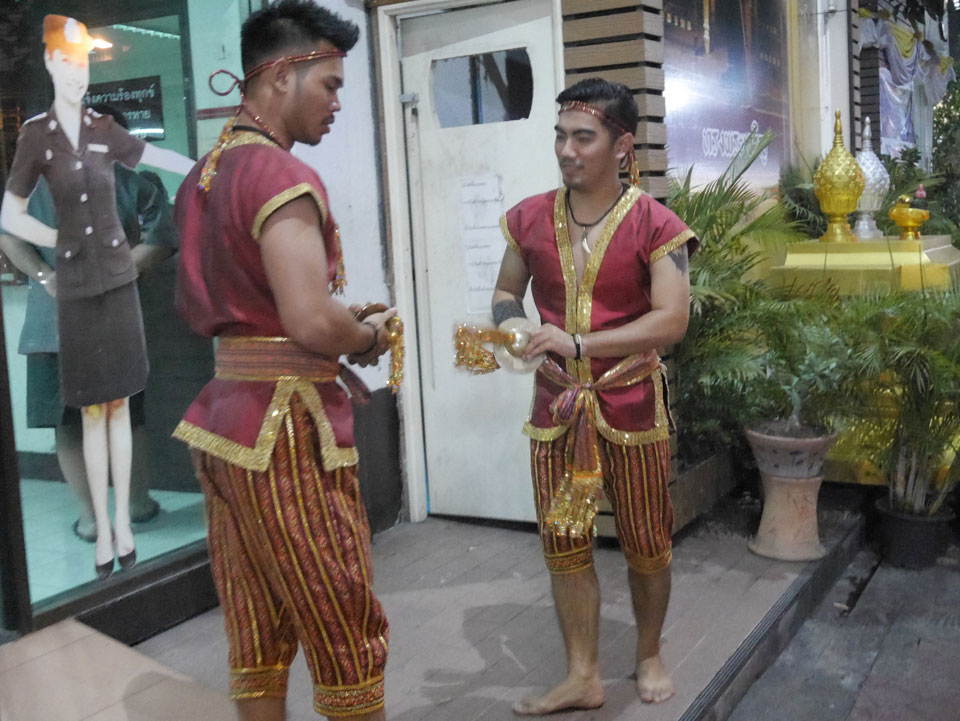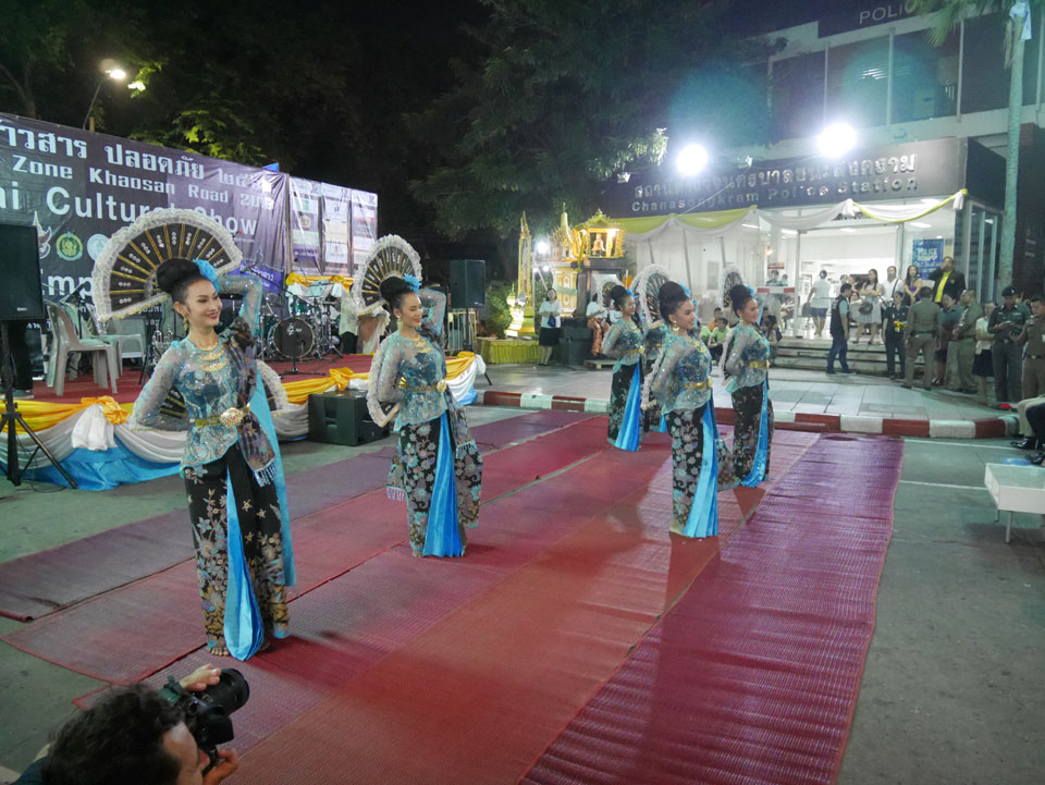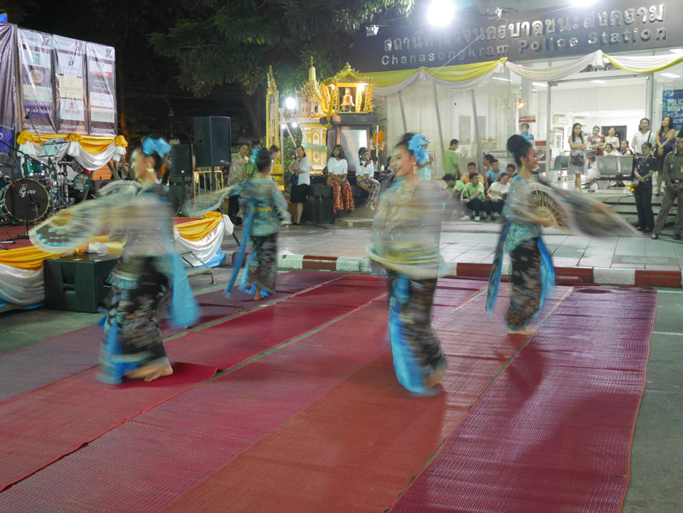 Ich legte mich etwas hin, ging dann in der bekannten Gegend incl. Haarschnitt auf die Khaosan Road. Da war zum frühen Abend noch nicht so viel los. Neu war an diesem recht unkulturellen Ort aber ein Aufbau zu einer Kultur-Show. Ich ging etwas herum, dann nach 19:00 ging der Tanz los.