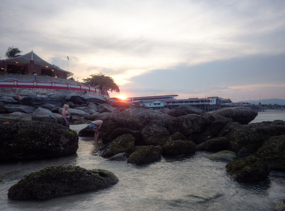 Ich dachte, ich hätte viel Zeit, ging 5 vor 12 zum Reisebüro. Ein Van stand da und ja, das war schon meiner. Ein paar Leute drin und dieses Mal ging’s erst mal wieder zum Umsteigen und dann wieder nach Hua Hin.