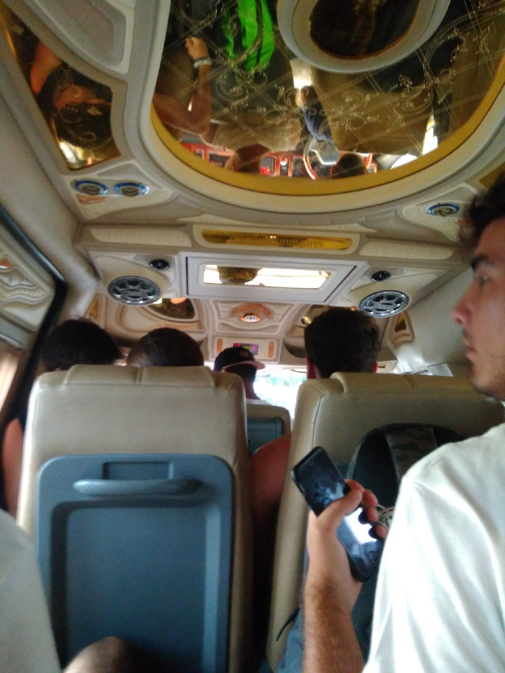 Nach dem Einchecken holte ich mit Klimpergeld im Family Mart und wartete nur kurz. Der Bus kam pünktlich 8:30. Mein zugewiesener Platz war aber voll nass. Meine Hose damit auch und ich sagte einer Stewardess Bescheid, sie machte ein Photo vom Sitz aber nur „Sorry“. Ich saß schon auf ’nem Plastikbeutel, doch das Mädel neben mir wollte neben ihrer Freundin sitzen und gab mir ihren Platz. Somit war das Problem gelöst.