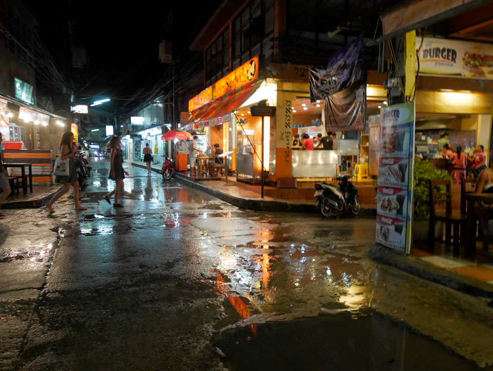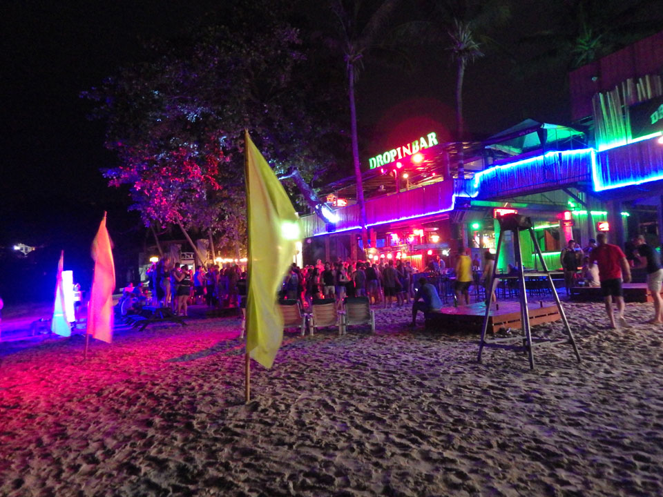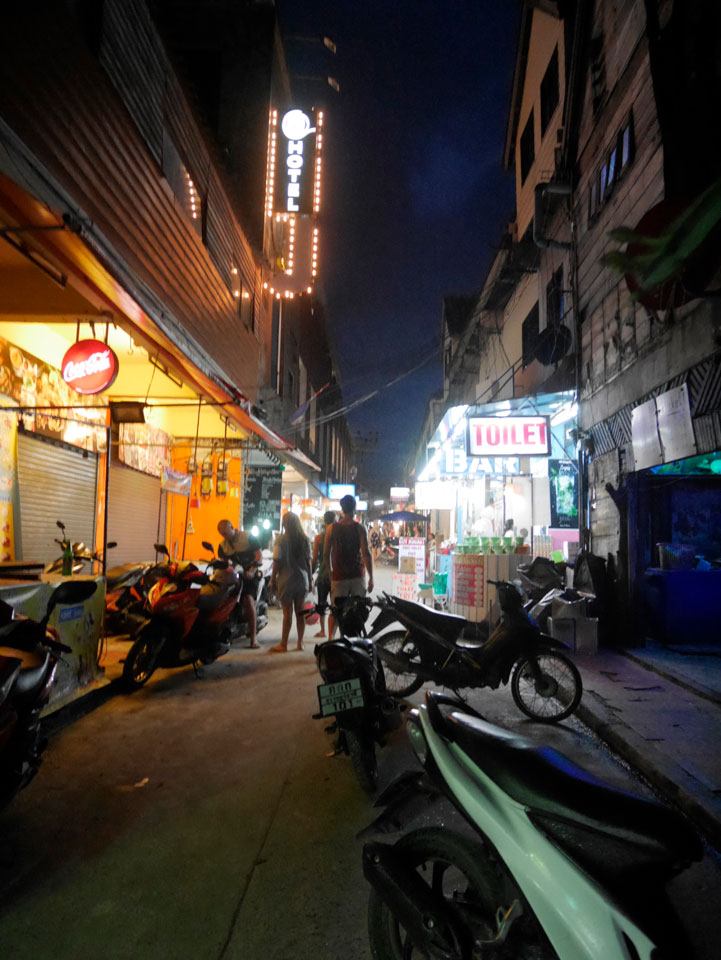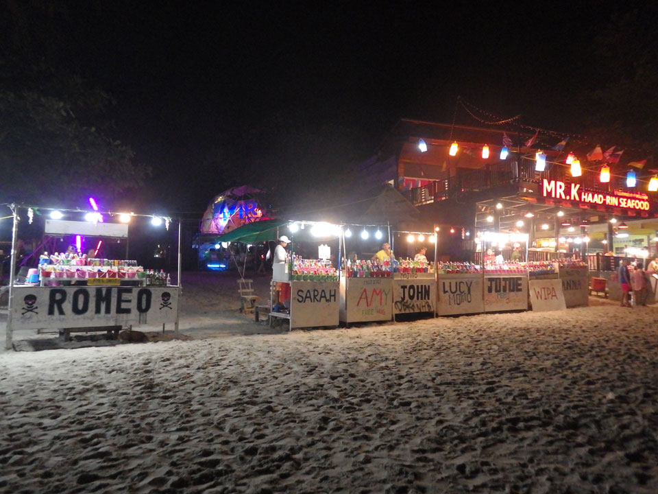 Ich war in Haad Rin, suchte mein Hostel. Das Snooze@Phangang schien mir online eher als Fake-Hostel und so war’s dann auch fast. Ich sah ein Schild, eine Frau sprang hinzu und checkte mich ein. Bevor ich zahlte, wollte ich aber das Zimmer sehen. Direkt am Fußweg zum Strand dann hatte mal im Erdgeschoss einfach ein Zimmer mit Doppelstockbetten vollgestellt. Es waren nur Betten obere Etage drin und ich wollte wegen des hohen Preises (€40/Full Moon – €9 sonstige Nächte) das nicht so akzeptieren. Sie hatte noch ein Zimmer nebenan, alles leer und gerade aufgeräumt. Das sagte mir mehr zu. Ich suchte mir ein Bett aus und war zufrieden – und 2250 THB (€66) ärmer.