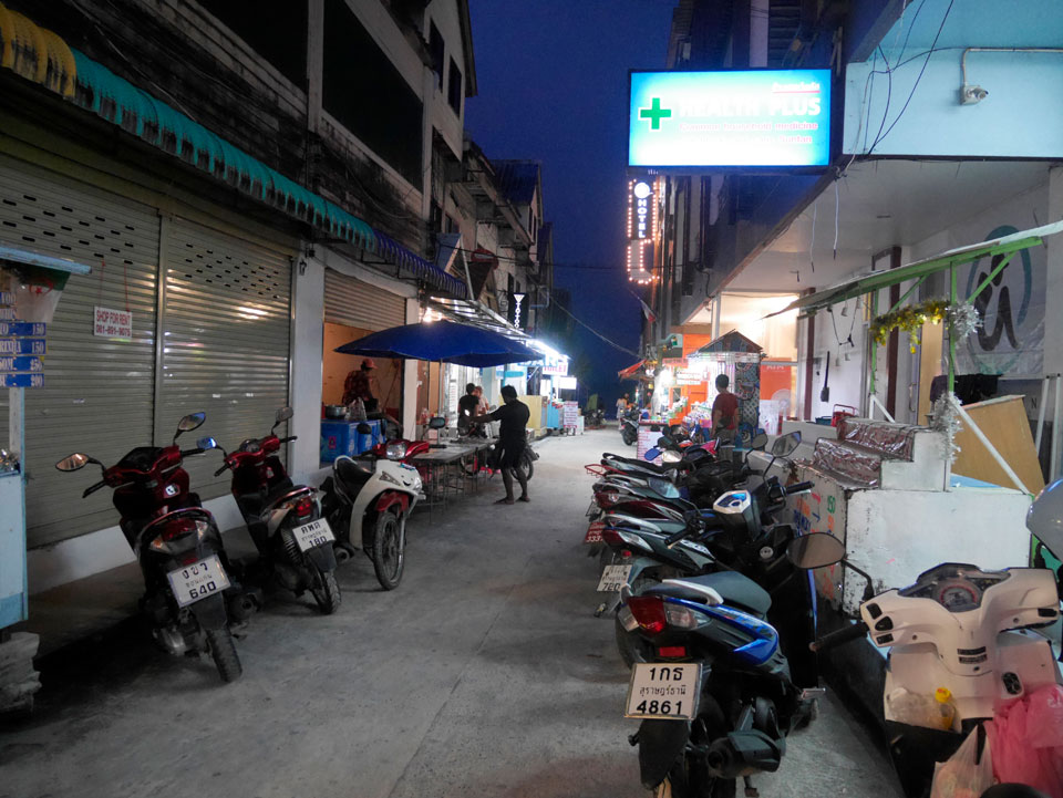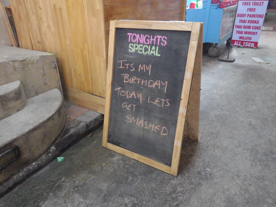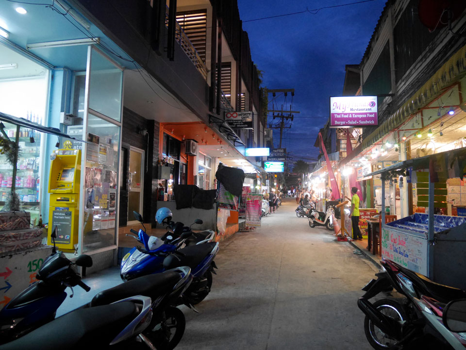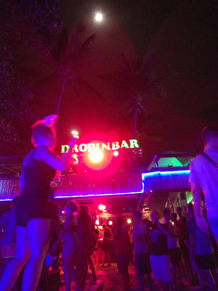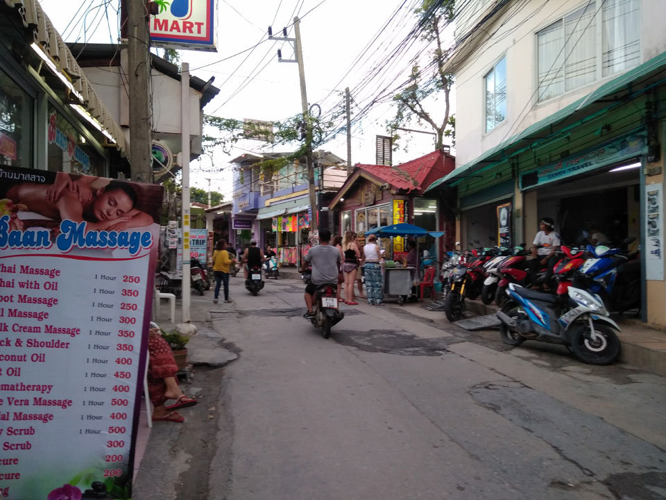 Ich war in Haad Rin, suchte mein Hostel. Das Snooze@Phangang schien mir online eher als Fake-Hostel und so war’s dann auch fast. Ich sah ein Schild, eine Frau sprang hinzu und checkte mich ein. Bevor ich zahlte, wollte ich aber das Zimmer sehen. Direkt am Fußweg zum Strand dann hatte mal im Erdgeschoss einfach ein Zimmer mit Doppelstockbetten vollgestellt. Es waren nur Betten obere Etage drin und ich wollte wegen des hohen Preises (€40/Full Moon – €9 sonstige Nächte) das nicht so akzeptieren. Sie hatte noch ein Zimmer nebenan, alles leer und gerade aufgeräumt. Das sagte mir mehr zu. Ich suchte mir ein Bett aus und war zufrieden – und 2250 THB (€66) ärmer.