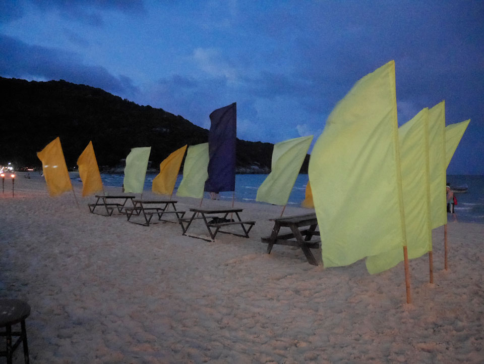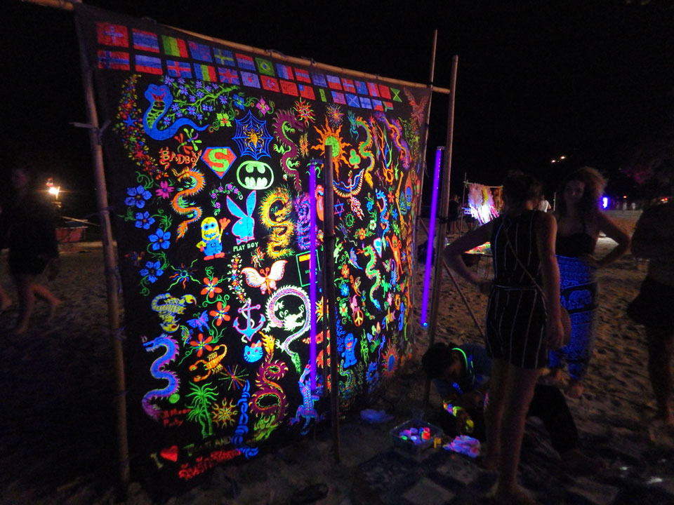 Die meisten Leute stiegen dann natürlich auf Phangang aus. Die Fullmoon Party ist in zwei Tagen, das war ja auch mein Ziel. Auf der Insel dann fand ich schließlich einen freien Platz in ’nem Van. Die Preise erhöhren sich auch immer weiter – jetzt 150 pro Nase im übervollen Vehikel.