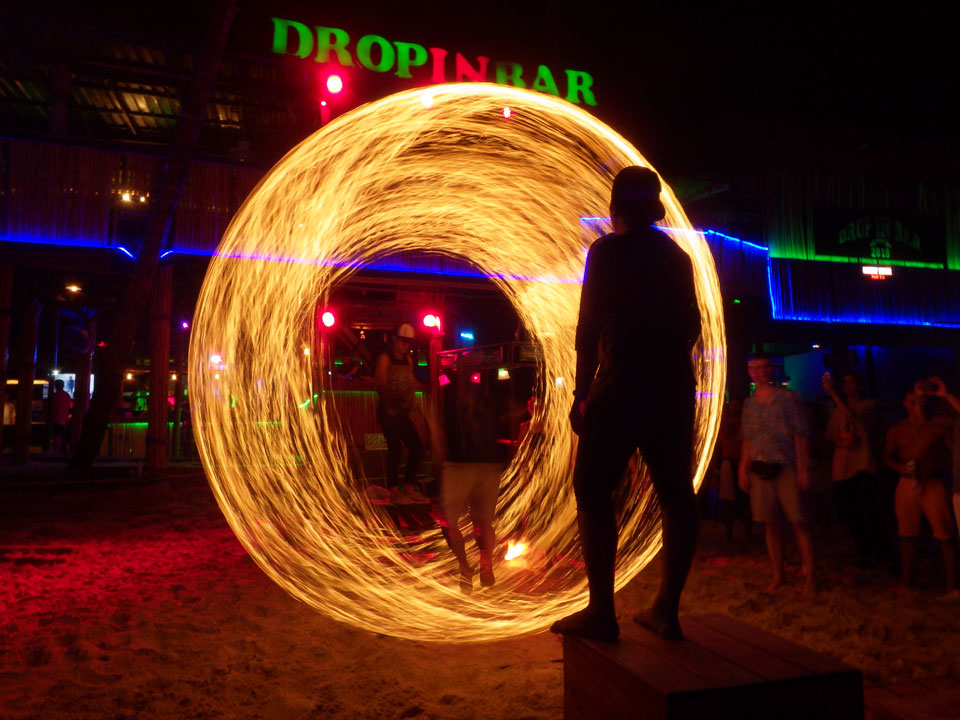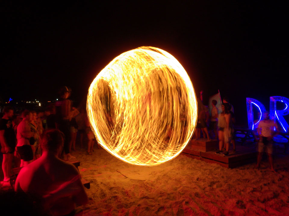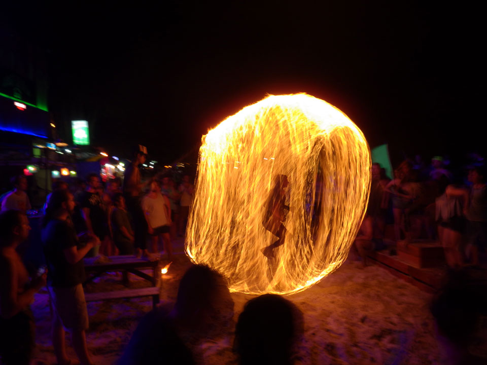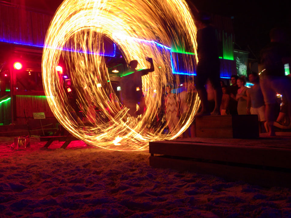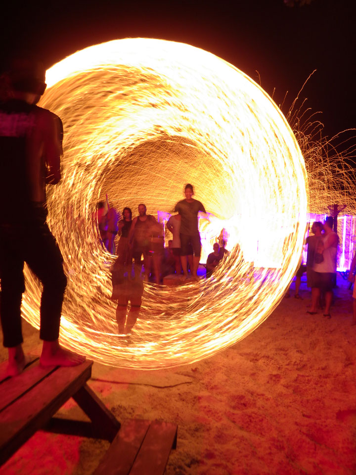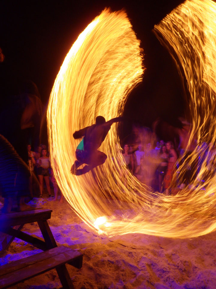 Am Strand dann wirbelte wieder einiges Feuer durch die Nacht. Die Leute versuchten sich im Limbo oder hüpften über brennende Seile. Es war alles nett und eben auch bekannt. Nett.