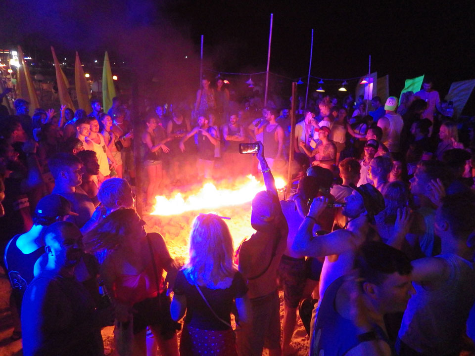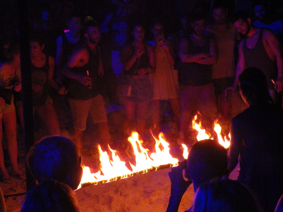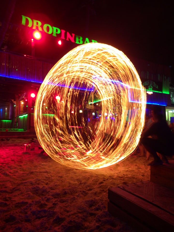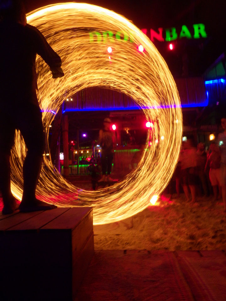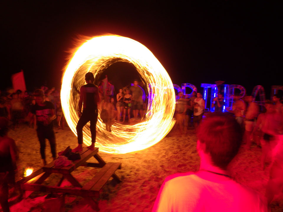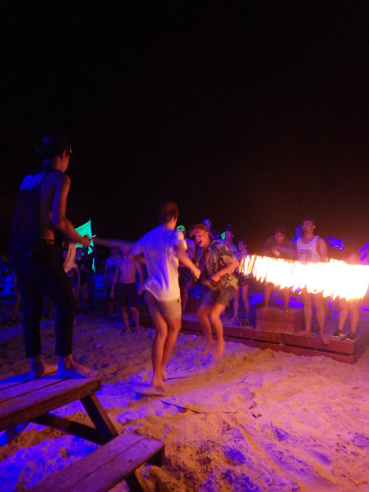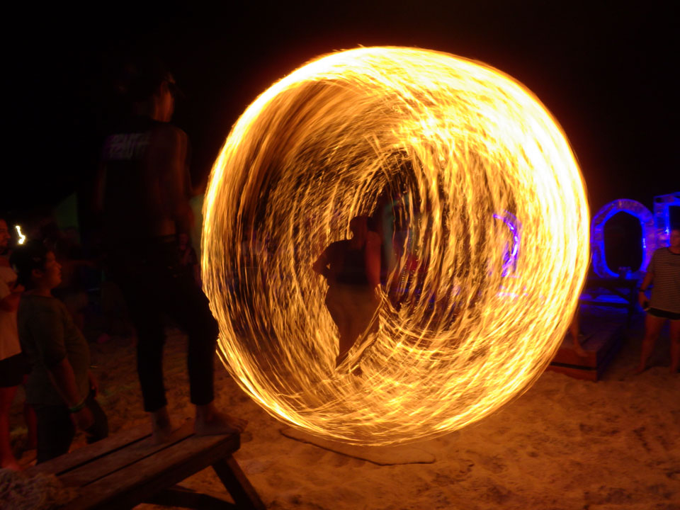 Am Strand dann wirbelte wieder einiges Feuer durch die Nacht. Die Leute versuchten sich im Limbo oder hüpften über brennende Seile. Es war alles nett und eben auch bekannt. Nett.