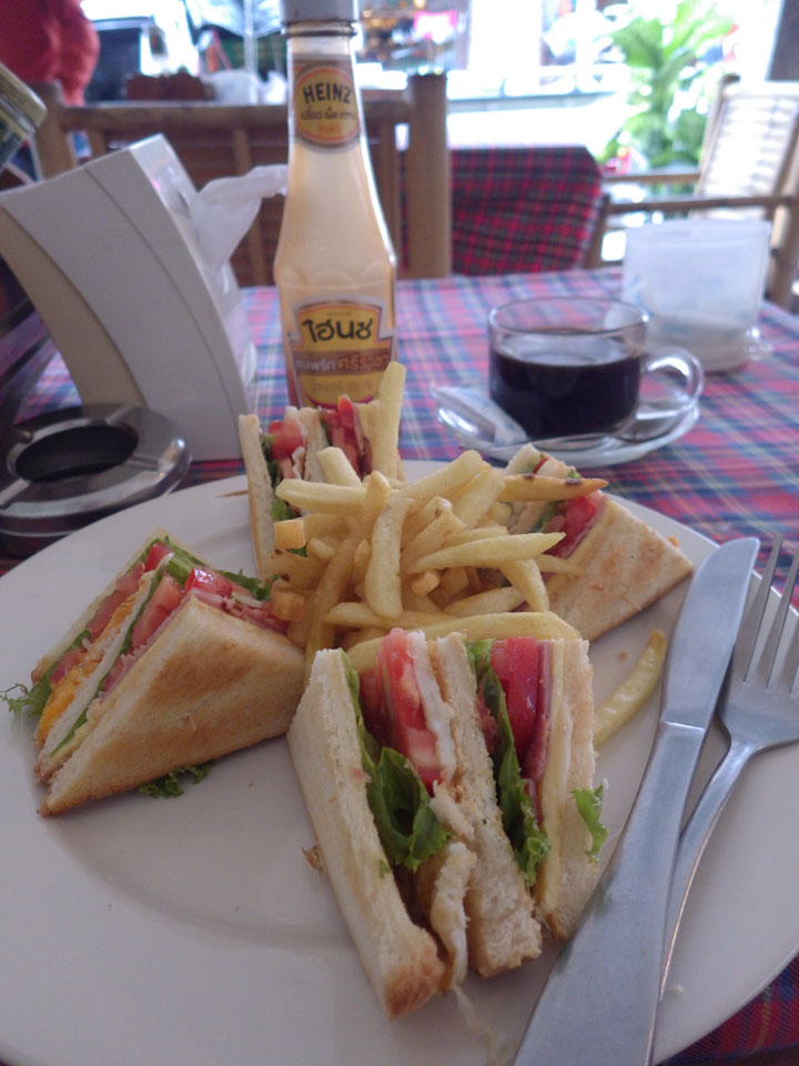 Das Zimmer wurde Mittags voll. Ich lag noch da, hörte das Einchecken einer Gruppe. Ich ging dann erst mal Frühstücken, wieder Club Sandwich aber mit einem irre schlechten Instant Kaffee, dass es mich schüttelte.