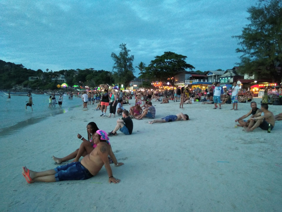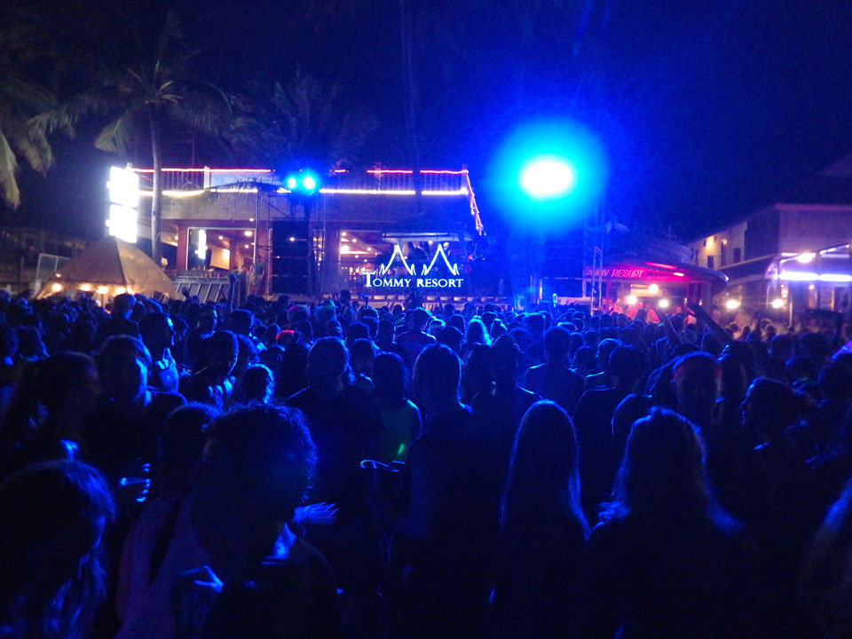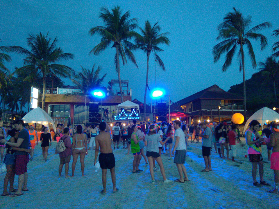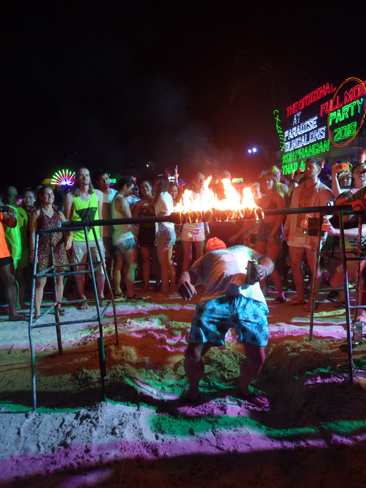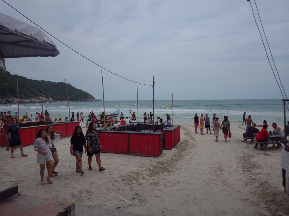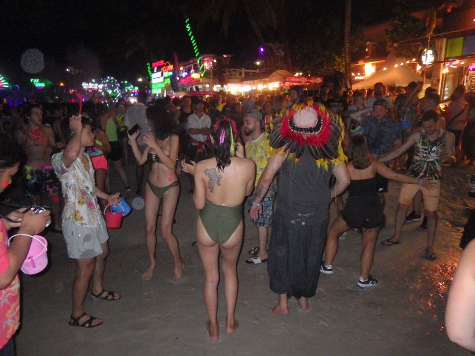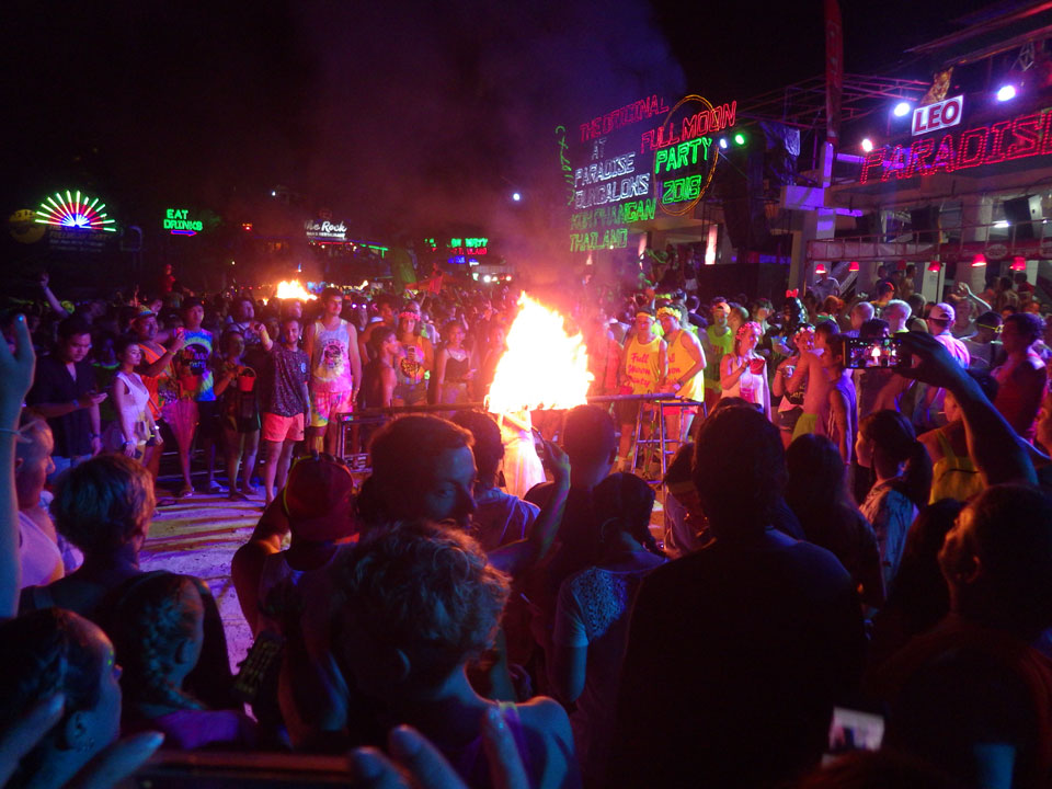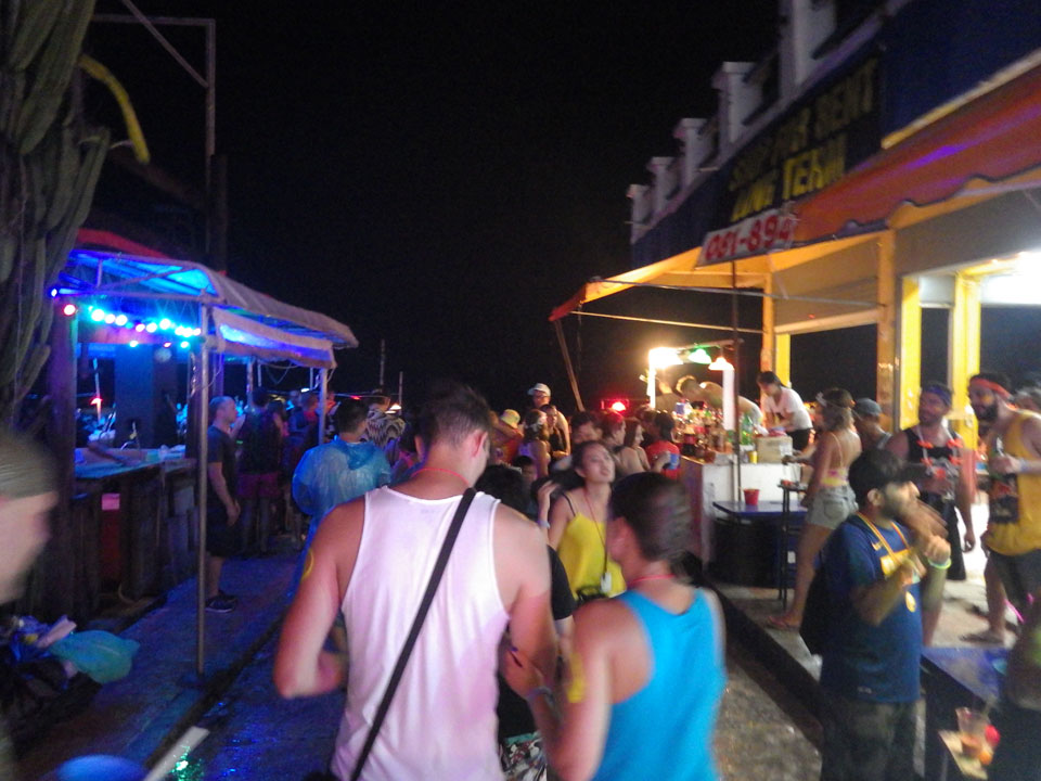 Viele Leute zog es heute wieder nach Haad Rin. Die Party war gut, bekannte Musik und einige kleine Bars von Anfang bis Ende. Ganz so voll wie im Mai letztens Jahres war’s aber wohl nicht. Die Stimmung war auch gut, immer mit etwas Bammel vor großem Regen doch es blieb trocken.