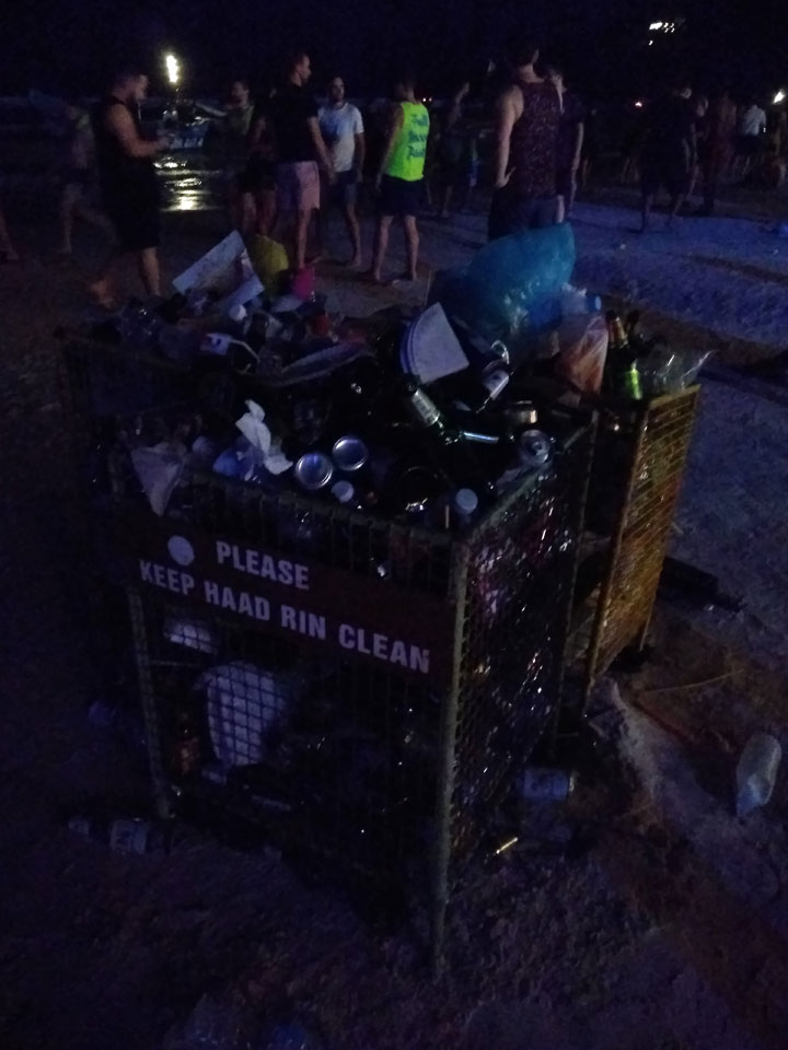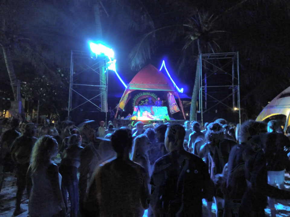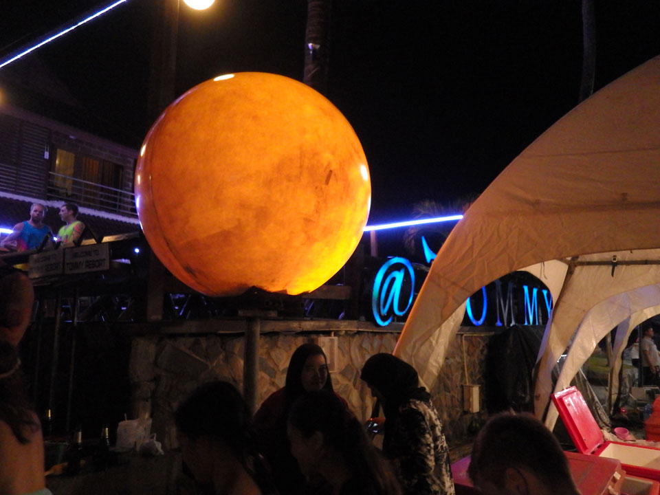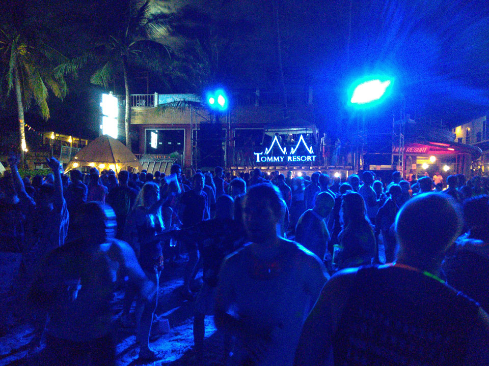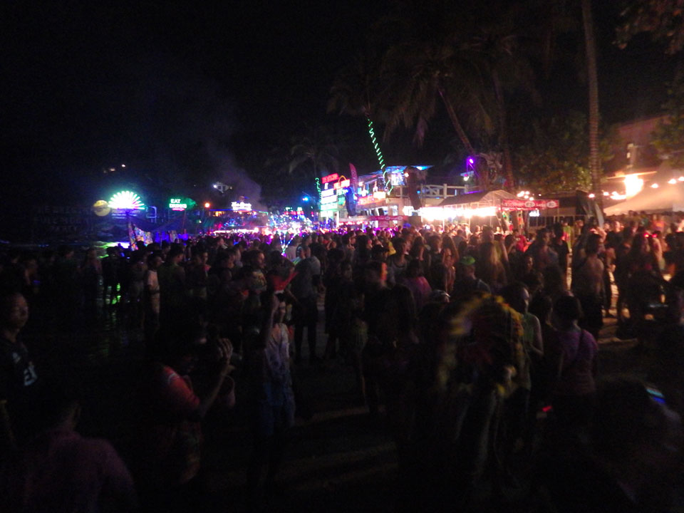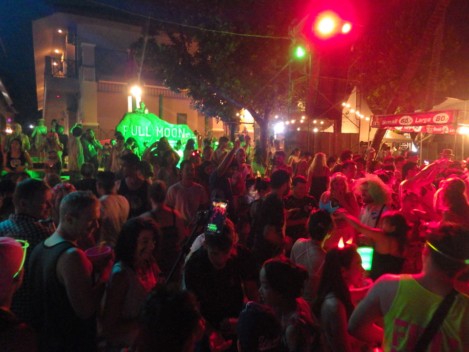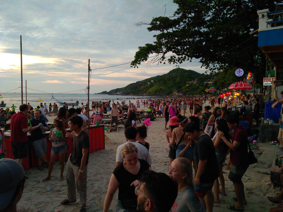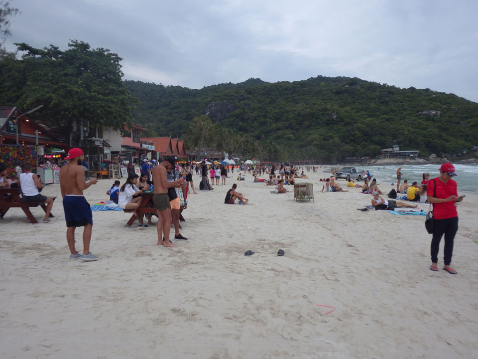 Viele Leute zog es heute wieder nach Haad Rin. Die Party war gut, bekannte Musik und einige kleine Bars von Anfang bis Ende. Ganz so voll wie im Mai letztens Jahres war’s aber wohl nicht. Die Stimmung war auch gut, immer mit etwas Bammel vor großem Regen doch es blieb trocken.