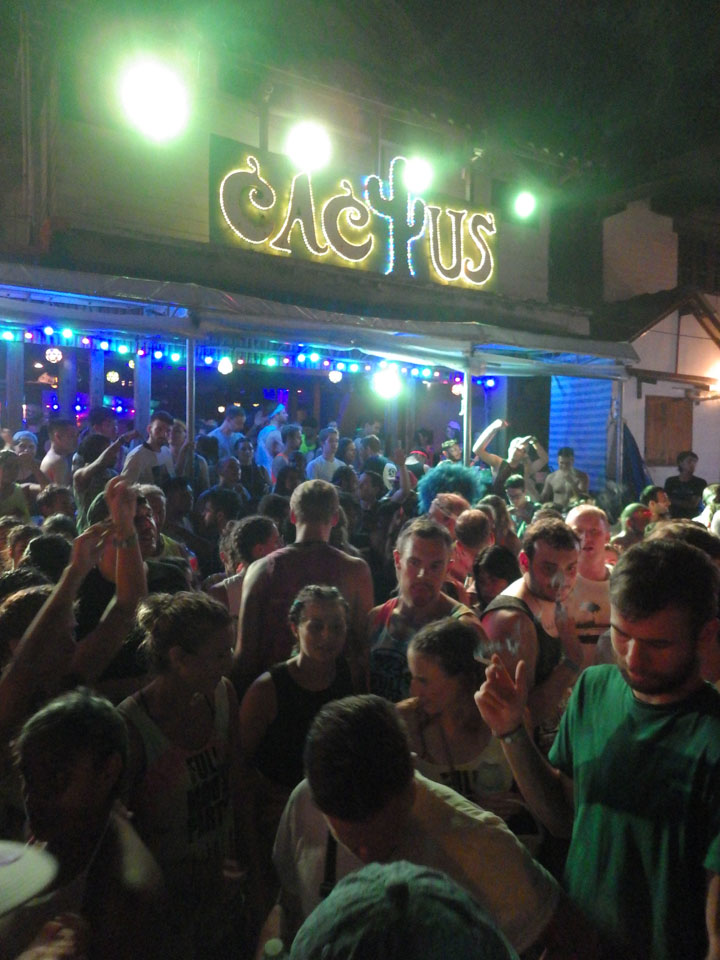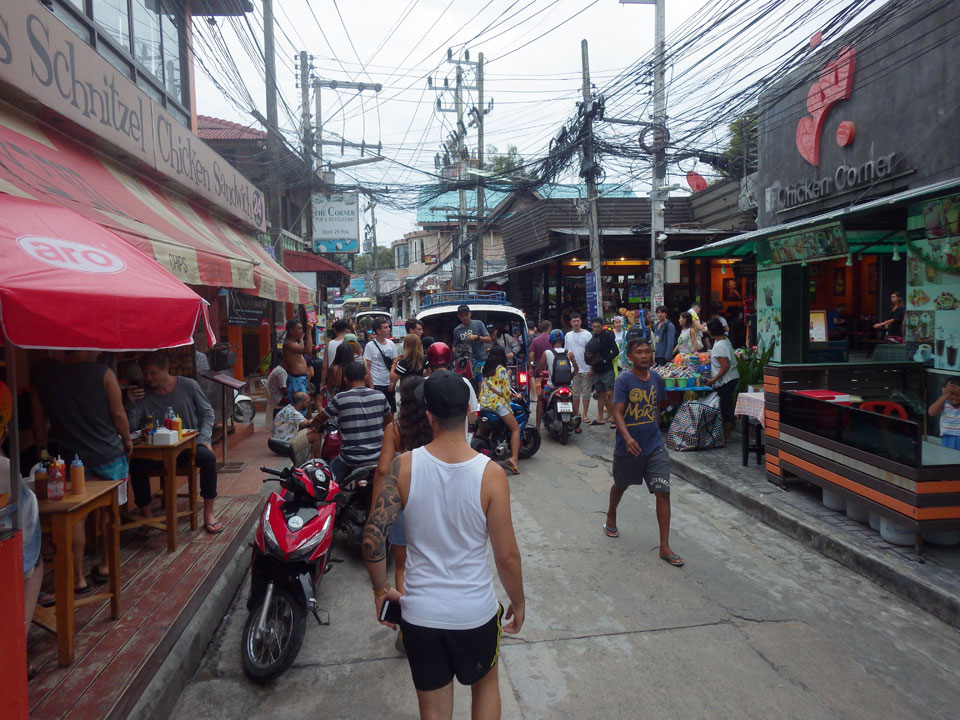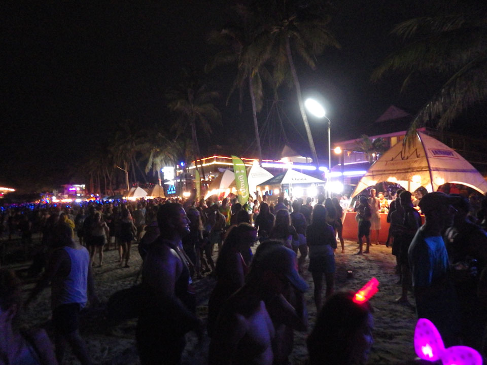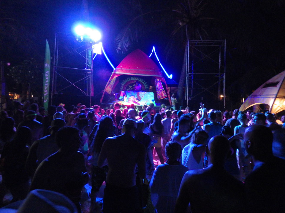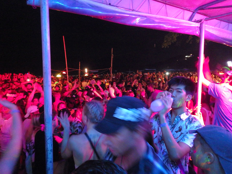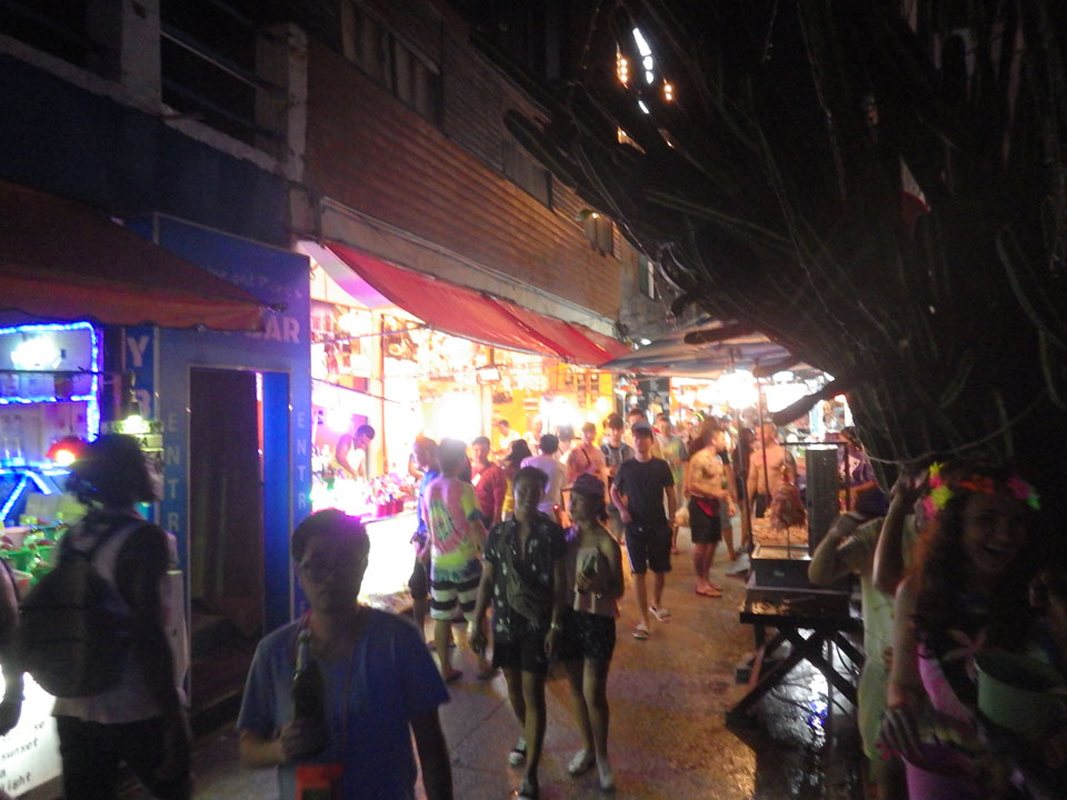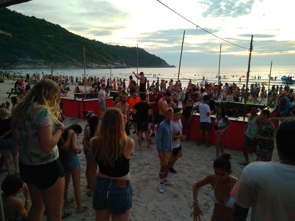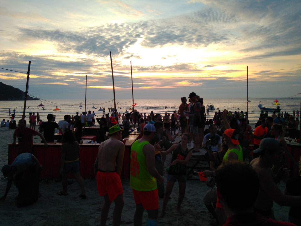 Viele Leute zog es heute wieder nach Haad Rin. Die Party war gut, bekannte Musik und einige kleine Bars von Anfang bis Ende. Ganz so voll wie im Mai letztens Jahres war’s aber wohl nicht. Die Stimmung war auch gut, immer mit etwas Bammel vor großem Regen doch es blieb trocken.