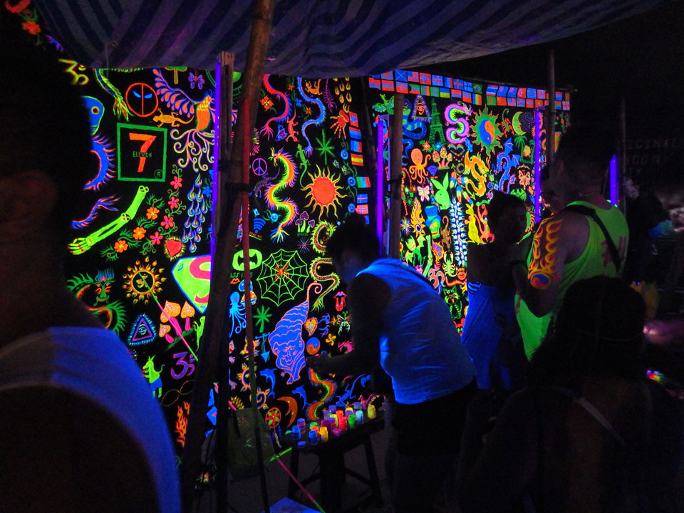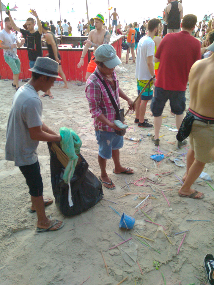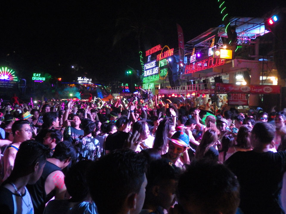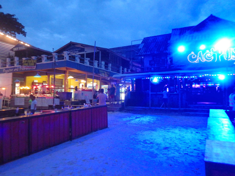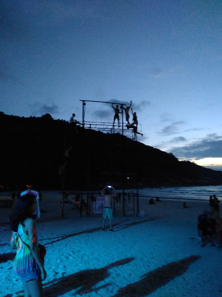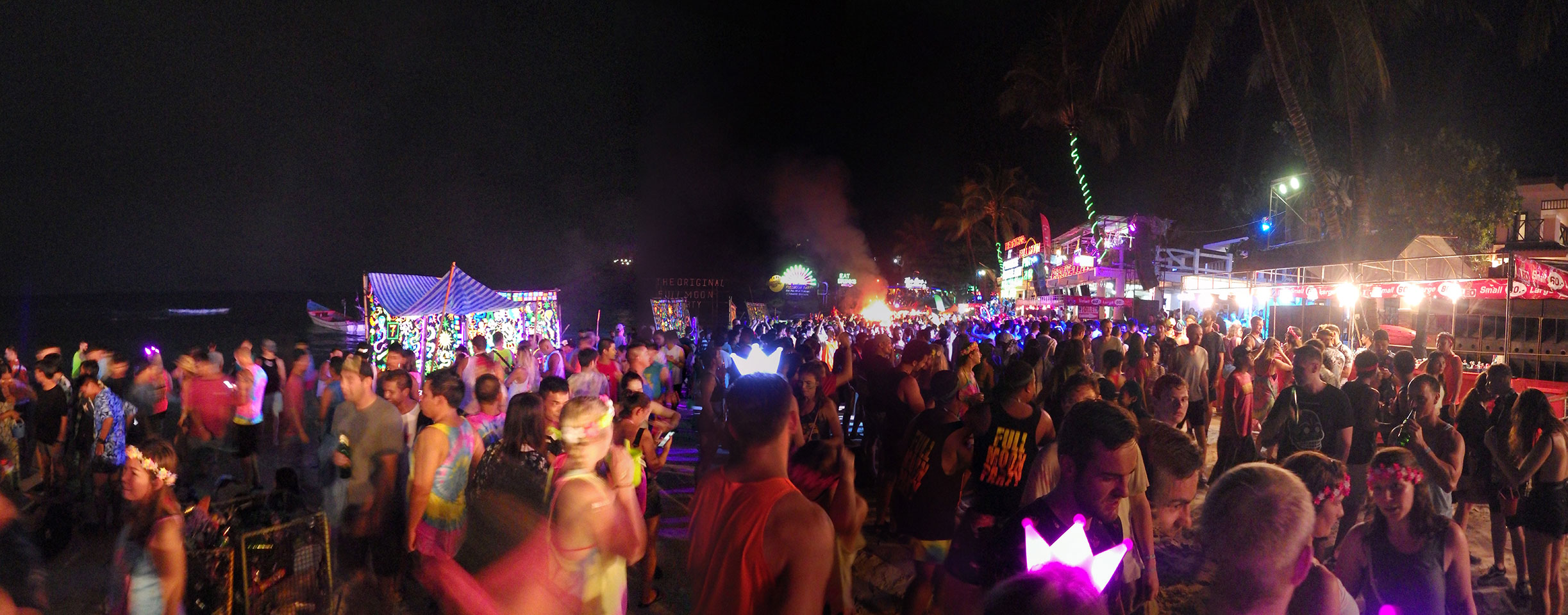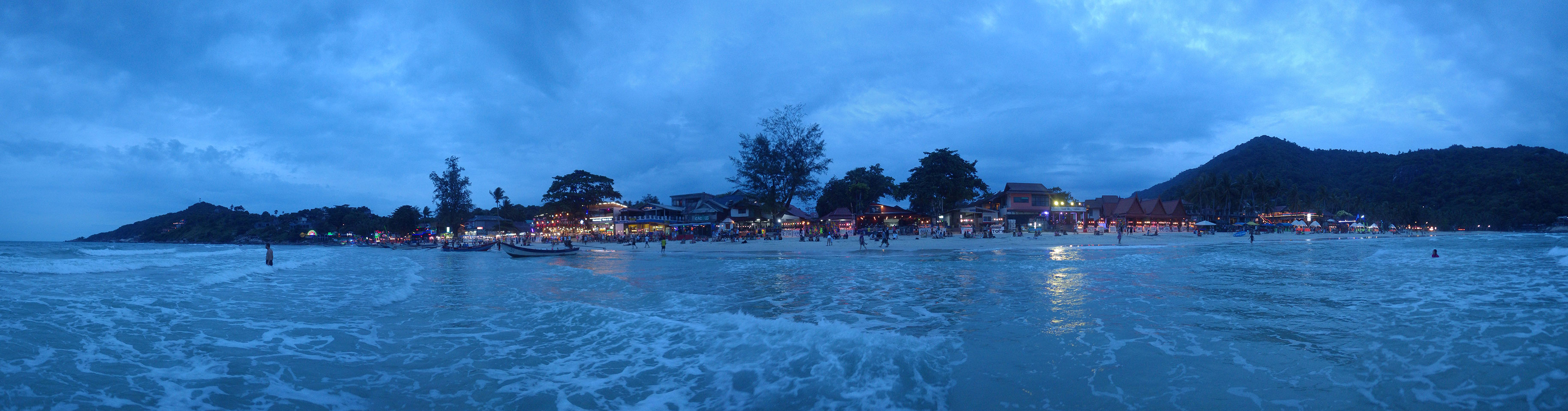 Viele Leute zog es heute wieder nach Haad Rin. Die Party war gut, bekannte Musik und einige kleine Bars von Anfang bis Ende. Ganz so voll wie im Mai letztens Jahres war’s aber wohl nicht. Die Stimmung war auch gut, immer mit etwas Bammel vor großem Regen doch es blieb trocken.