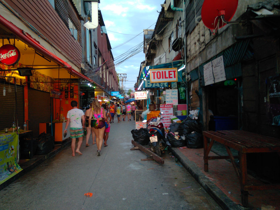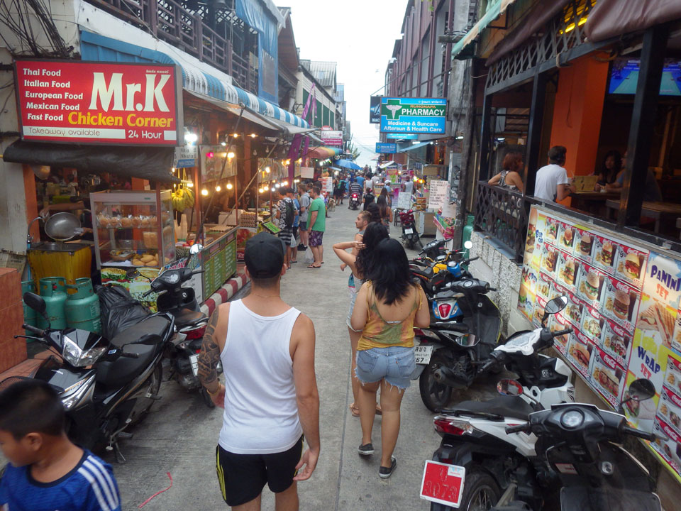 Die neuen Zimmergenossen lernte ich dann auch kennen. Allesamt Neuseeländer, teils Maori aus Auckland. Meine Neuseeland-Erinnerungen liegen lange zurück – 2004. Einige waren wohl auch Halb-Thai. Einer arbeitete als Englisch-Lehrer hier, was eben auch häufig ist. Sehr freundlich waren sie zu mir, gaben ein Bier aus, worauf ich die Getränke für den Abend auch beschaffte und eins zurück ausgeben konnte. Die Lage des Zimmers ist einfach Klasse. Gleich nebenn verkauft man Getränke. Ich musste nicht mal meine Schuhe anziehen.