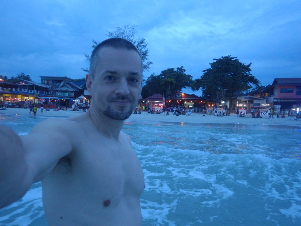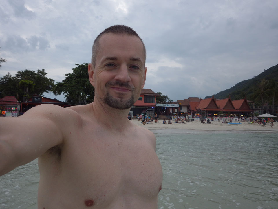 Ich holte erst mal meine Wäsche und ging nochmal am Strand baden. Mit dem diesigen Wetter war’s heute auch wieder ruhig. Das Wasser und die Wellen wieder perfekt. Die Inseln in Thailand sind eben echt gut zum Ausspannen und Baden.