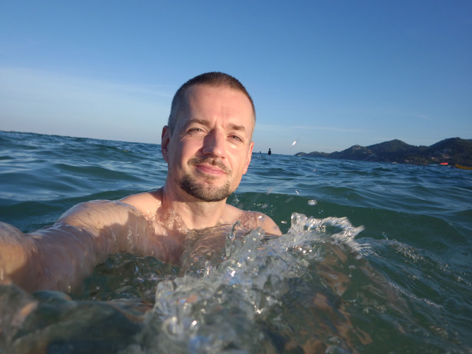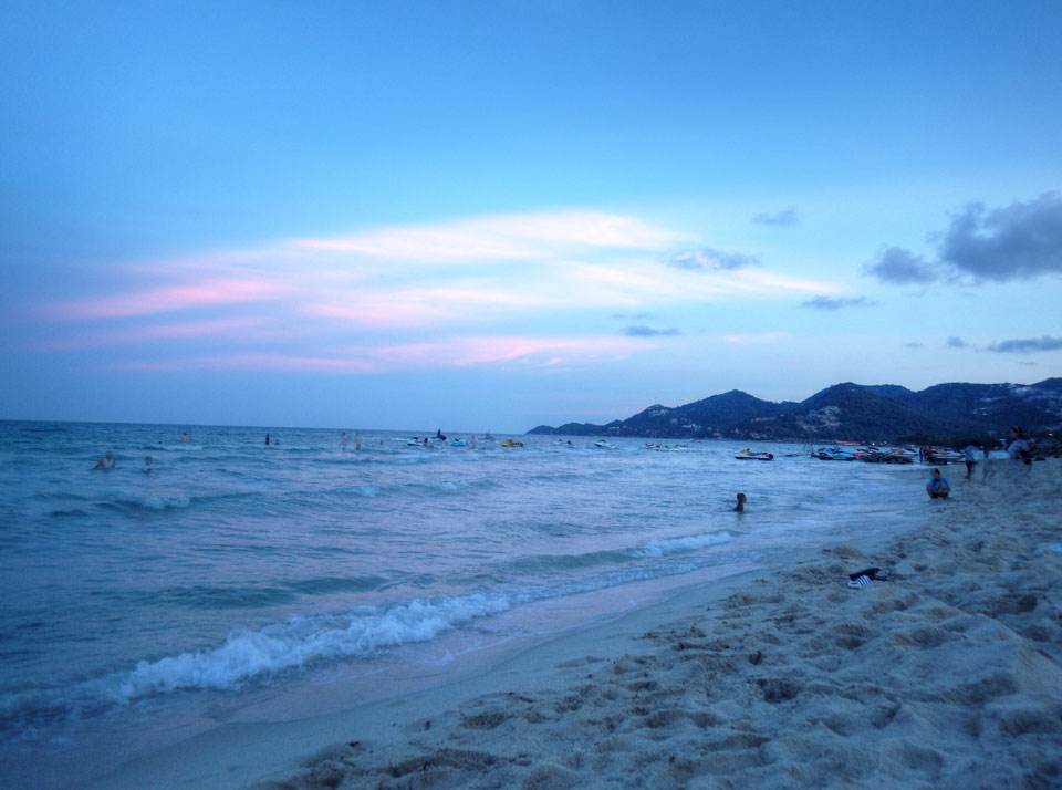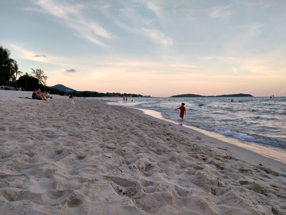 Das Wetter auf Koh Samui ist super! Nichts zu sehen von Regenschauern, jedenfalls nicht zu den Zeiten, zu denen ich wach bin. Abends war ich wieder am Strand, ging baden, ließ aber das Joggen.