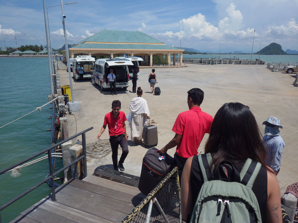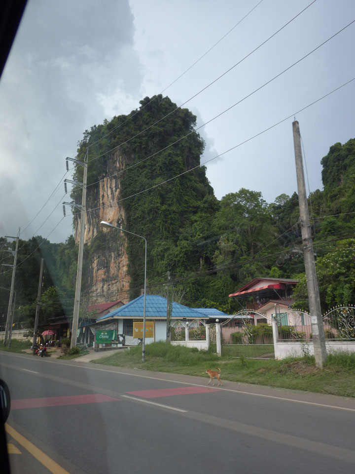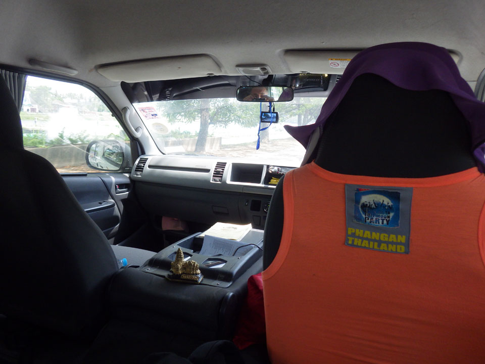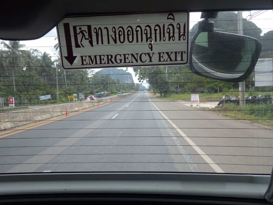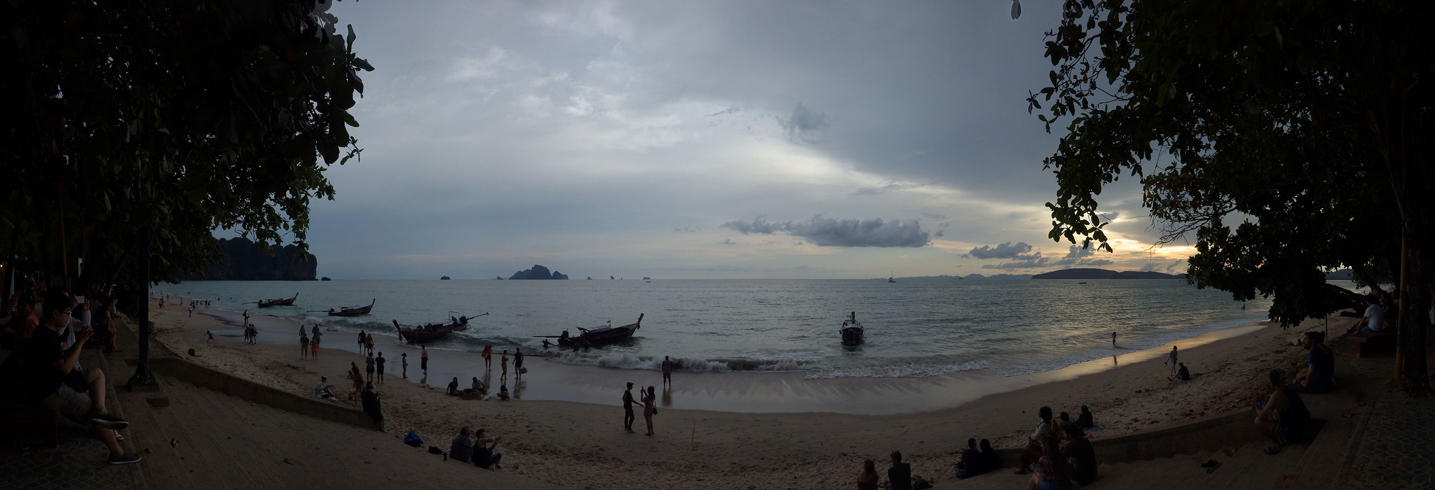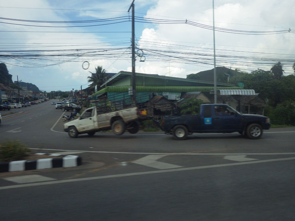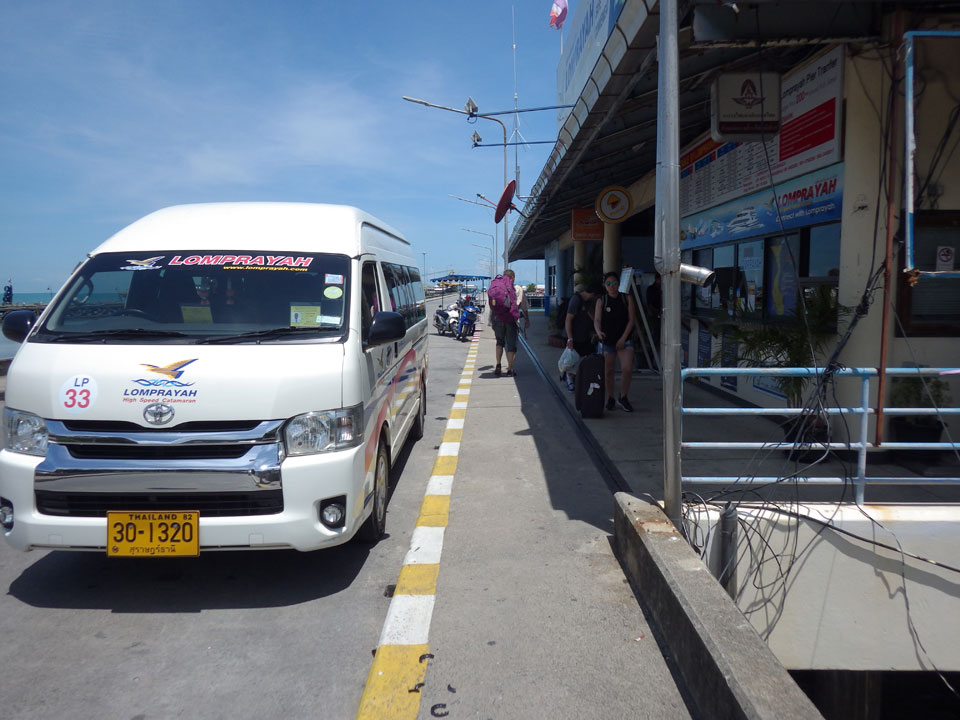 Dort gab’s wieder einen Van, der wartete – dieses Mal mit zwei weiteren Personen. Die Fahrt ging zügig weiter südlich durch Krabi nach Ao Nang. Irre war die Federung. Der Minibus schaukelte sich ständig bei Bodenwellen auf, dass schlafen unmöglich wurde.