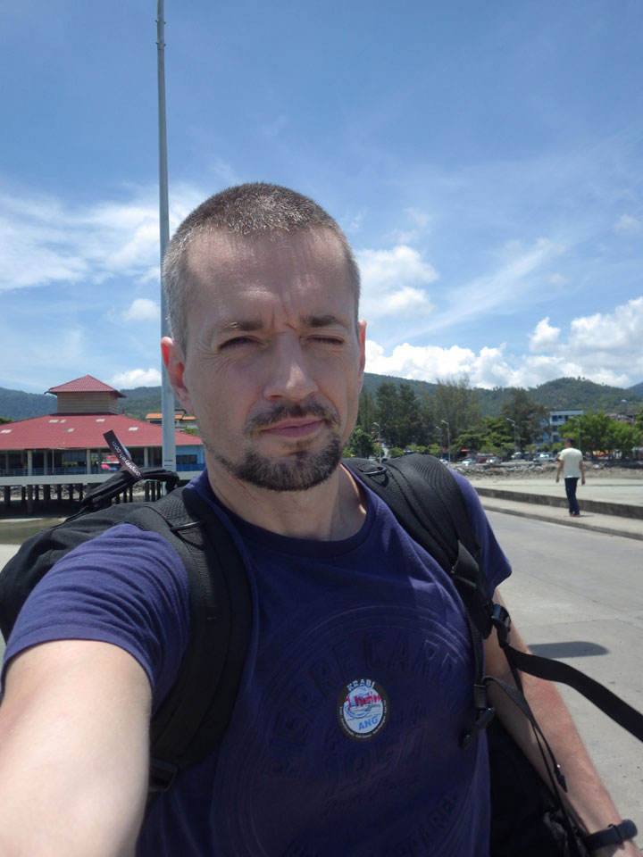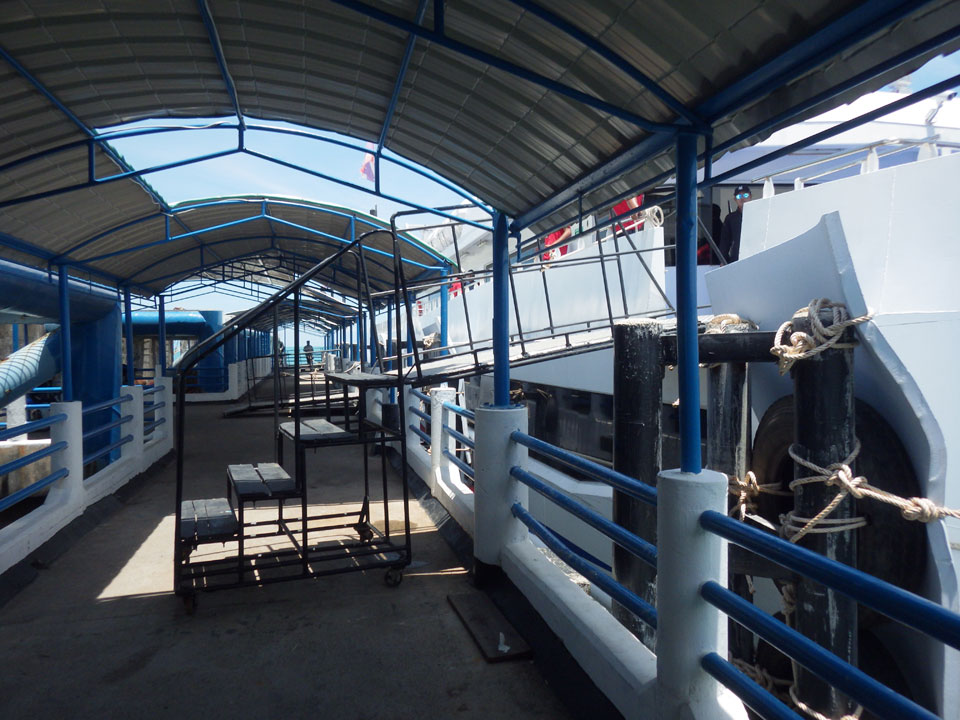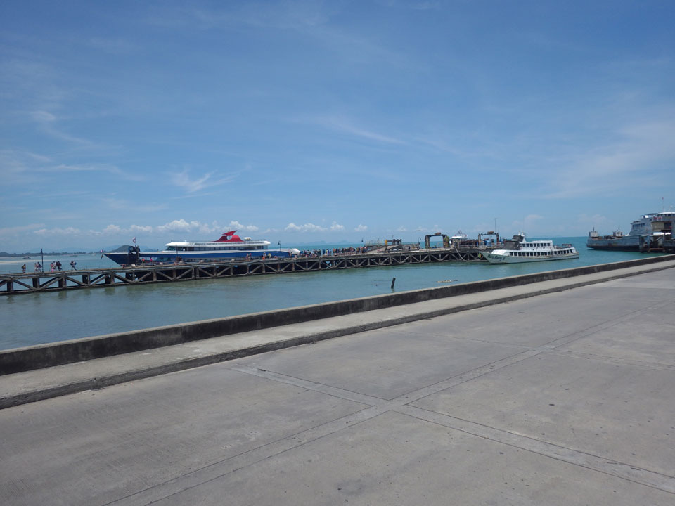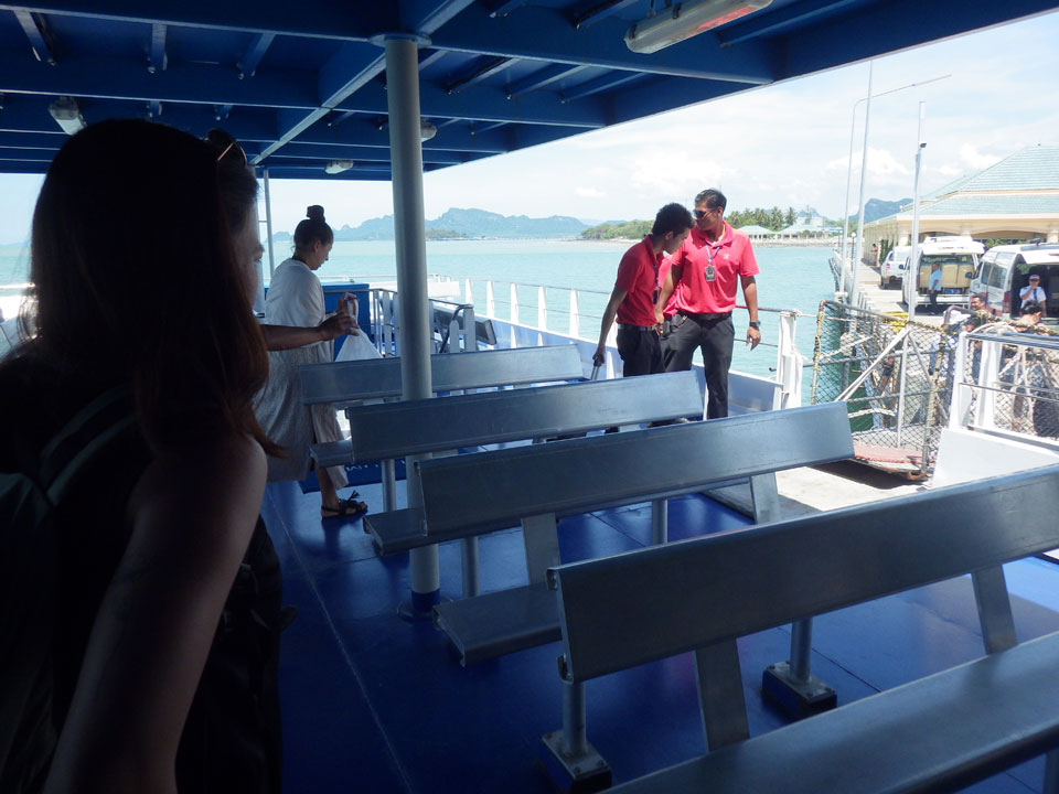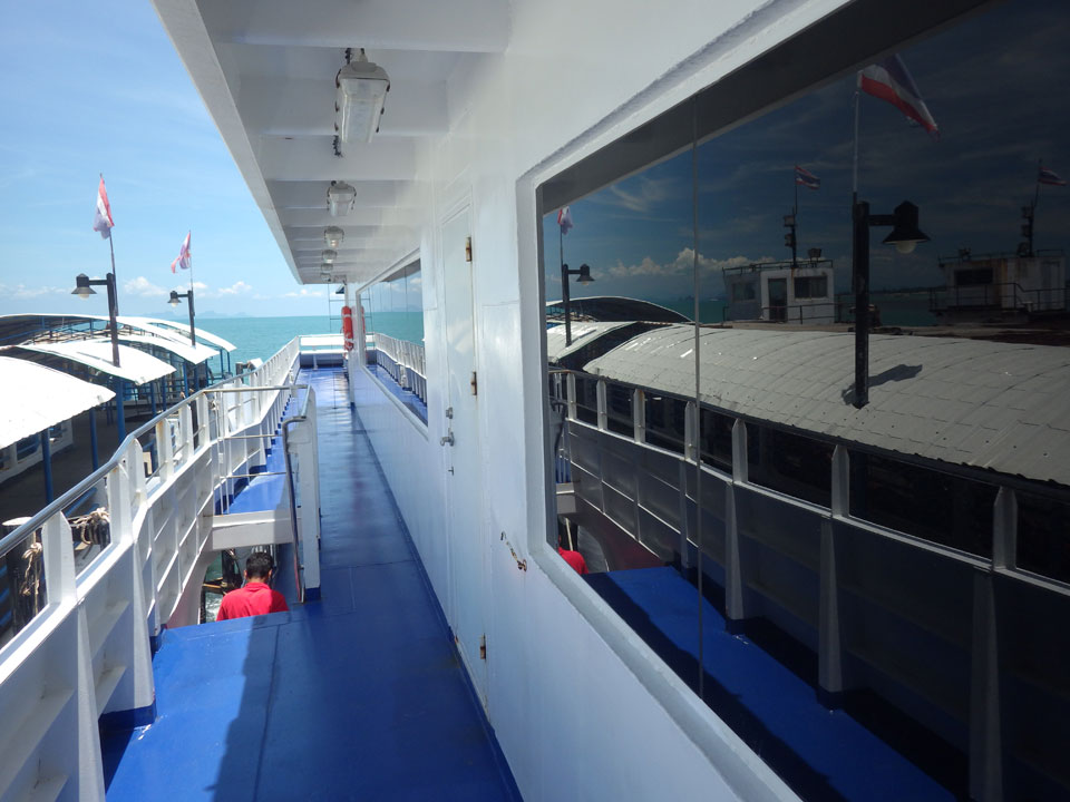 Nach 10:30 wurde ich aufgegabelt. Ein Van fuhr mich und nur eine weiteren Typen zum Fährhafen. Eine gute Strecke. Dort wartete ich ein paar Minuten, um 12:00 dann wurde ich zur Fähre beordert. Niemand sonst neben mir auf dem Weg.