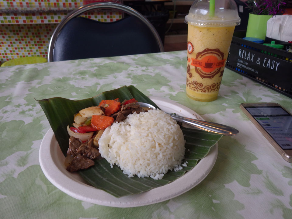Ich aß ein gutes Stir-Fry-Beef mit Reis und Passionfruit-Smoothie. Ich musste mich nach einer 3h-Nacht mal hinlegen, wachte dann zu spät zum Baden auf. Aber OK, hier habe ich etwas Zeit.