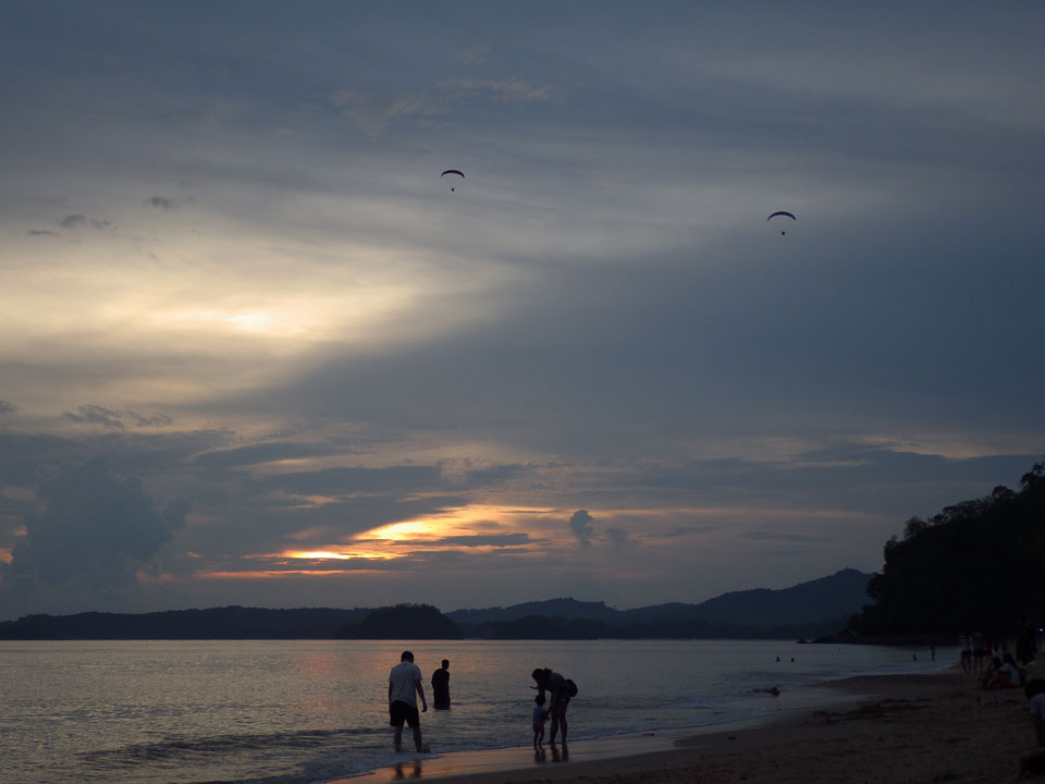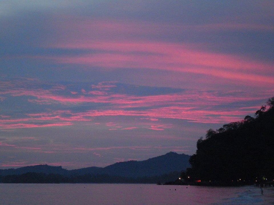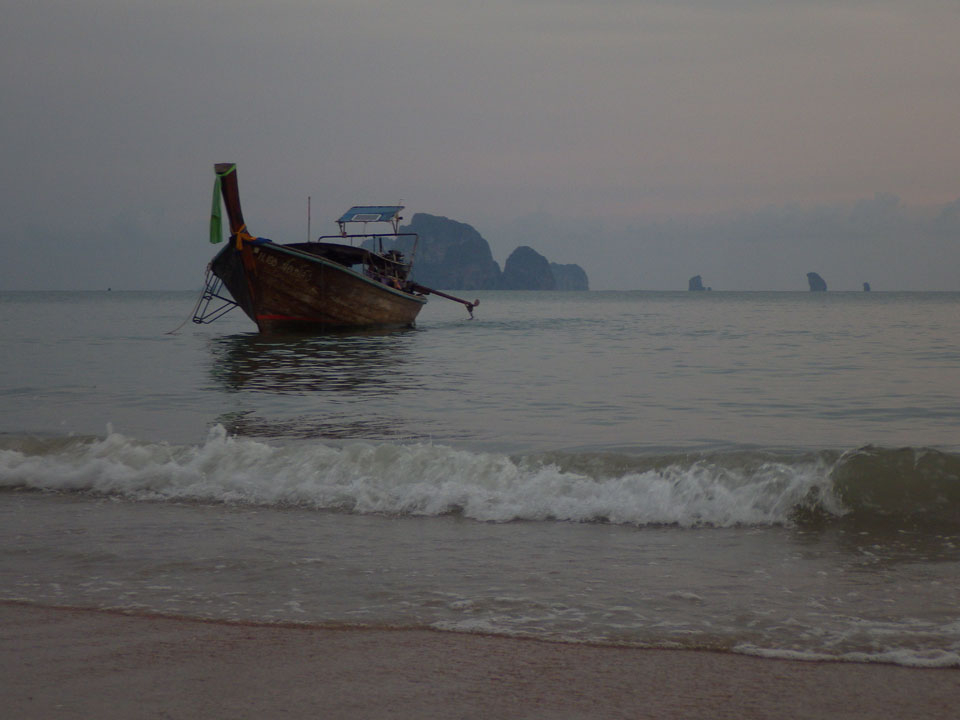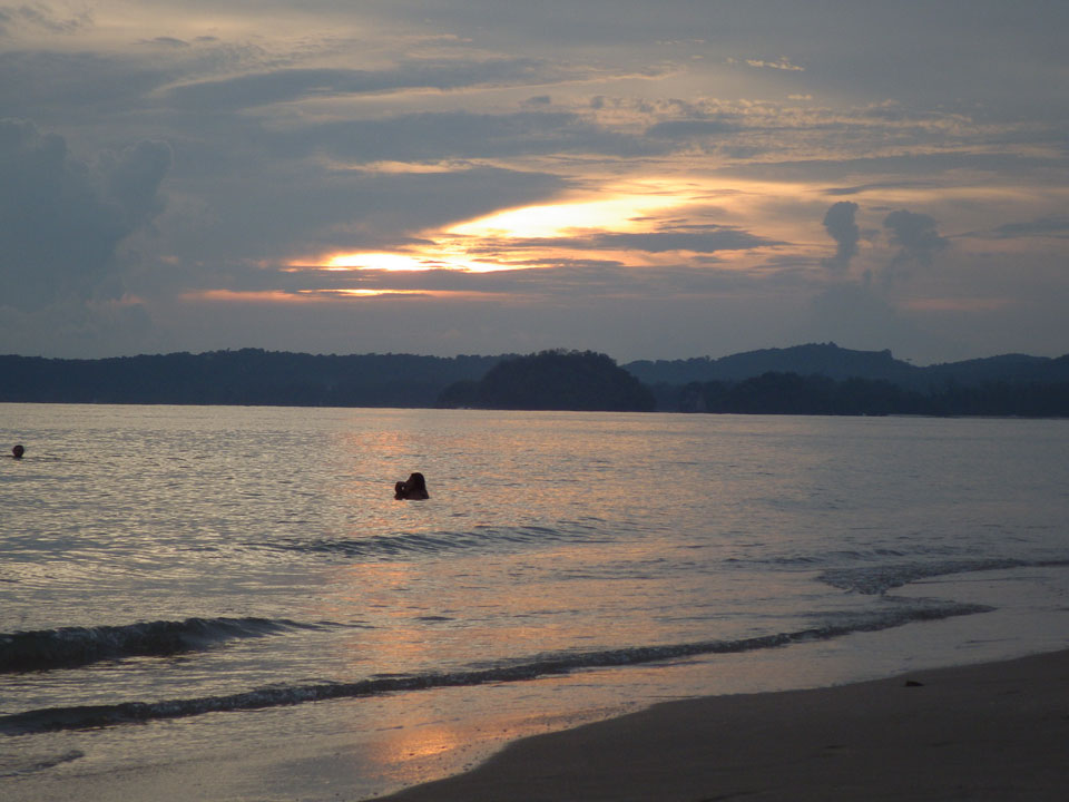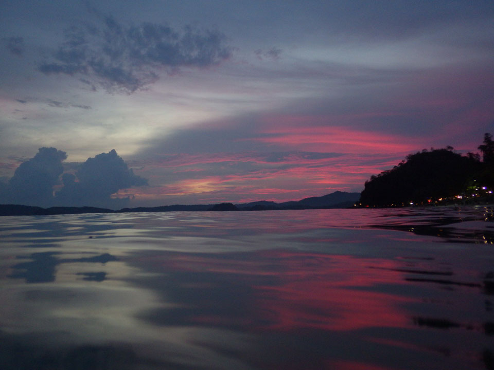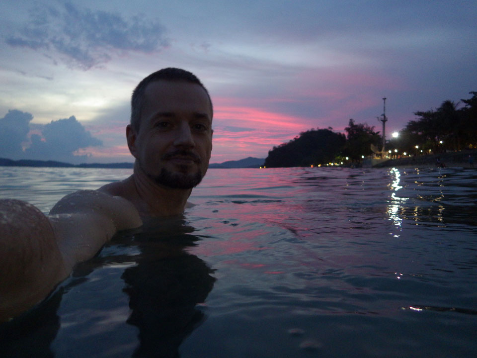 Am Strand war ich entsprechend spät, es ging langsam bei mir bergauf, die Sonne unter. Schöne Wolken und rote-blaue Farbpalette. Krabi hat schon nette Abende. Das Wasser war wie immer – super.