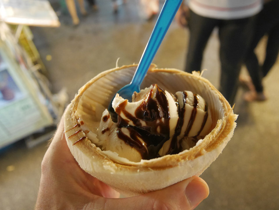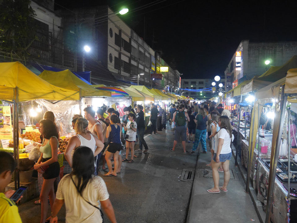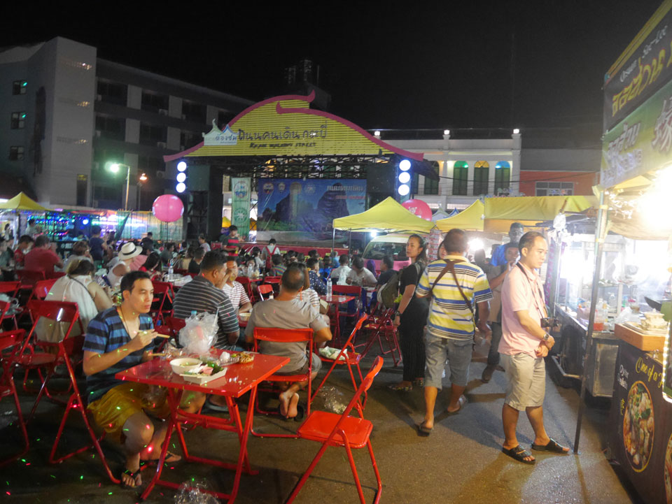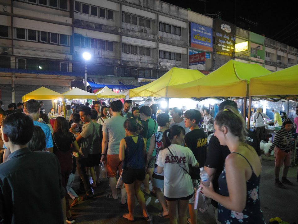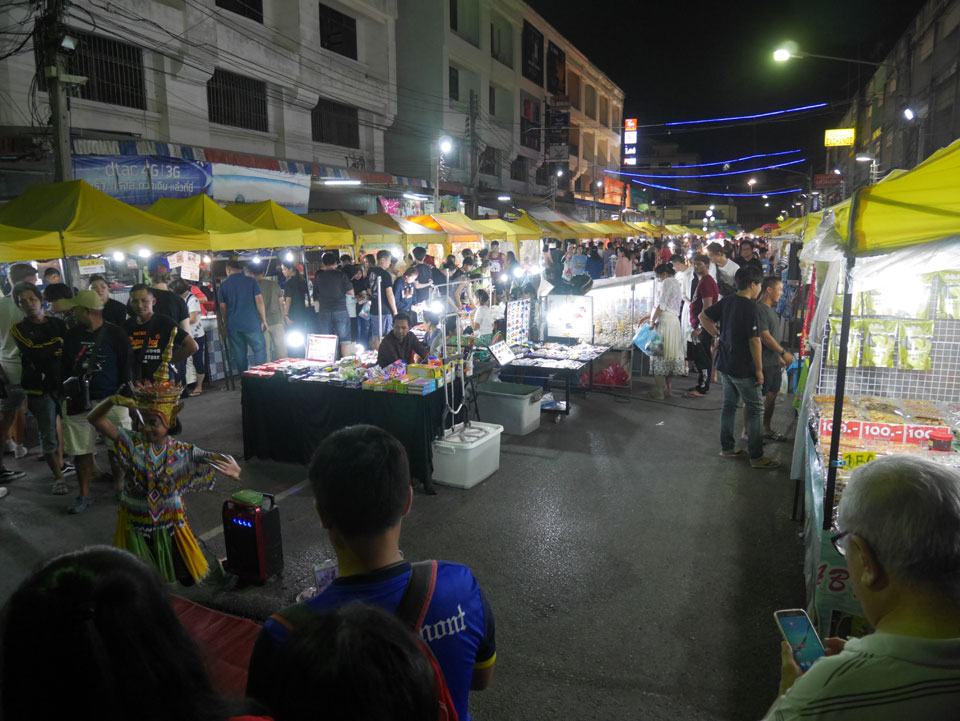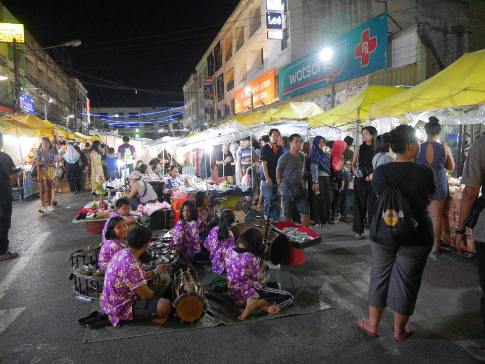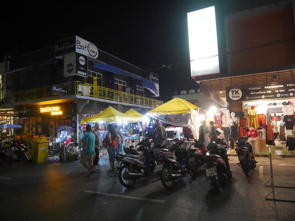 Abends ging ich auf den Nachtmarkt, der doch größer war, als ich erwartet hatte. Auf einer Bühne gab es ein Unterhaltungsprogramm. Ein Feuertwirler legte sich gut ins Zeug. Ich hatte scharfes Essen und Mangosaft.