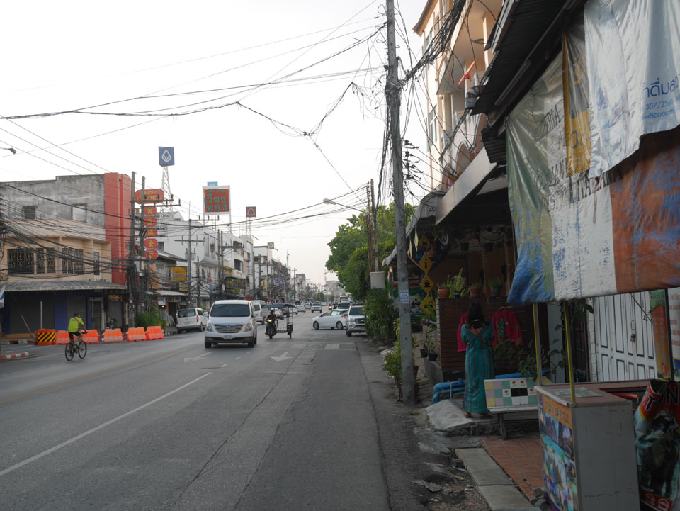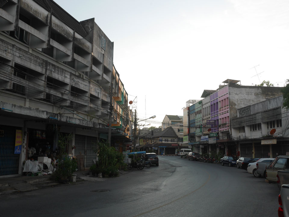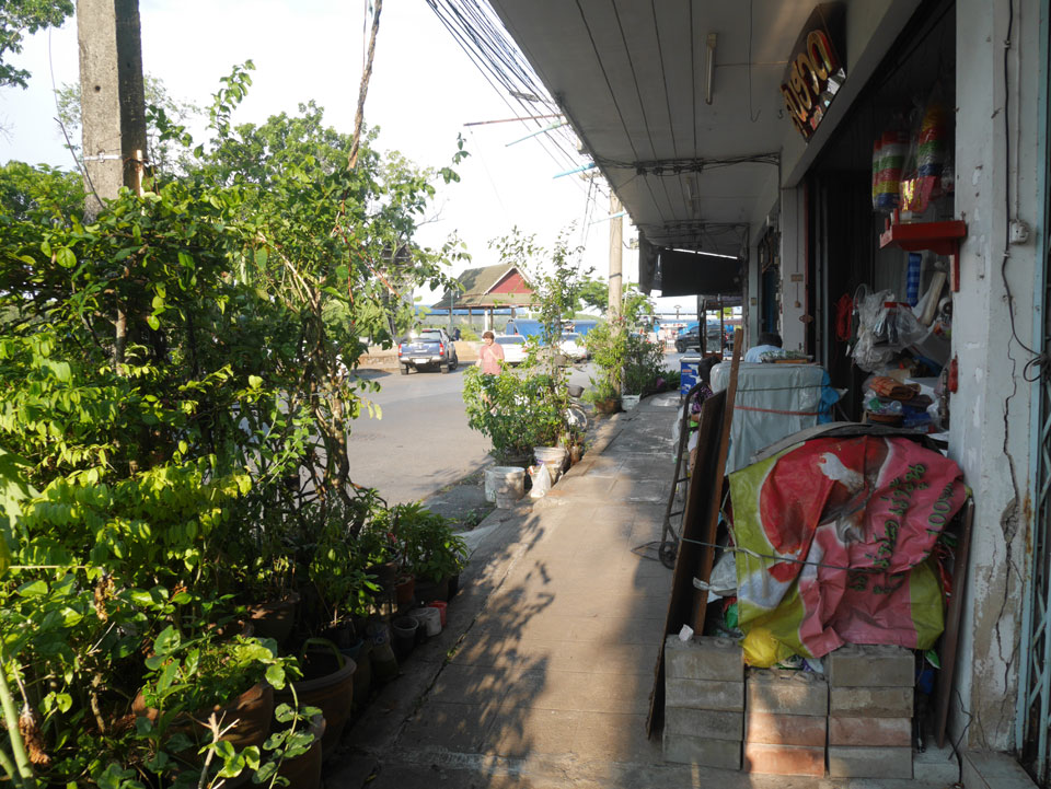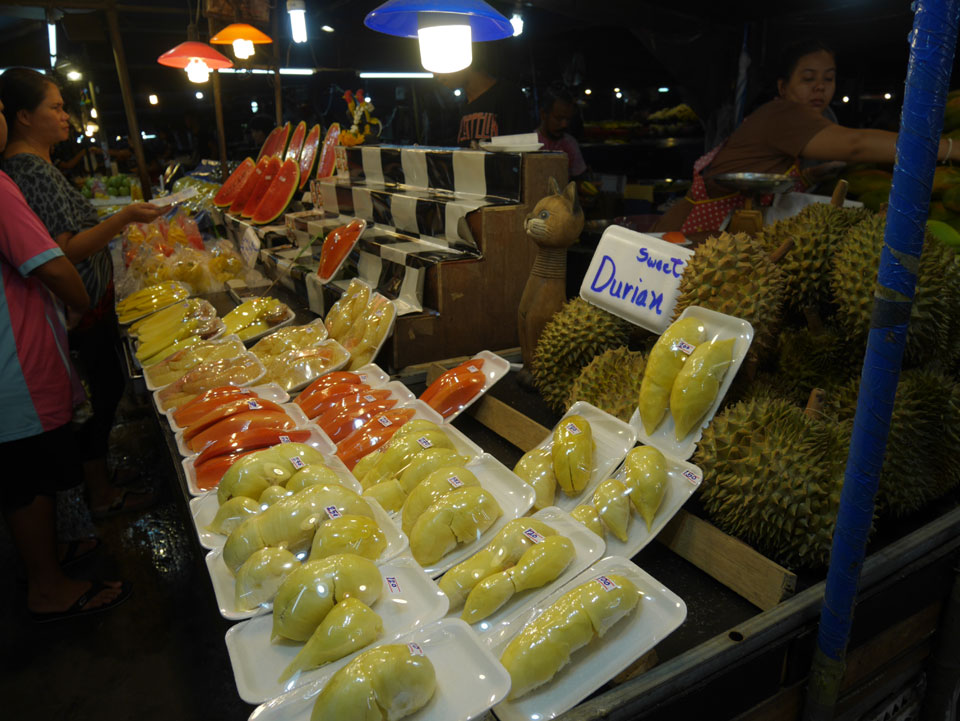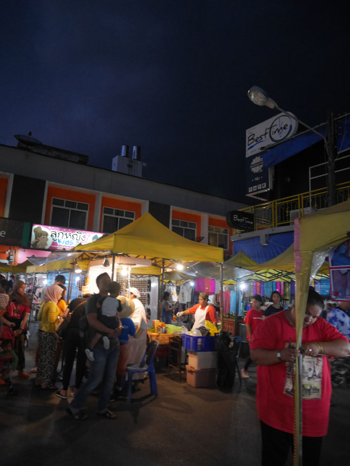 Der Himmel wurde immer dunkler, doch ich wollte noch mal zum Marktplatz gehen um mir ein Abendessen zu beschaffen. Frittierter Schweinenacken (100 THB), dann noch Reis mit noch mehr Schwein. Eine Kokosnuss in der Hand und flugs zurück zum Zimmer, als schon der Regen begann.
