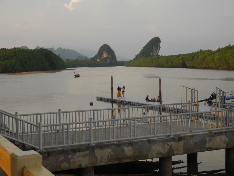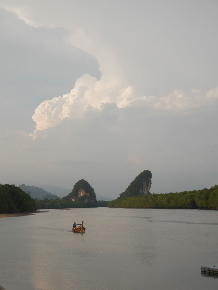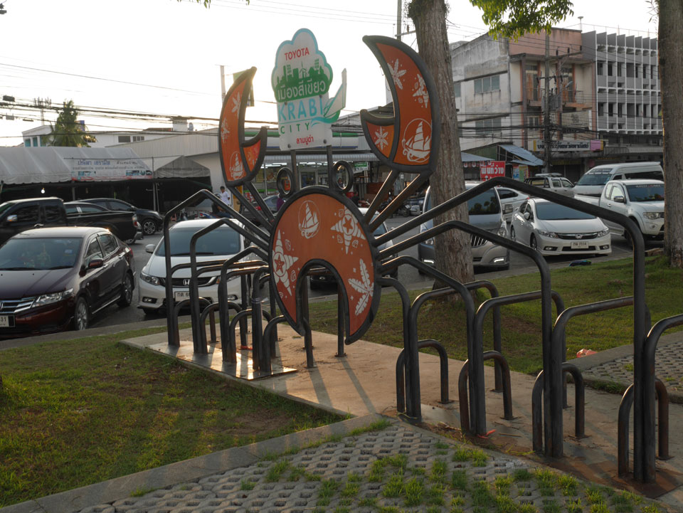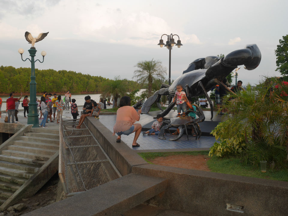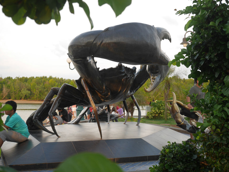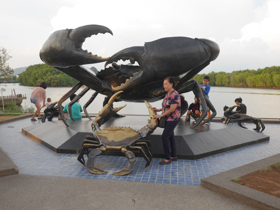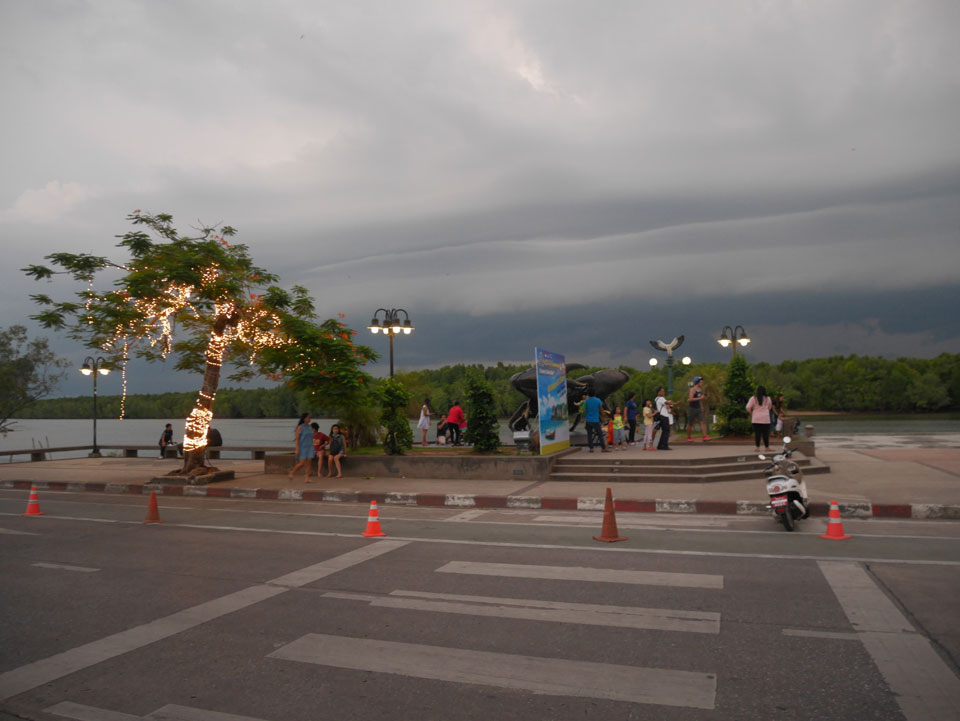 Eines der Wahrzeichen von Krabi Town ist die “Mud Crab”. Dort waren tatsächlich einige Touristen im Selfiemodus. Ich natürlich auch. In der Ferne zogen Regenwolken auf. Kurzes Videotelefonat mit der Heimat.