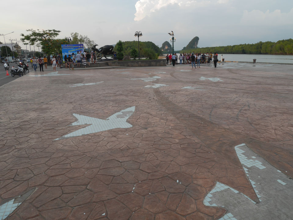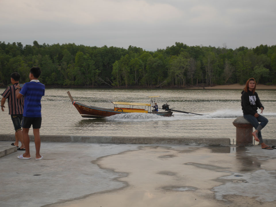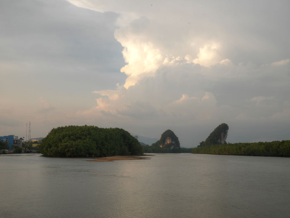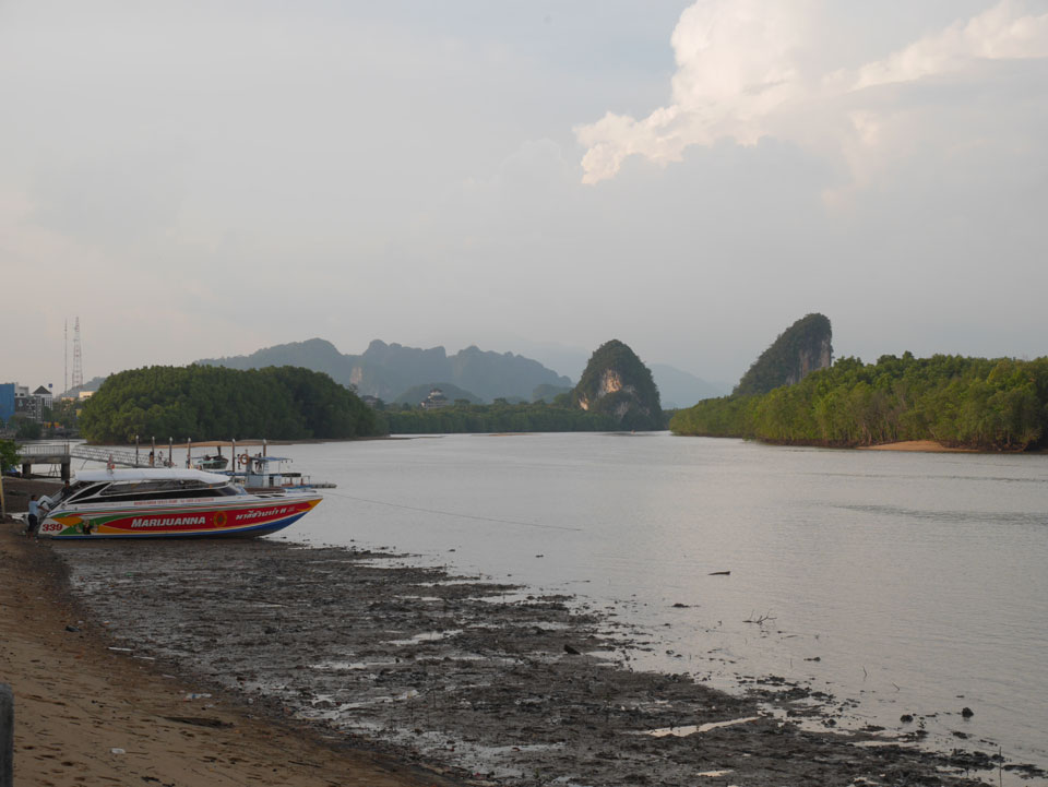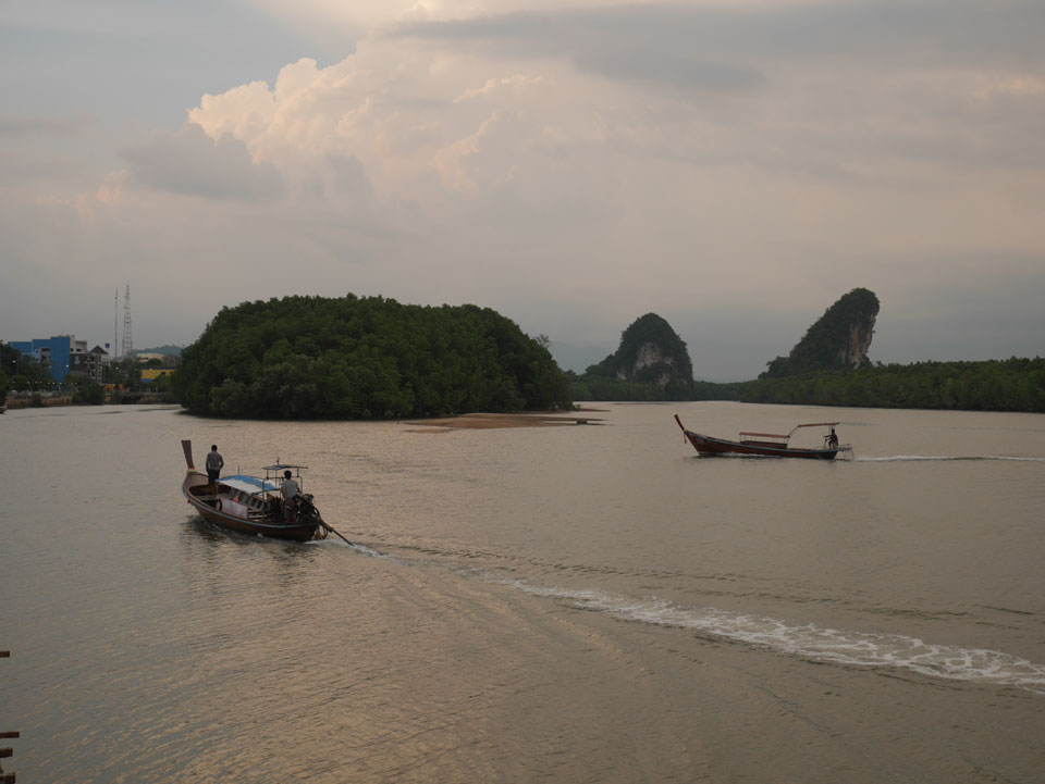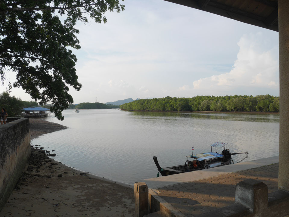 Eines der Wahrzeichen von Krabi Town ist die “Mud Crab”. Dort waren tatsächlich einige Touristen im Selfiemodus. Ich natürlich auch. In der Ferne zogen Regenwolken auf. Kurzes Videotelefonat mit der Heimat.