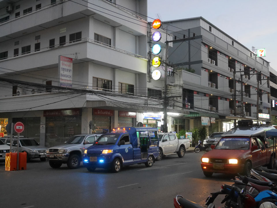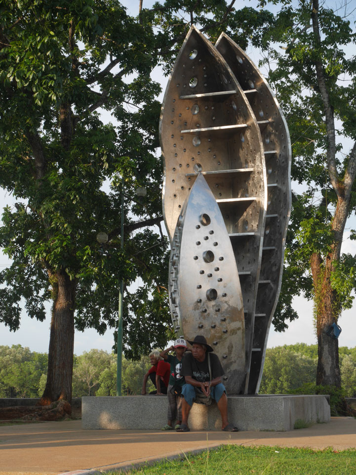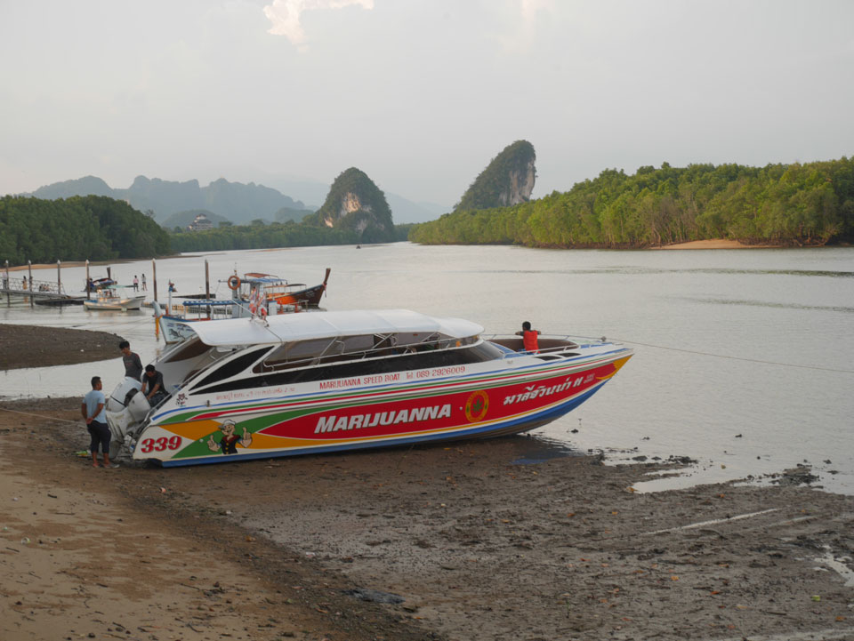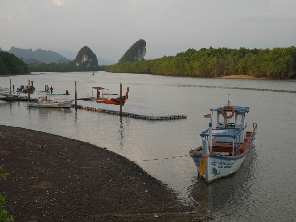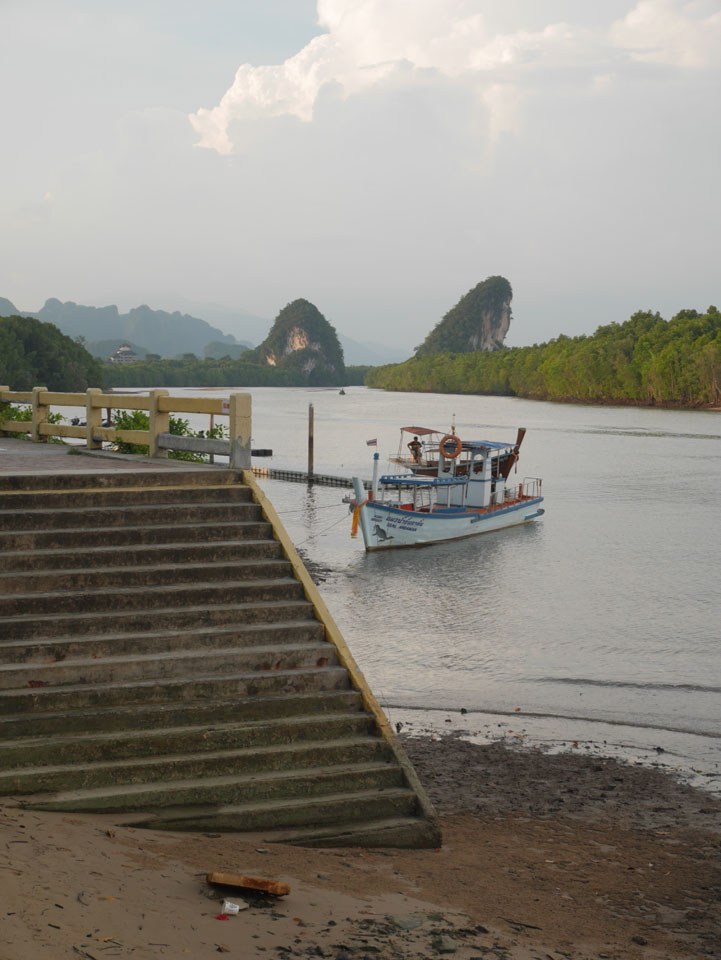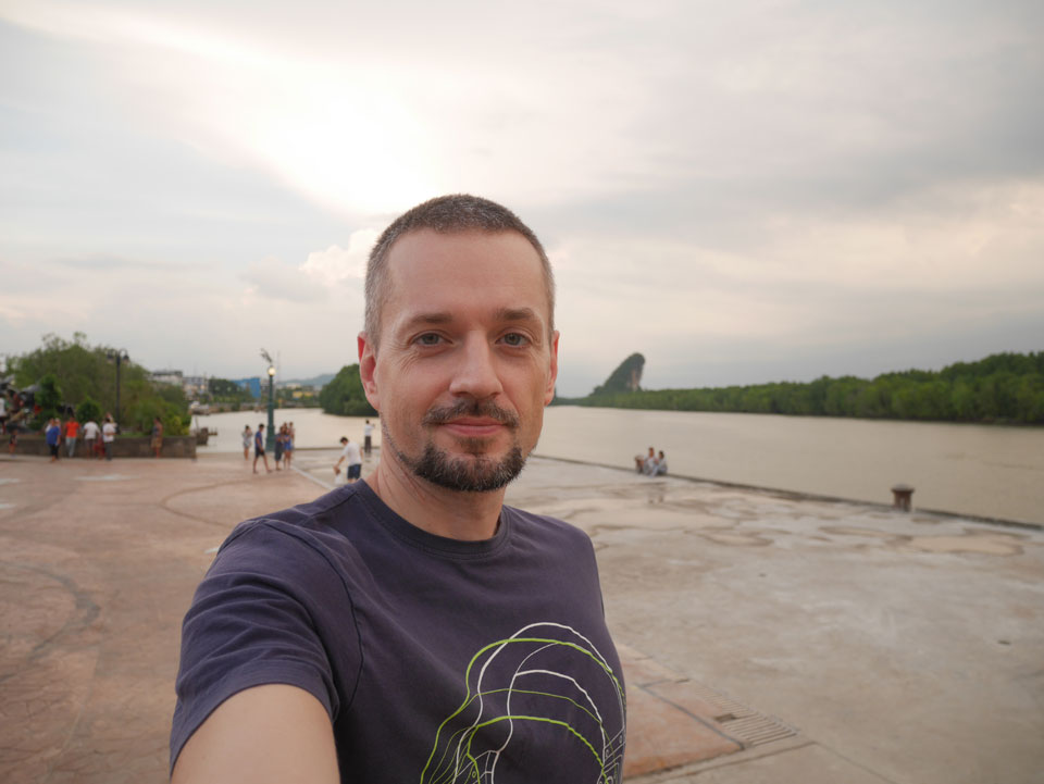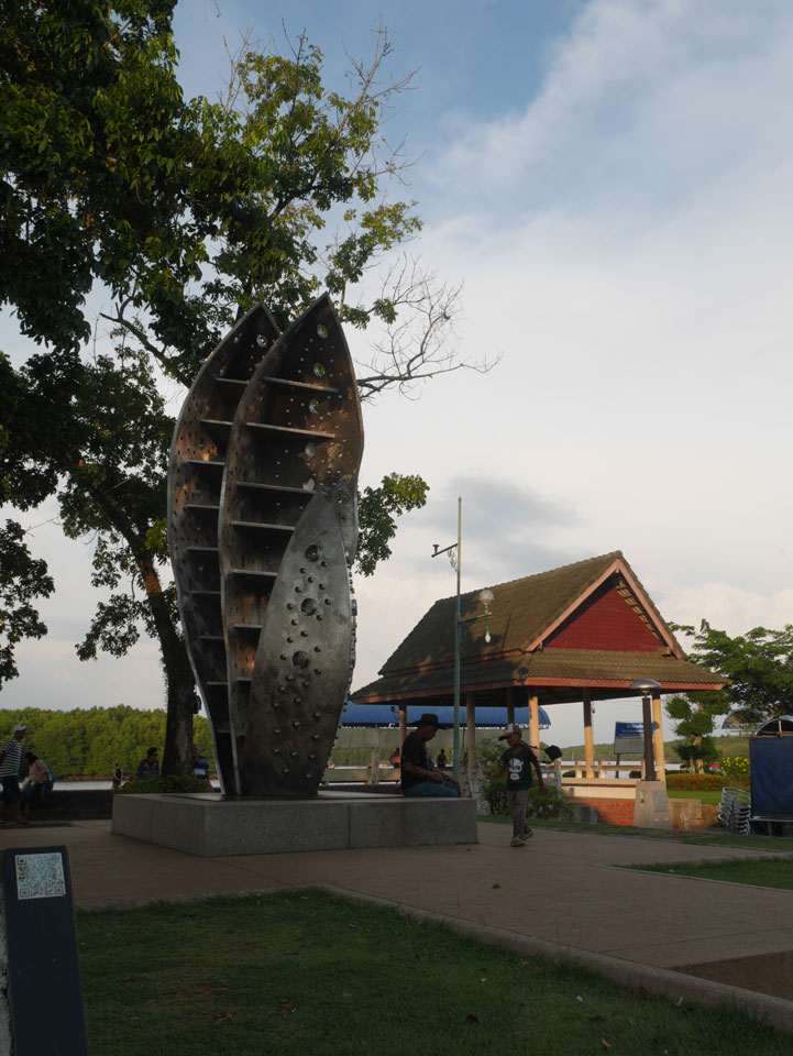 Eines der Wahrzeichen von Krabi Town ist die “Mud Crab”. Dort waren tatsächlich einige Touristen im Selfiemodus. Ich natürlich auch. In der Ferne zogen Regenwolken auf. Kurzes Videotelefonat mit der Heimat.
