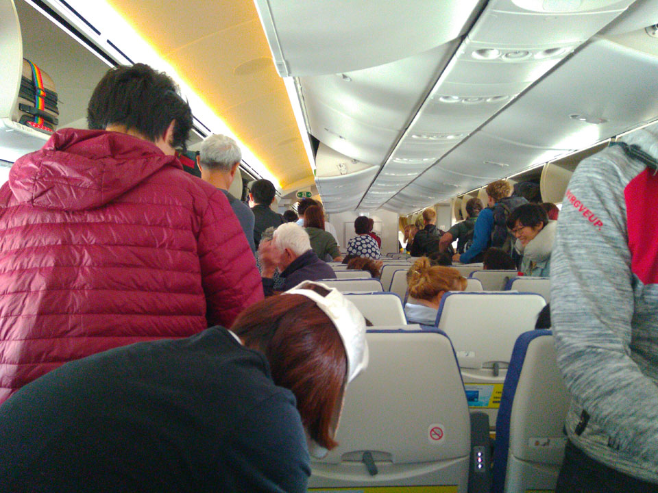 Um diese Uhrzeit – nach 1 Uhr, lagen die Leute auch schlafend herum. Ich fand einen Platz, guckte reddit und chattete. Dann ging’s kurz vor 2 los, Sicherheitskontrolle, wo erneut meine zwei Taschen nicht beanstandet wurden.