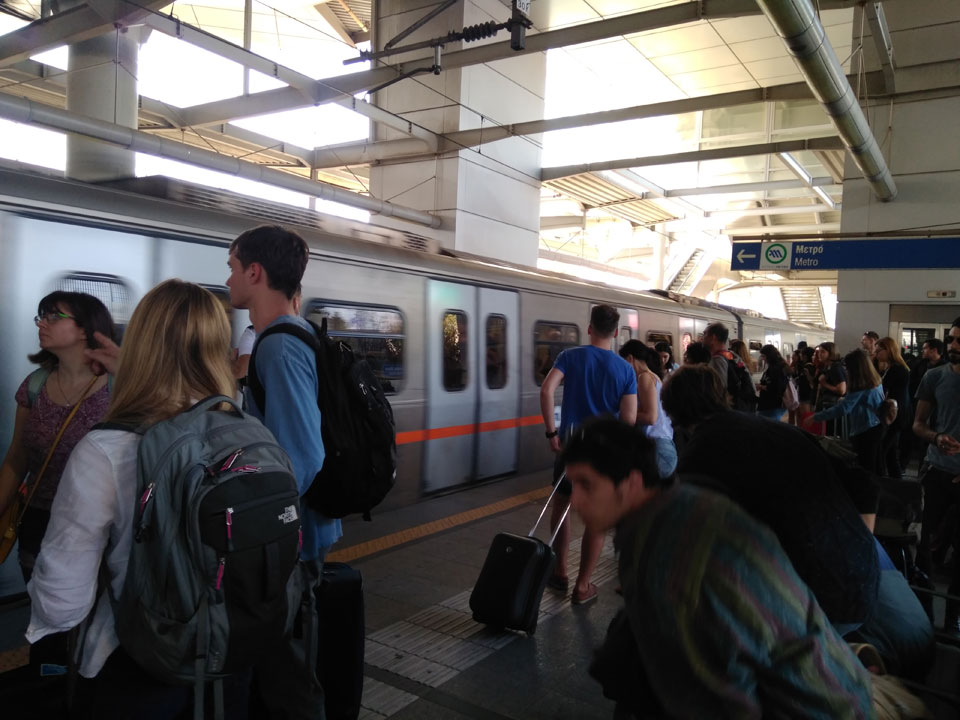 Wir kamen 5 vor 9 und Plan in Athen an. Die EU-Einreise ging superfix über die Bühne. Keine Schlange und halt nur ein kurzer Blick in den Pass. Da war’s 9:25, doch die nächste Metro in die Stadt um 9:30 ließ ich. Stattdessen holte ich mir einen griechischen Kaffee, den ich dann doch mit Zucker versüßte. Das Ticket nach Athen für €10 ist immer doch ganz schön teuer aber was will man machen.