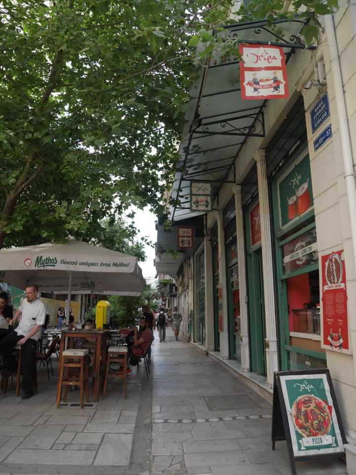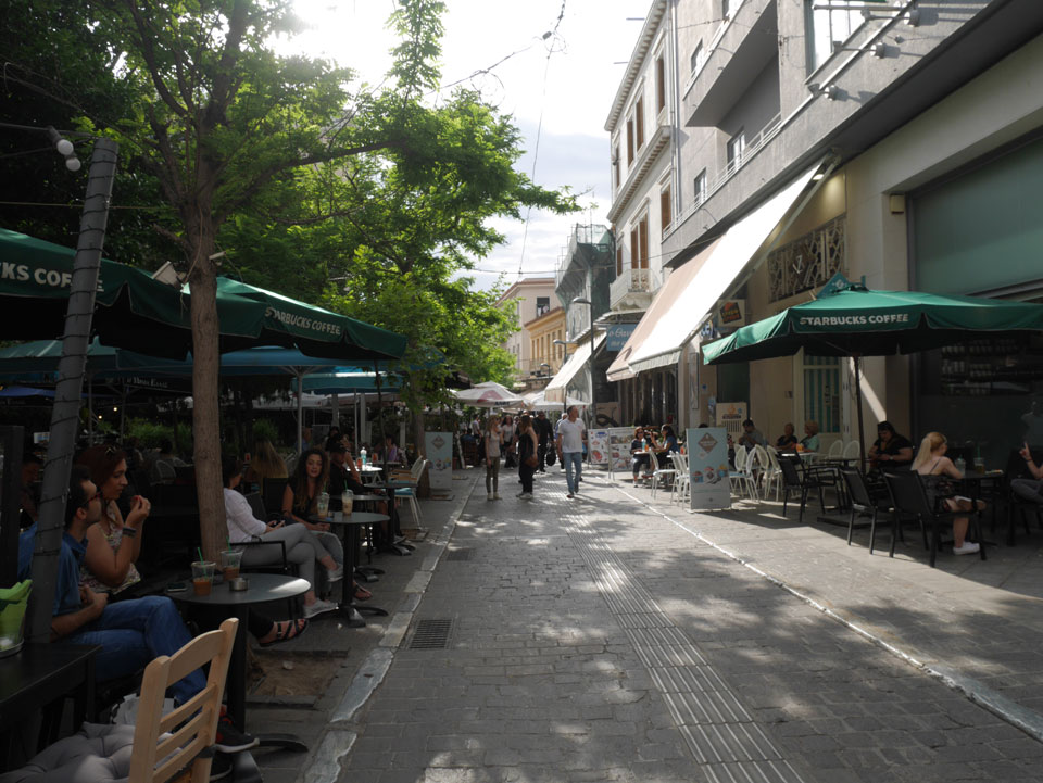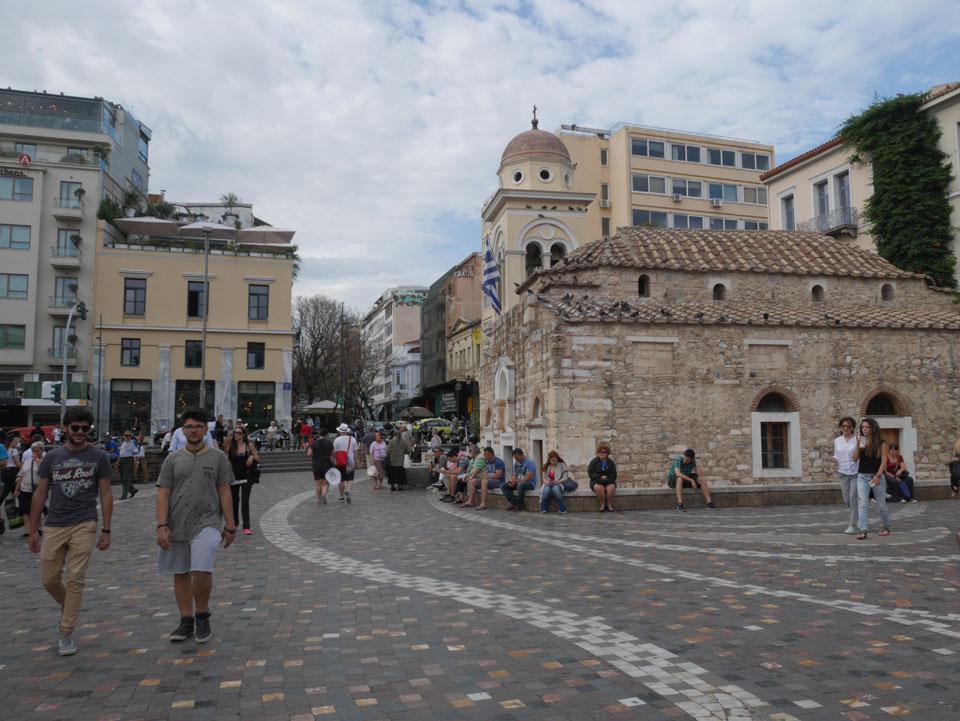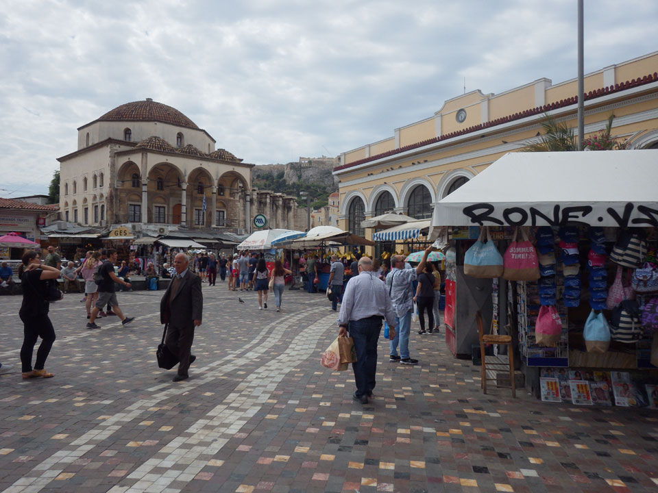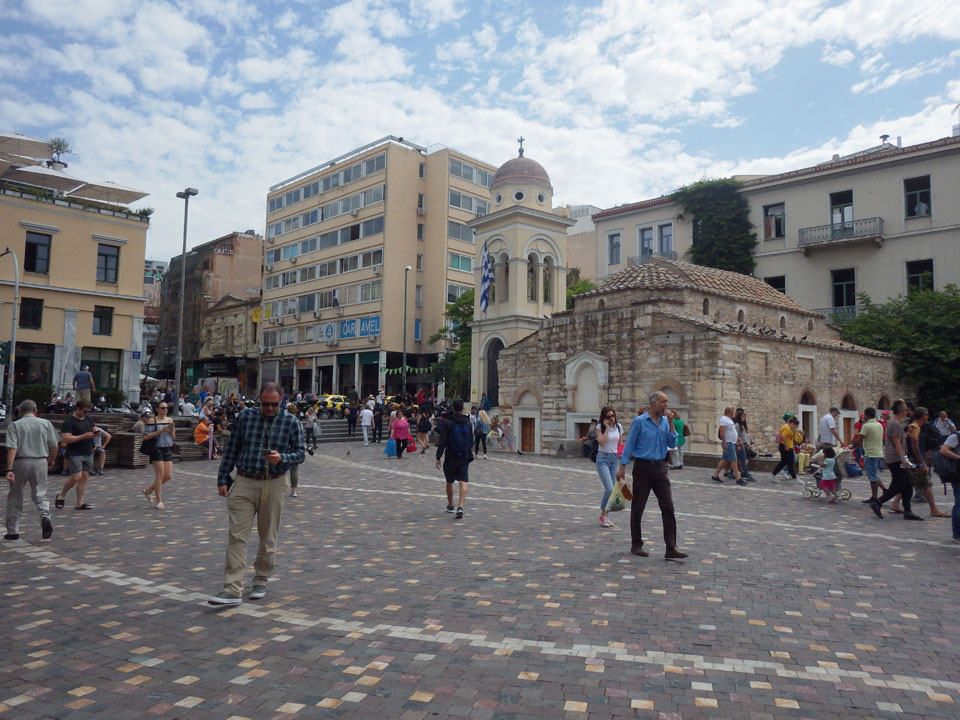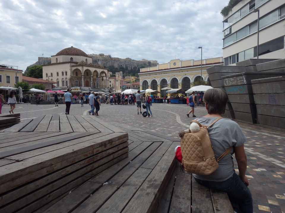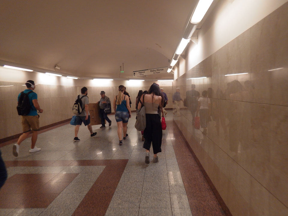 Eine Stunde Fahrt bis zur Monastiraki Station, in der die Metro echt voll wurde. Eine Station vorher stiegen die meisten dann aber aus. Ich holte mir Cappuccino und Sandwich (€6,05), wobei ich einfach so den organischen Cappuccino statt normalem bekam. Naja, Schwamm drüber über die €0,40 extra.