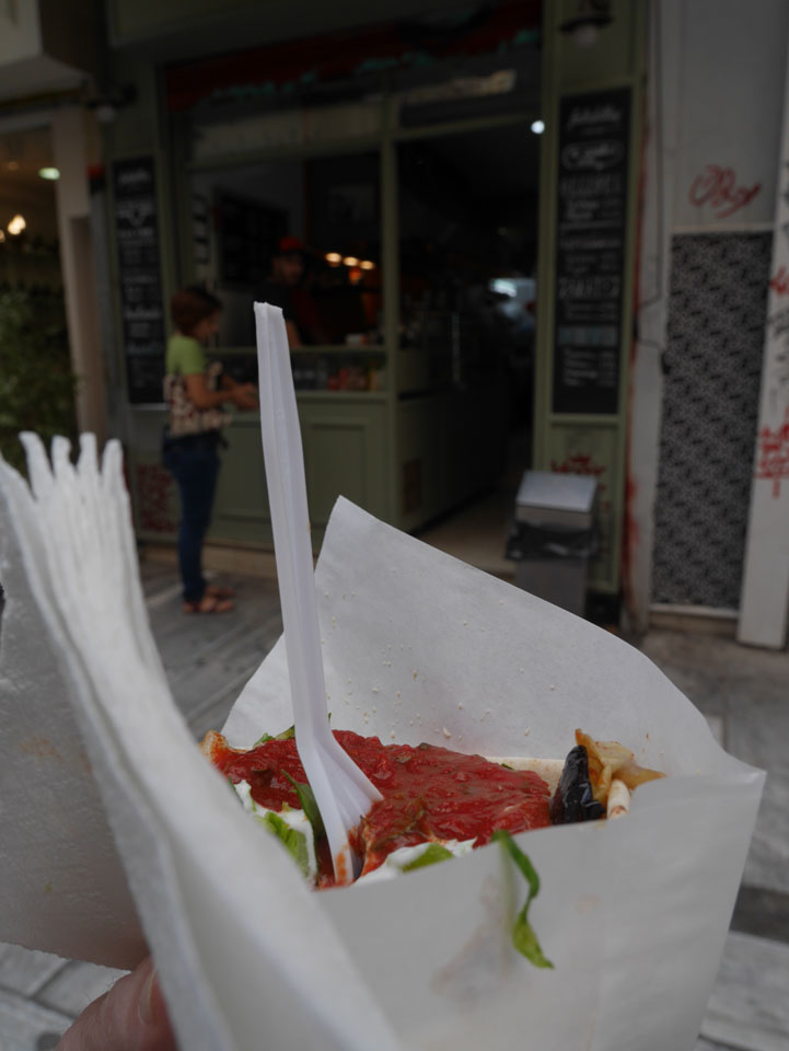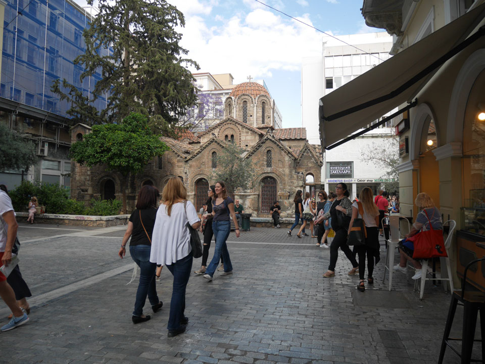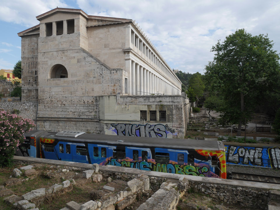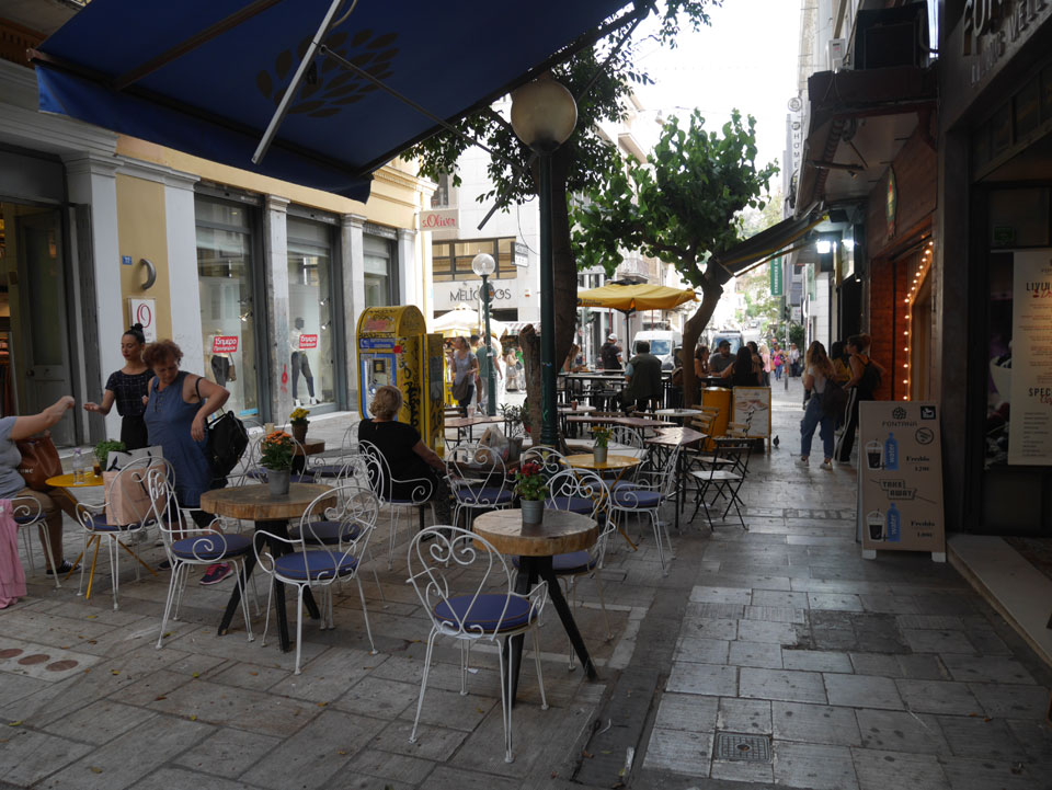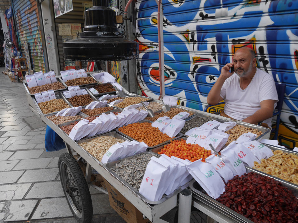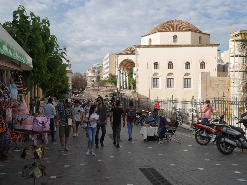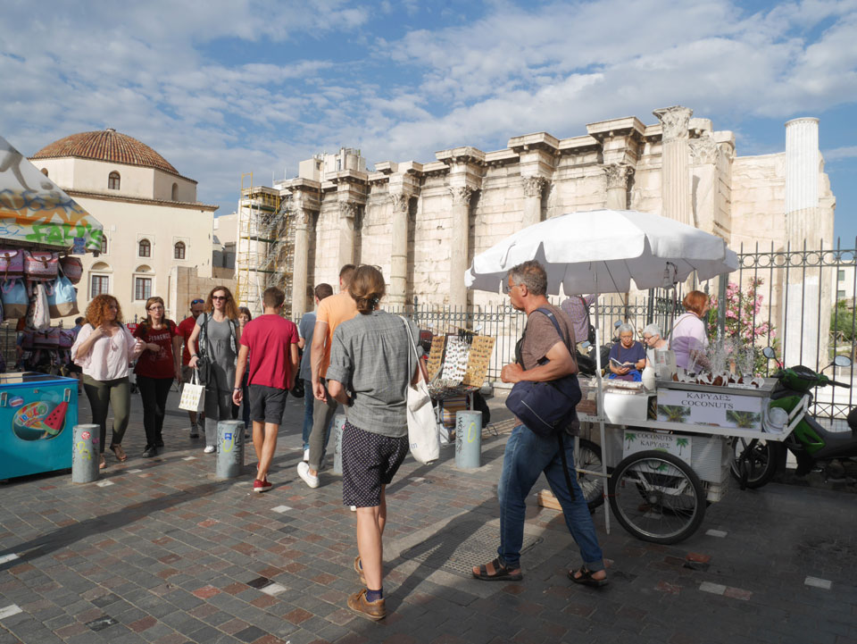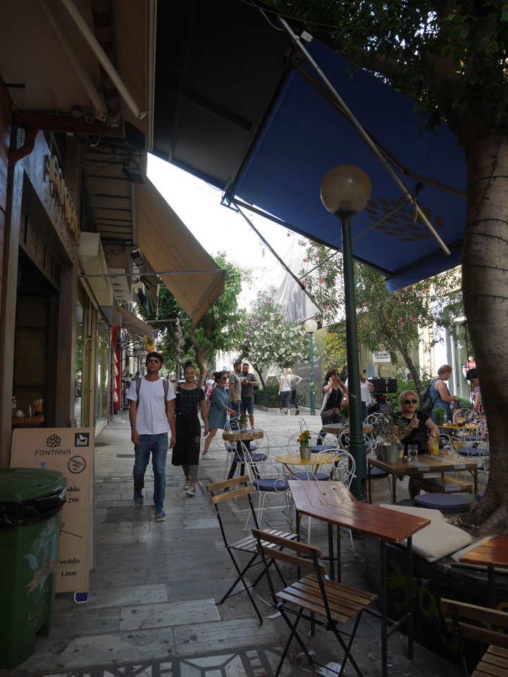 Eine Stunde Fahrt bis zur Monastiraki Station, in der die Metro echt voll wurde. Eine Station vorher stiegen die meisten dann aber aus. Ich holte mir Cappuccino und Sandwich (€6,05), wobei ich einfach so den organischen Cappuccino statt normalem bekam. Naja, Schwamm drüber über die €0,40 extra.